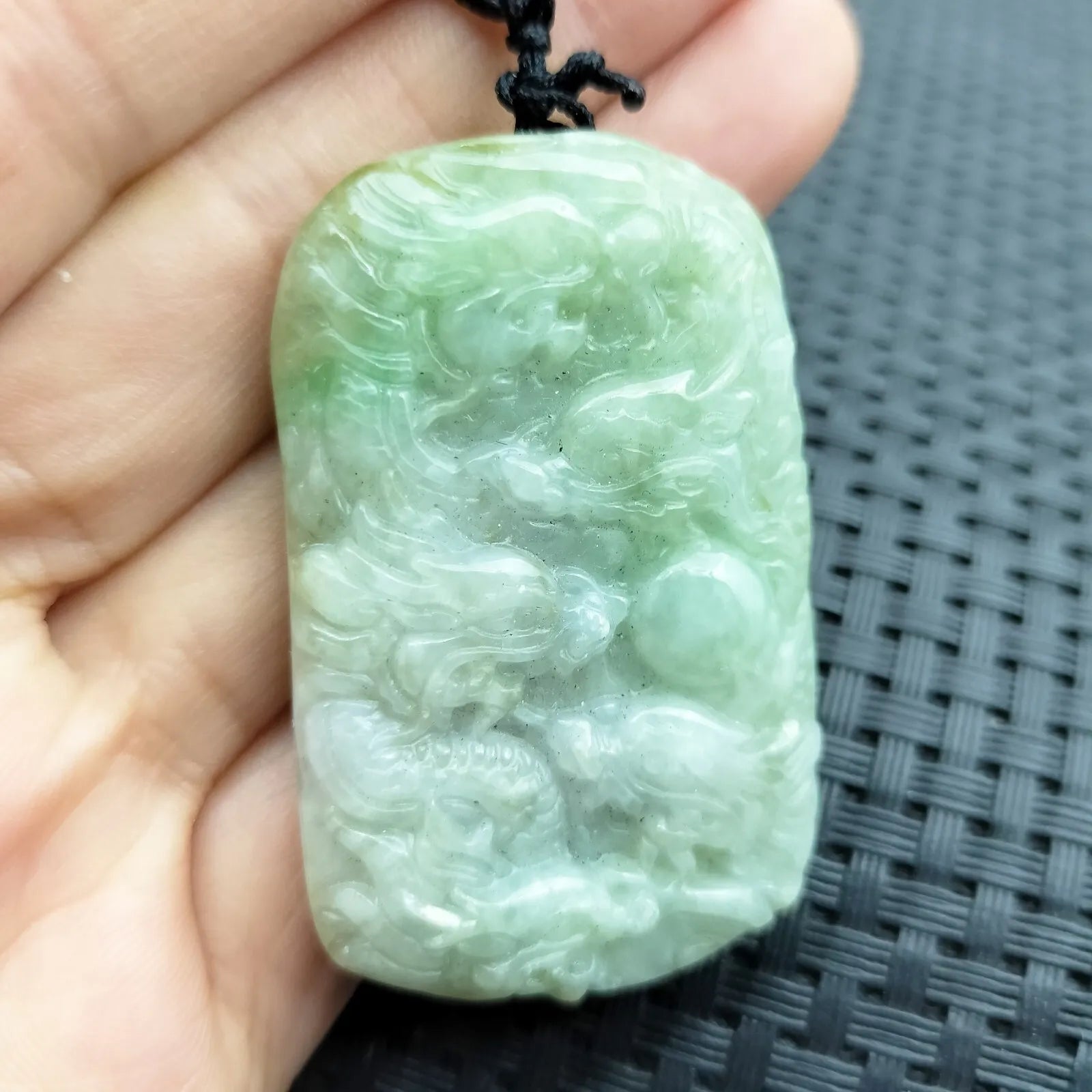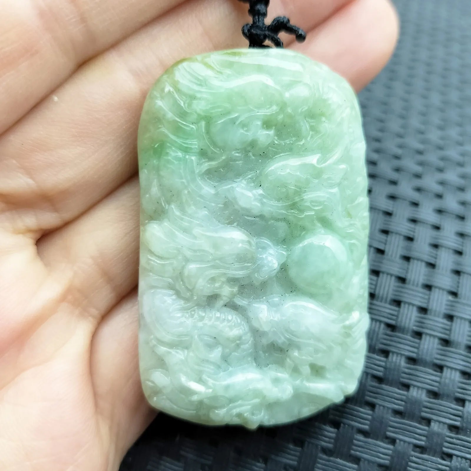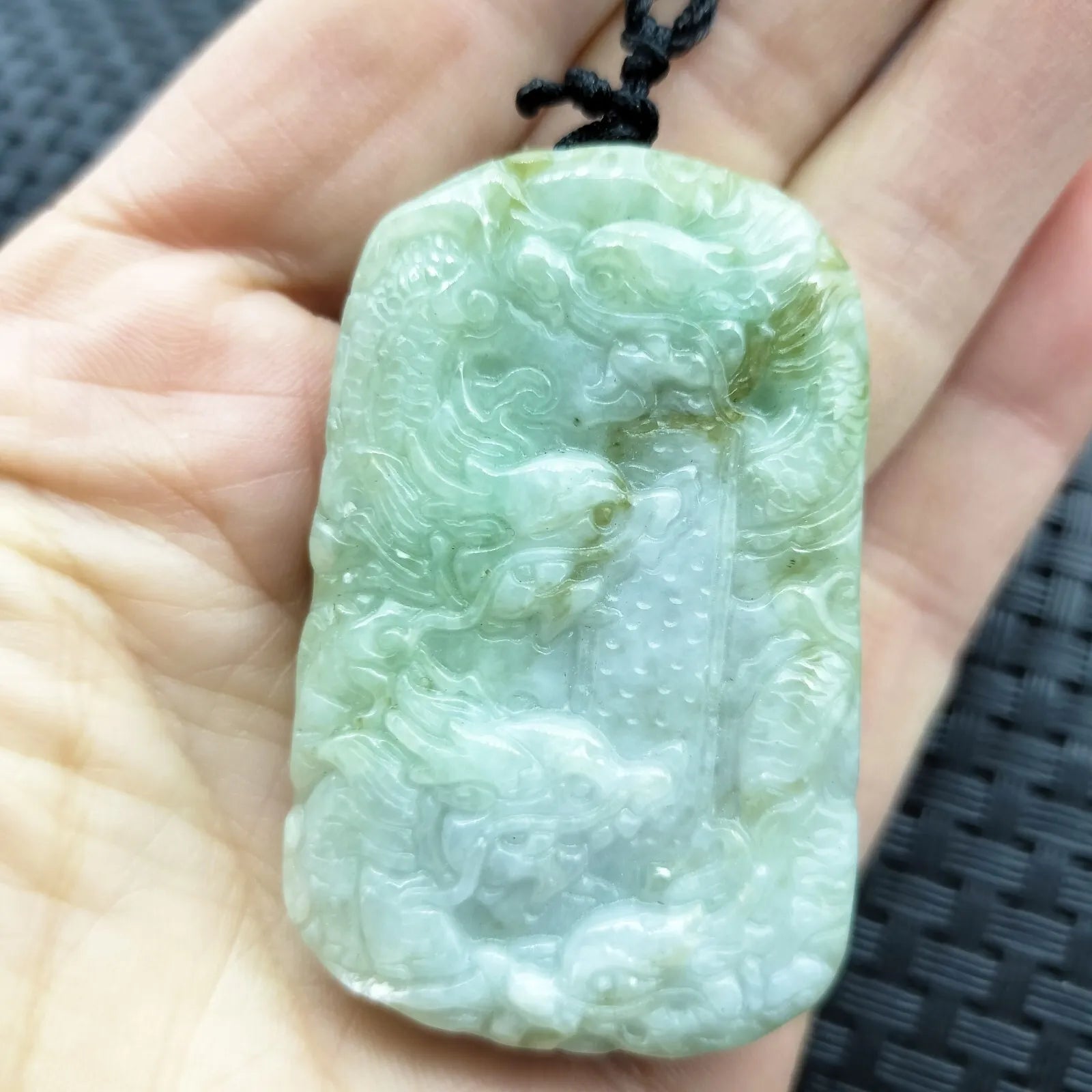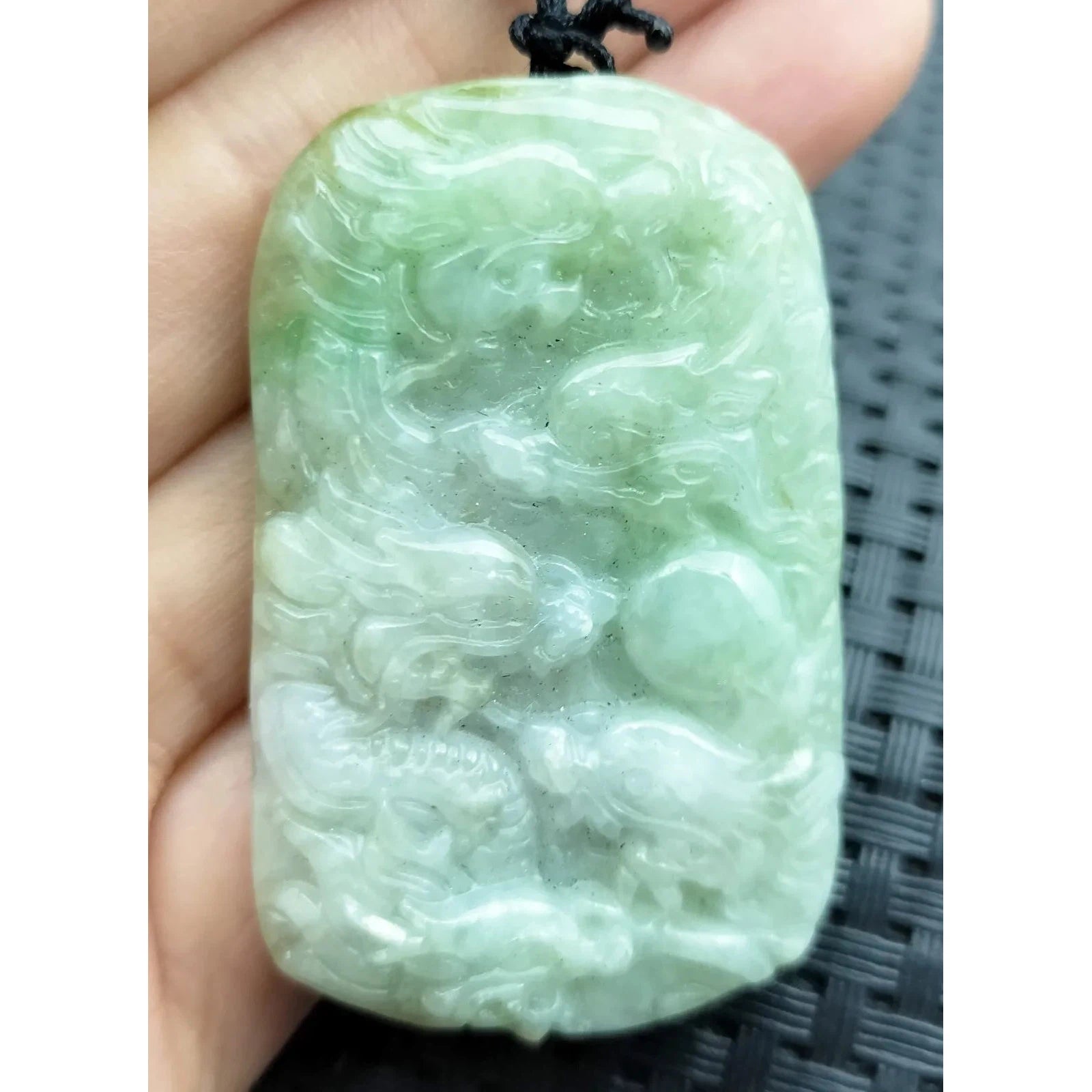 • Certified Light Green Natural Type A Jade Jadeite Carved Nine Dragons Pendant