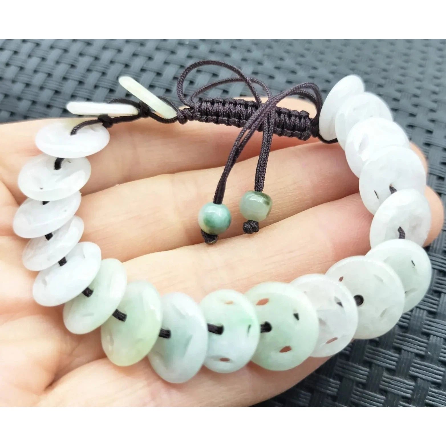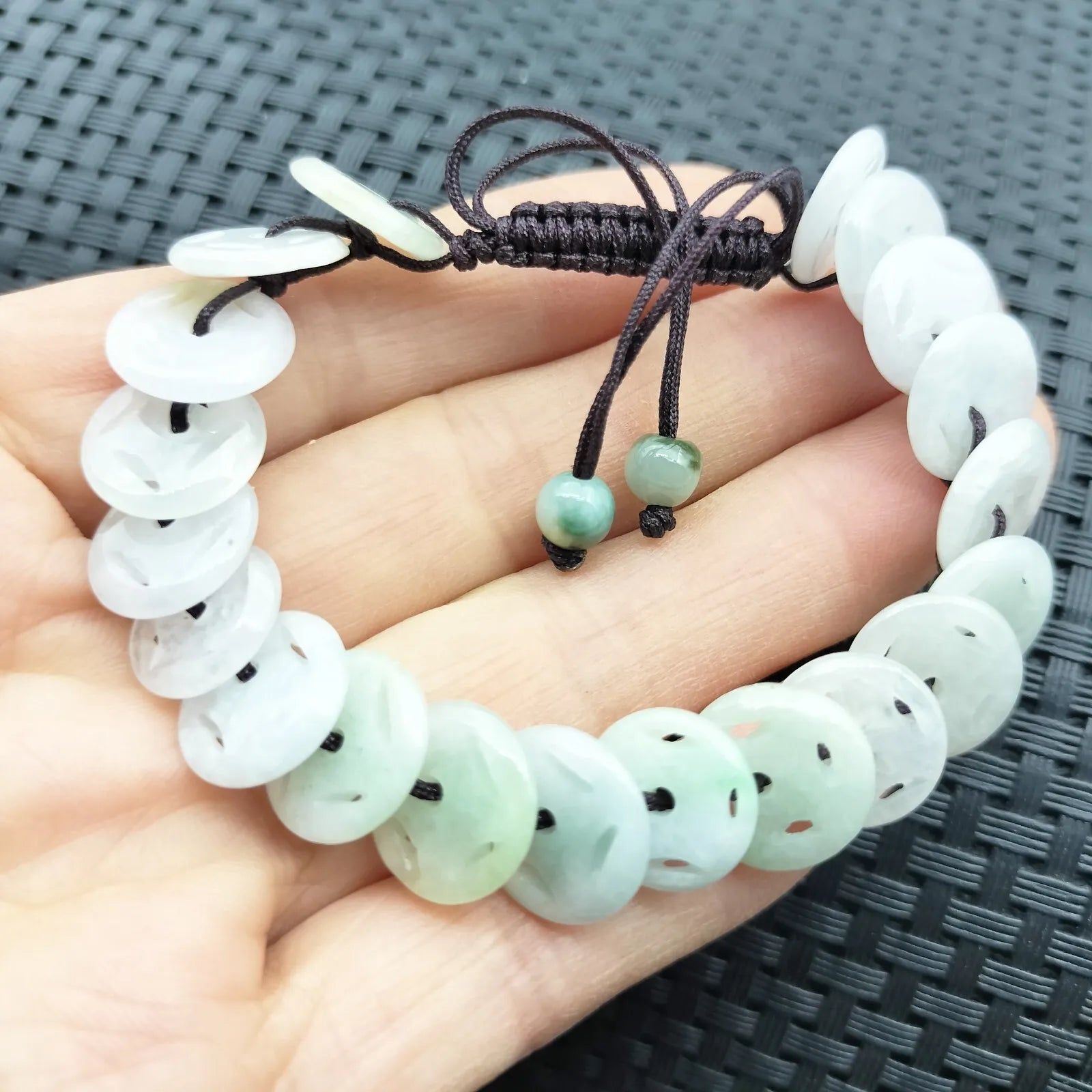 Certified Natural Type A Jade Jadeite Hand-Knitting Circle Coin Beads Bracelet
