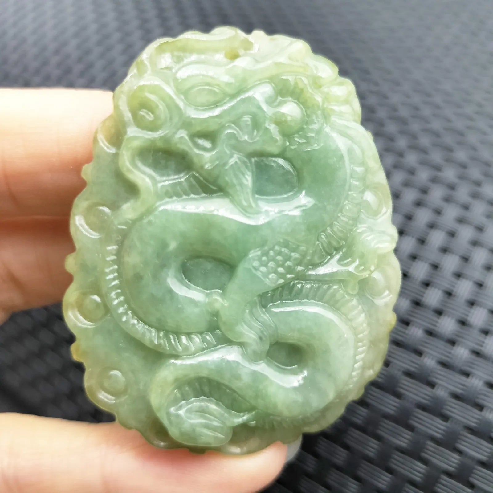Certified Oily Green Natural Type A Jade Jadeite Carved Big Dragon Pendant Necklace