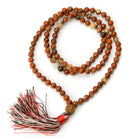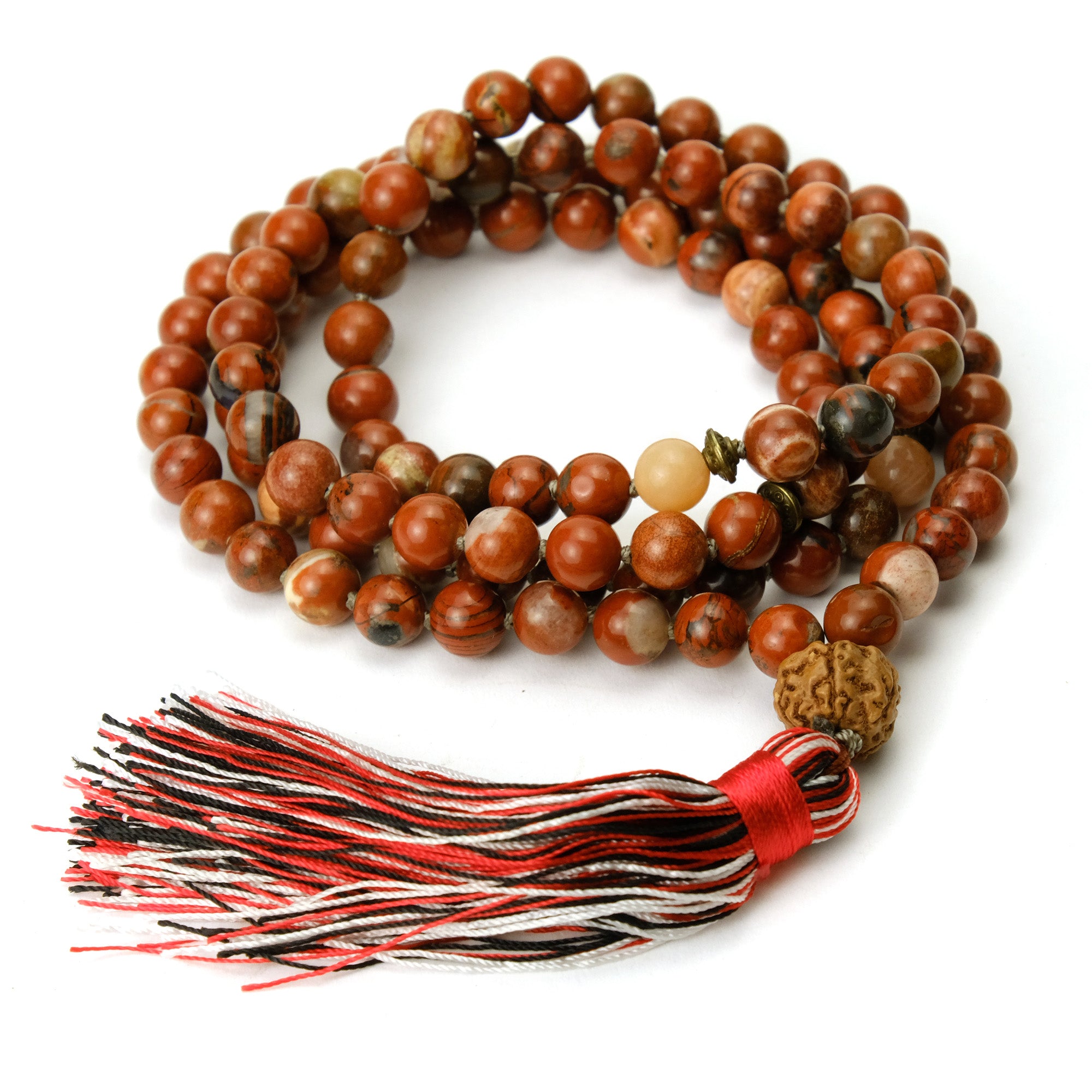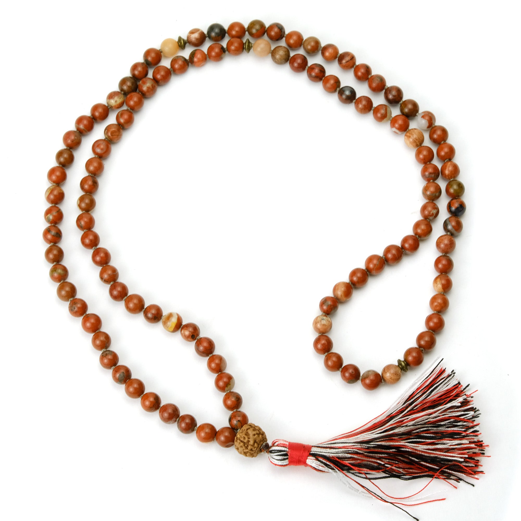 Jasper and Rudraksha 8mm Knotted Mala with Silk Tassel #102
