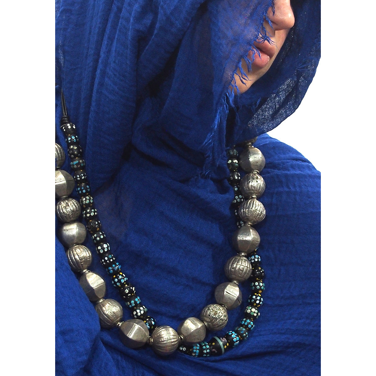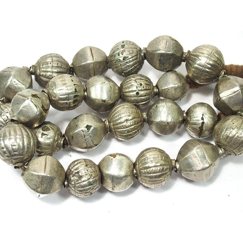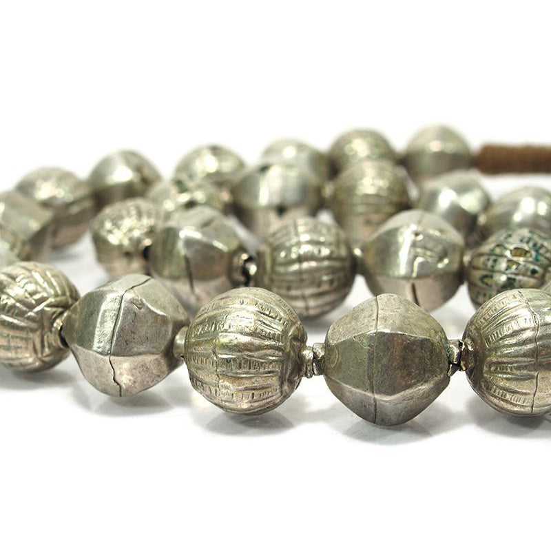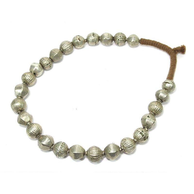 Ethiopian Fine Coin Silver Heirloom Hollow Cast Beads Necklace ca. 1900