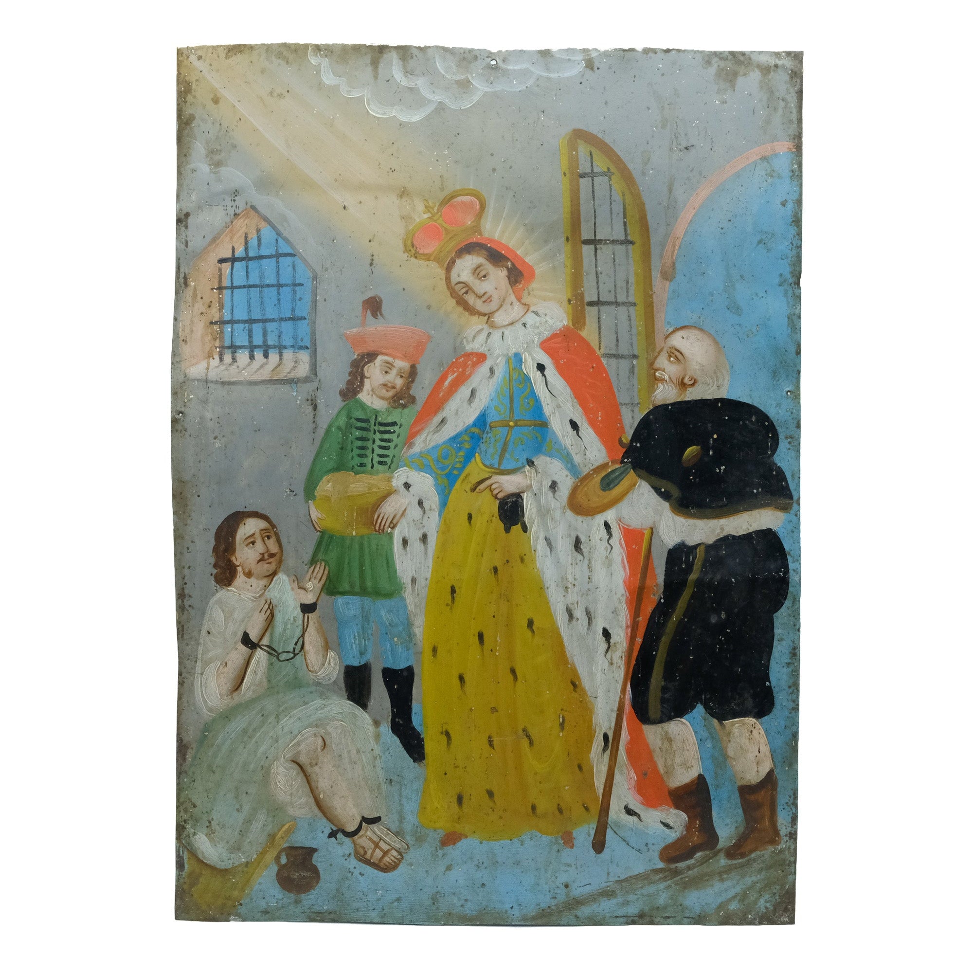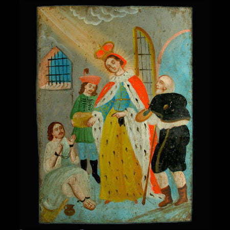 19th Century Mexican Santa Eduviges de Augustin Barajas "The Skimpy Painter" Retablo #141