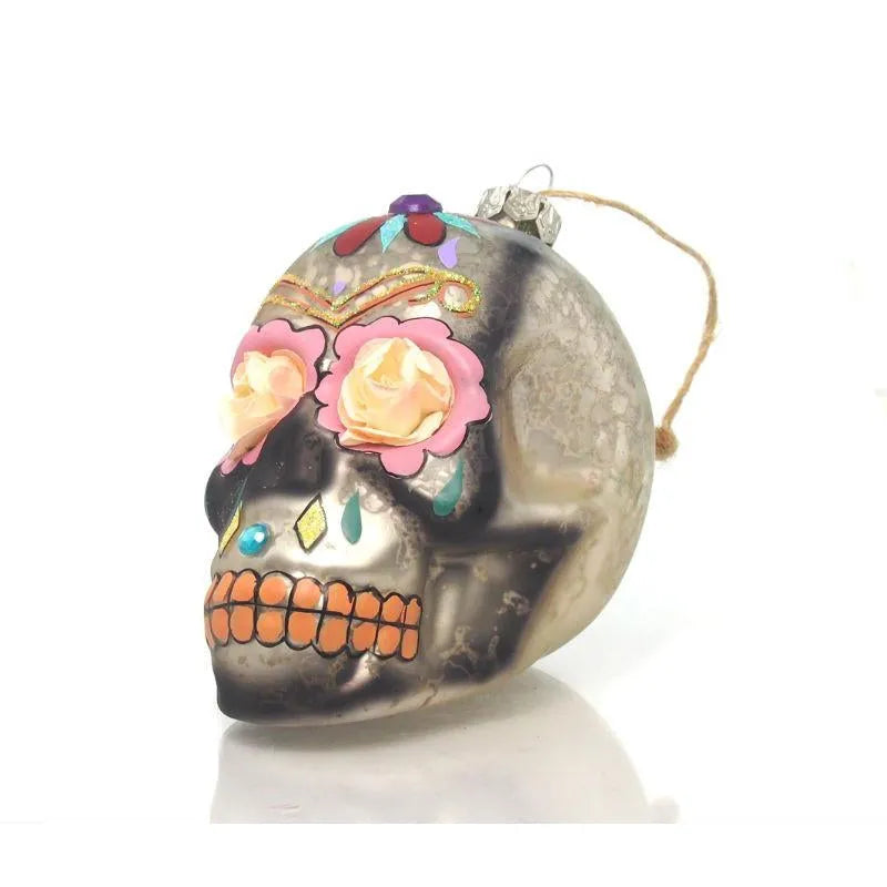 Day of the Dead Skull Flower/Eye Glass Ornament, B