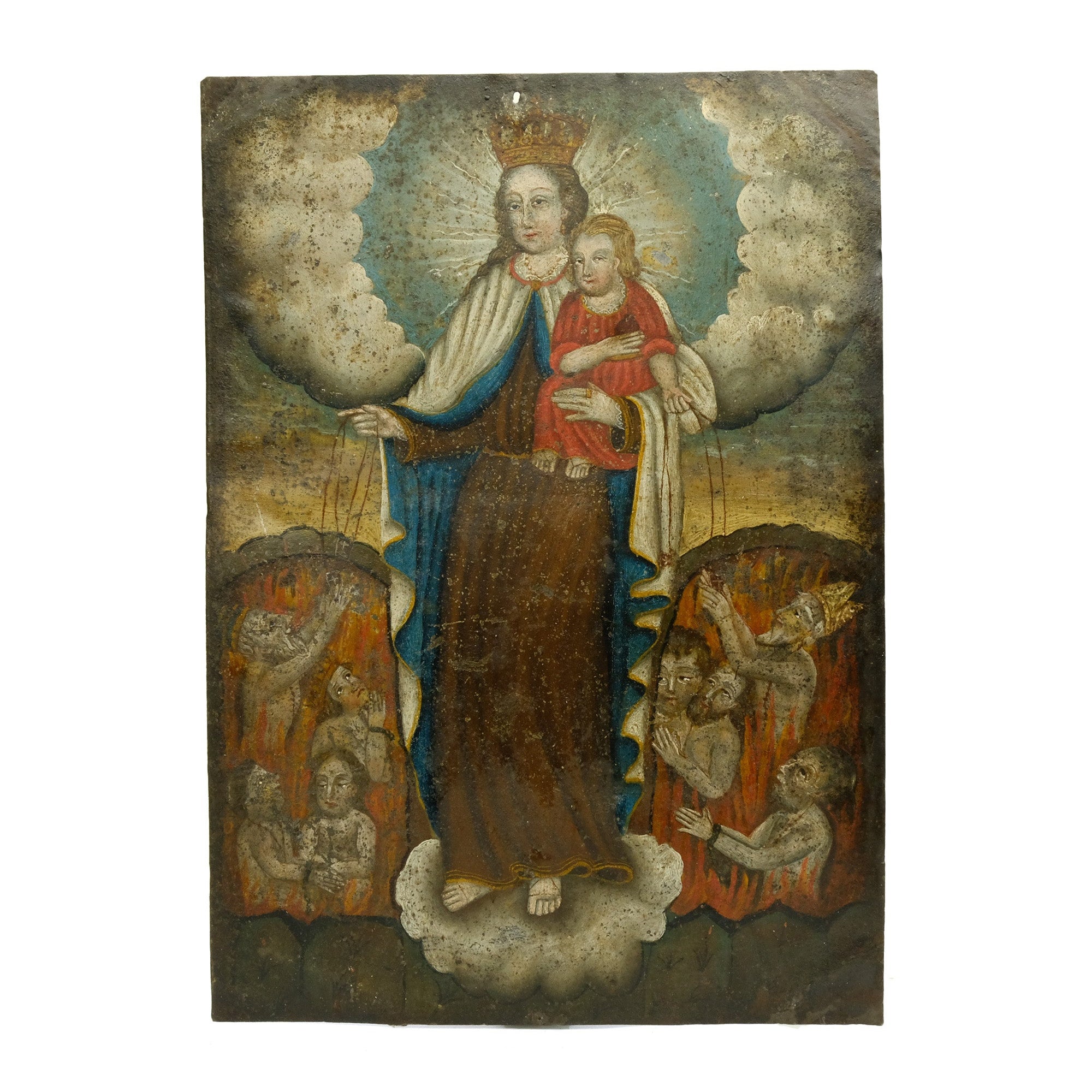 19th Century Mexican Nuestra Señora del Carmen Retablo #101