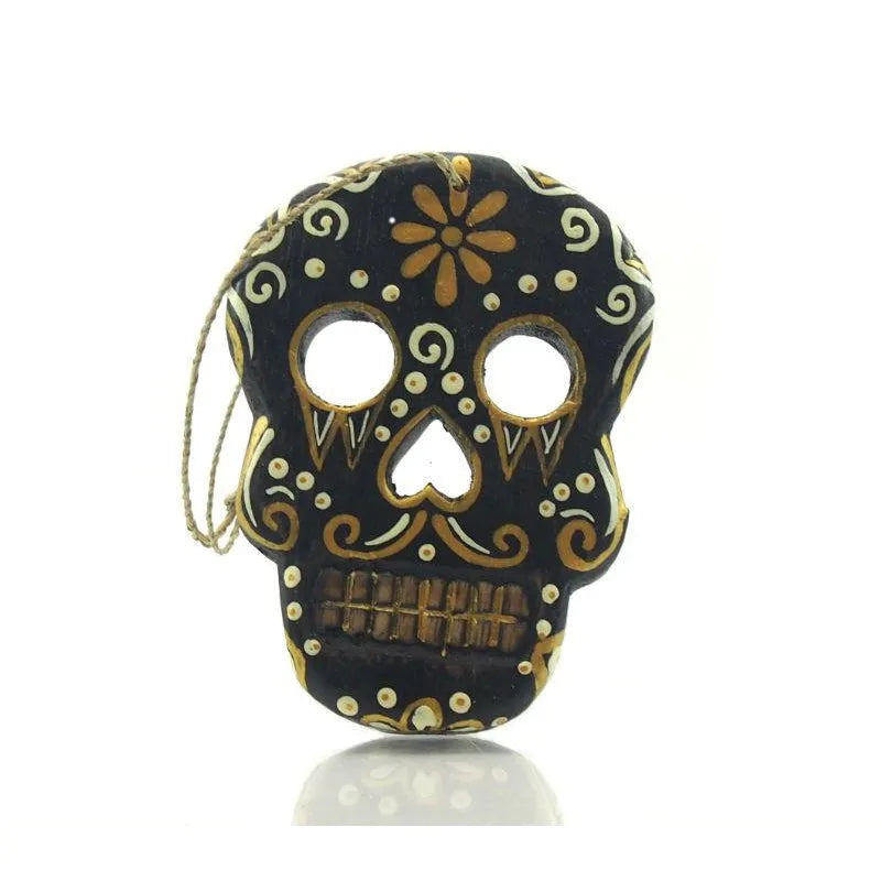 Painted Wooden Skull Ornament