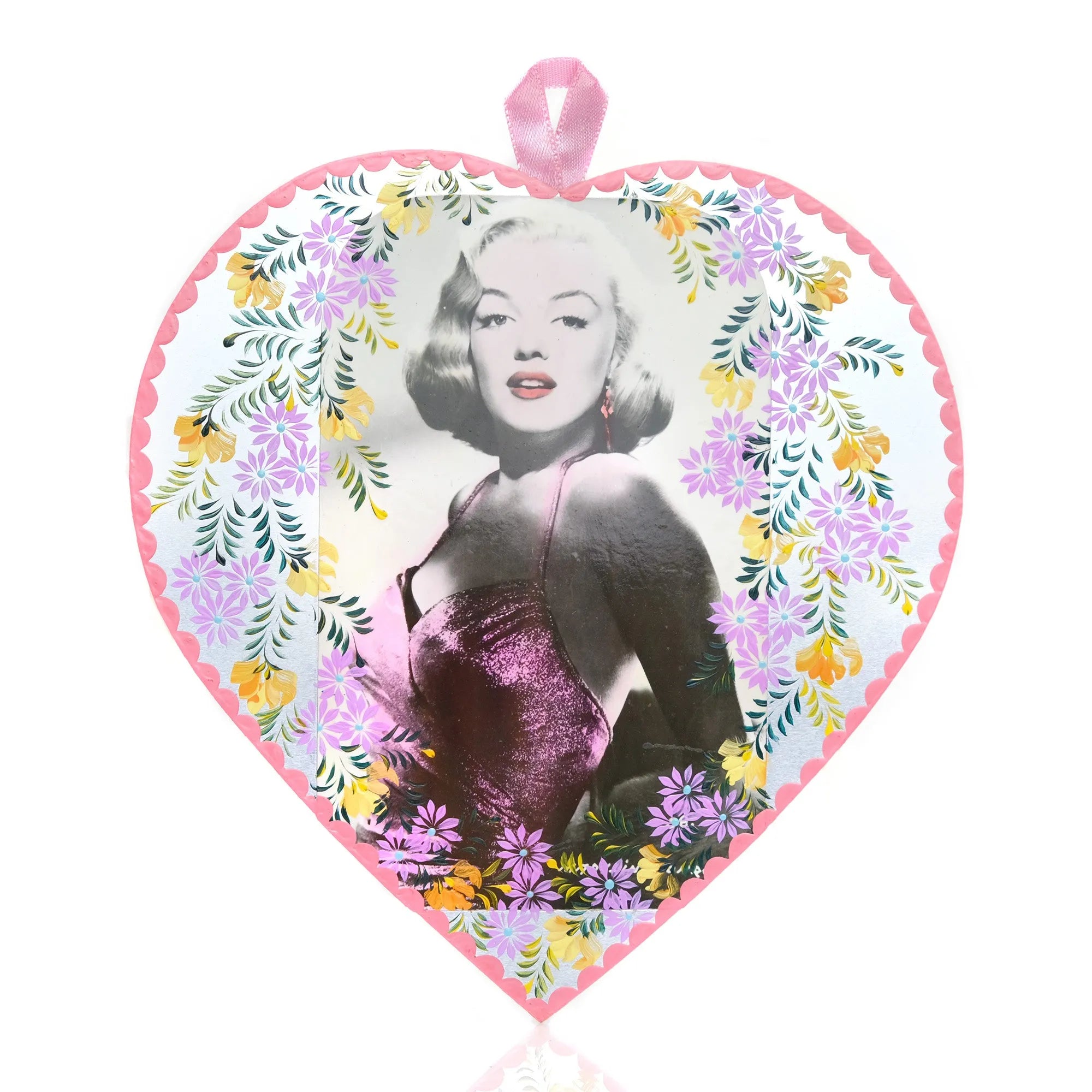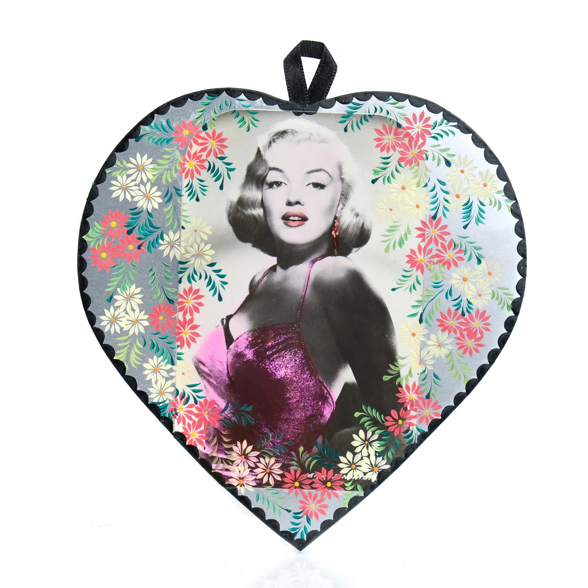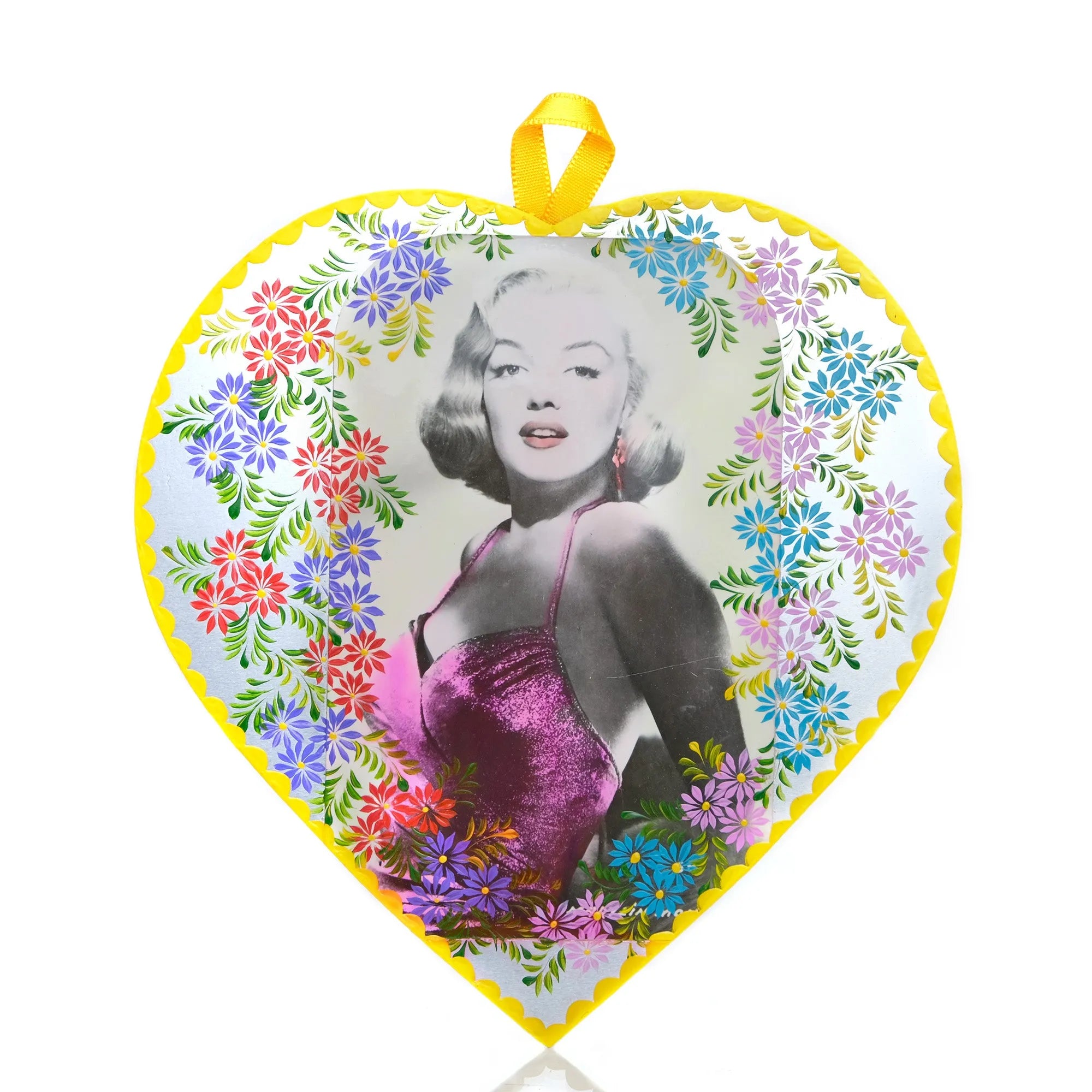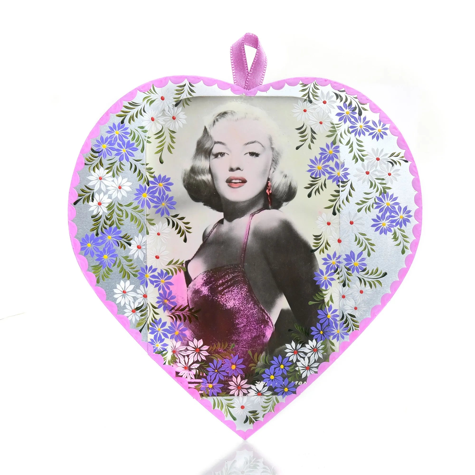 Hand-Painted Elvis/Marilyn Heart Ornament