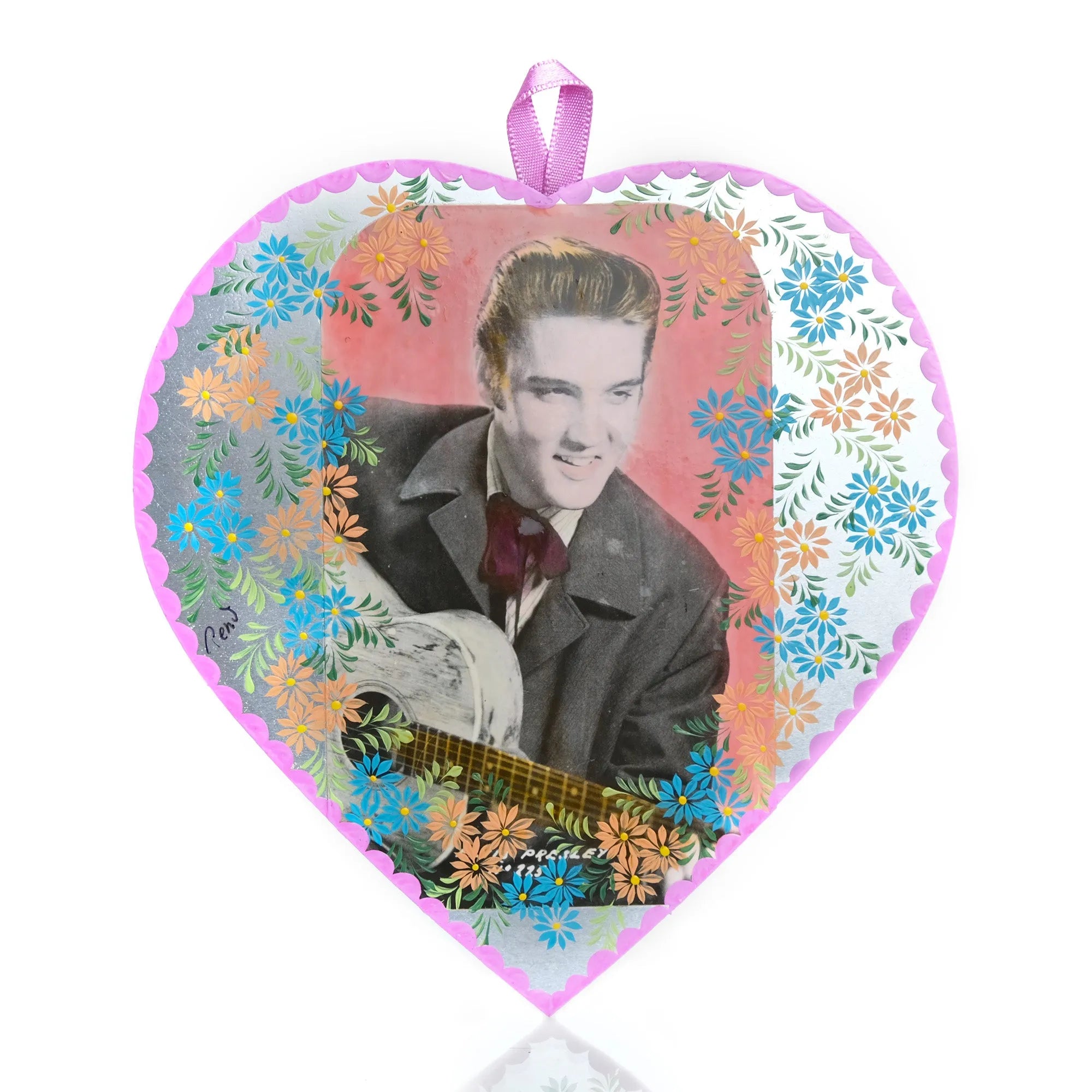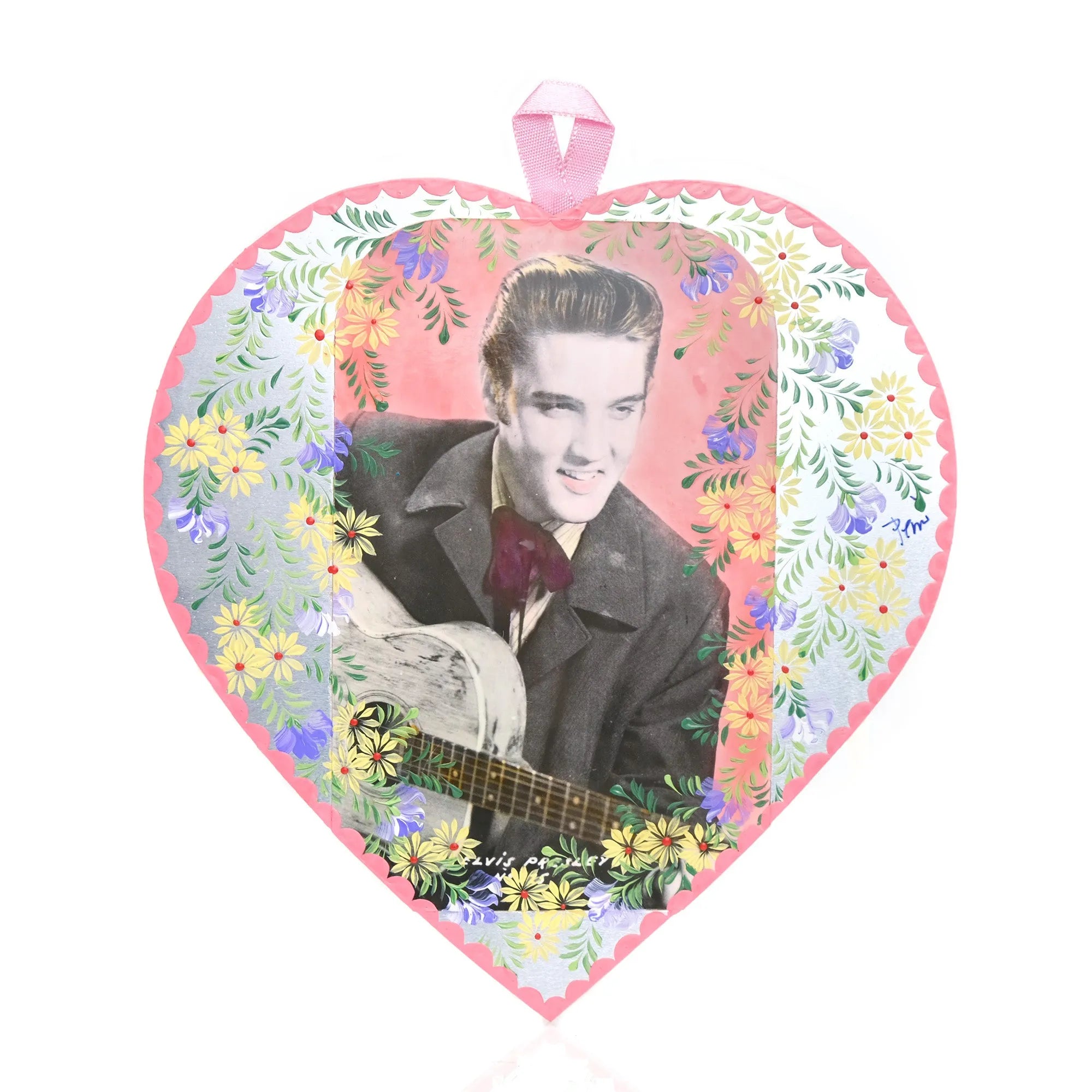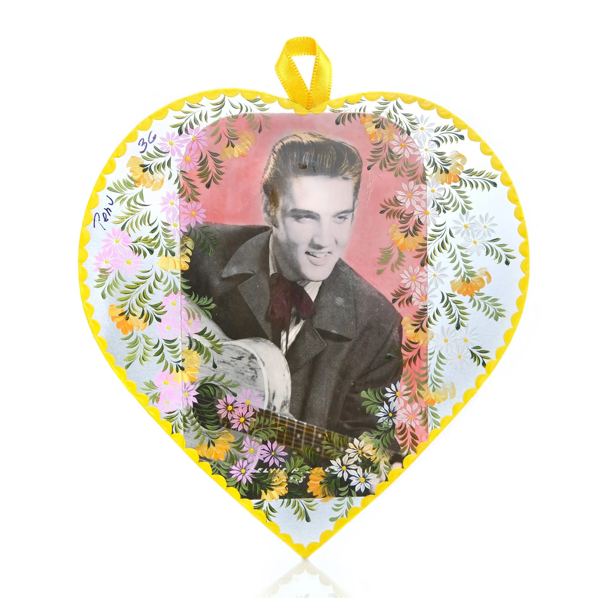• Hand-Painted Elvis/Marilyn Heart Ornament