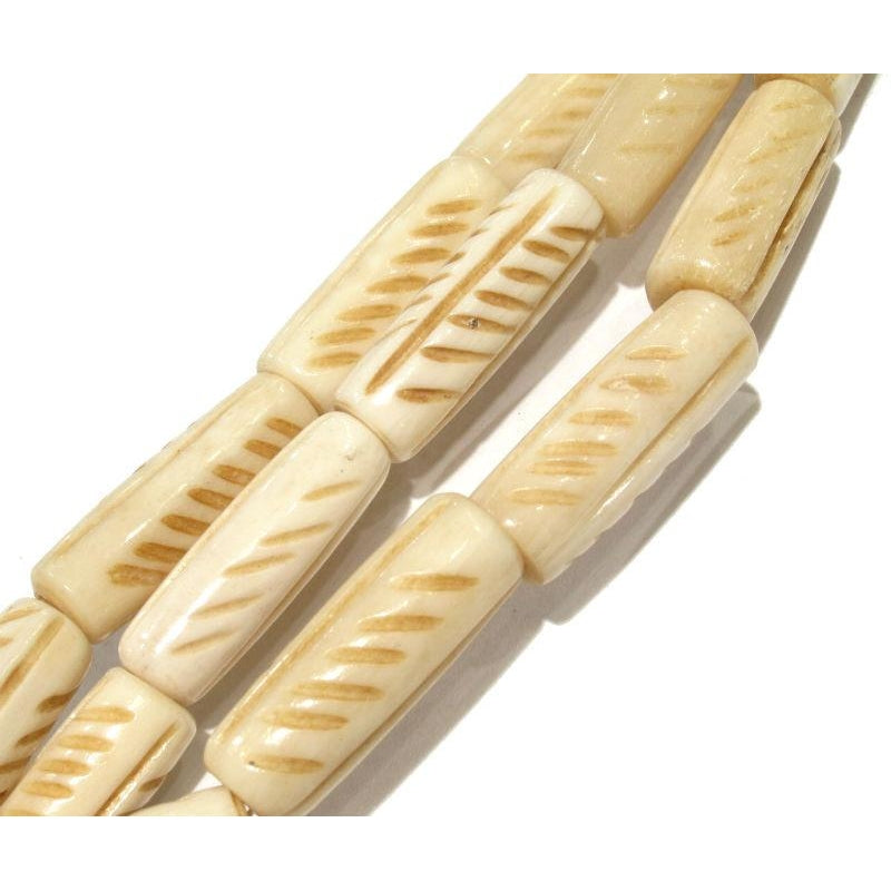 • Carved Cowbone Tube Beads