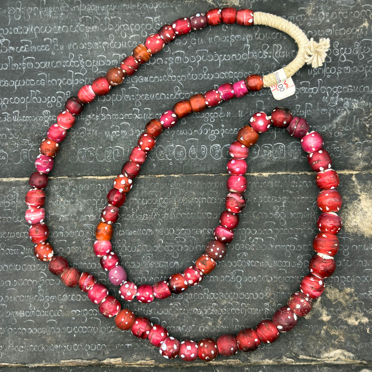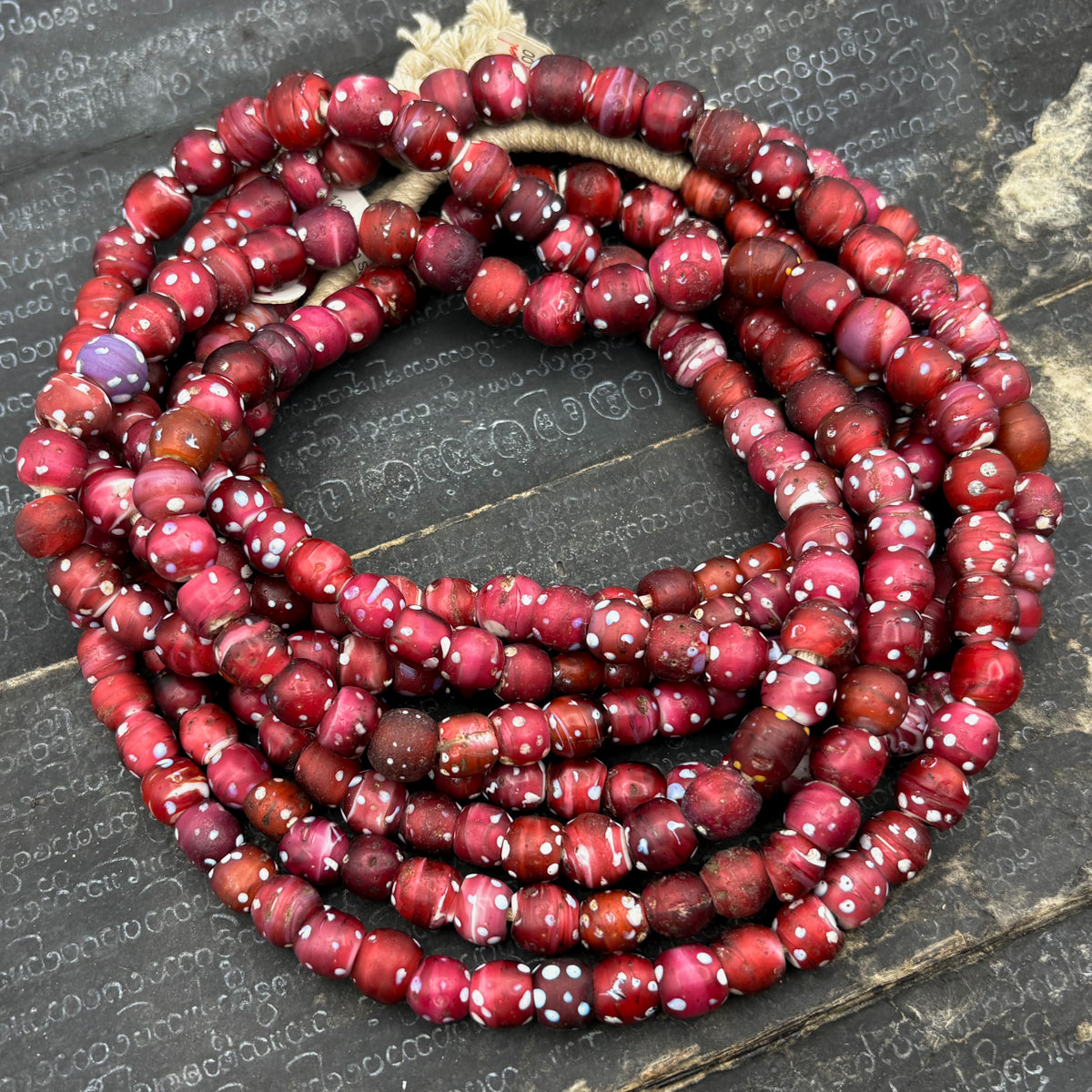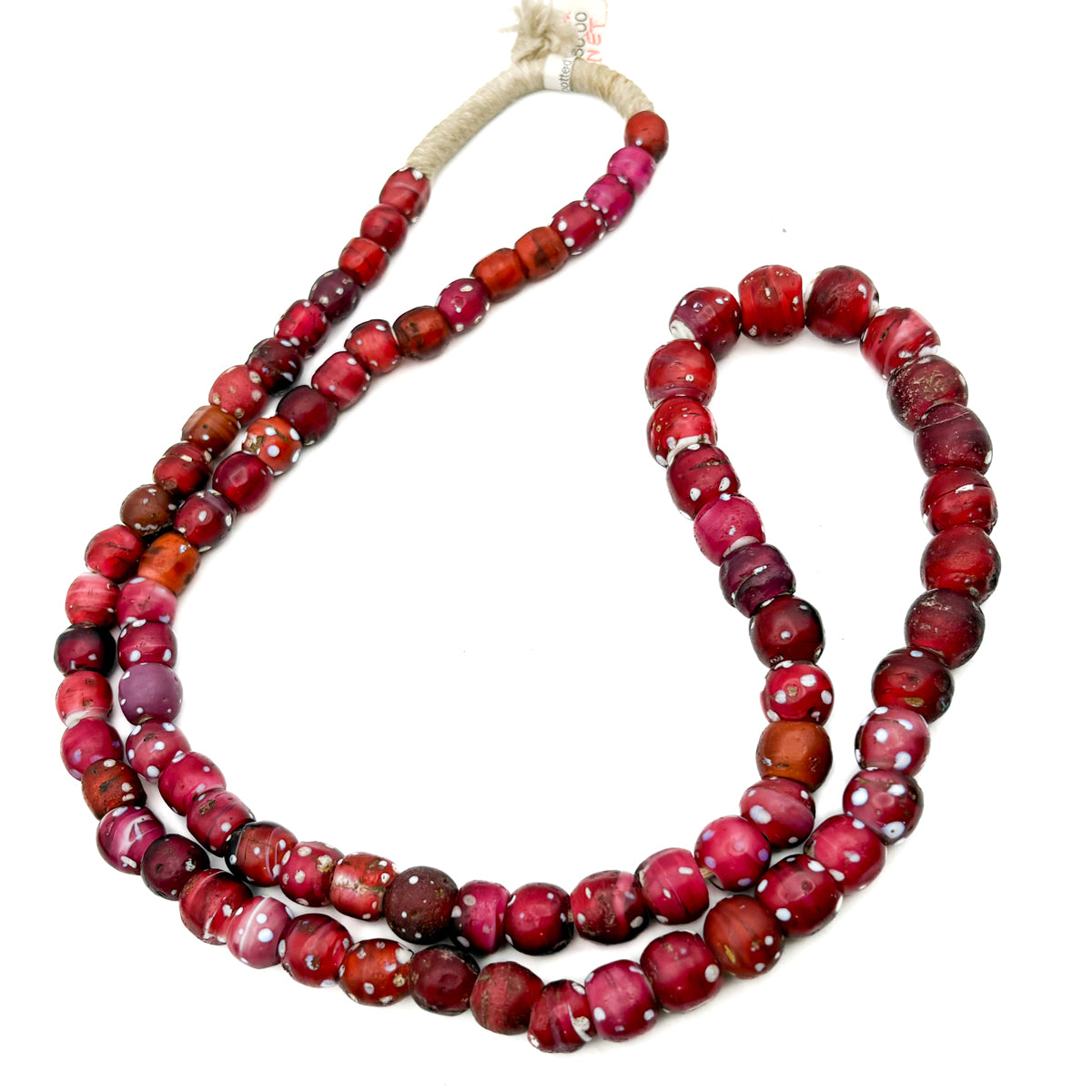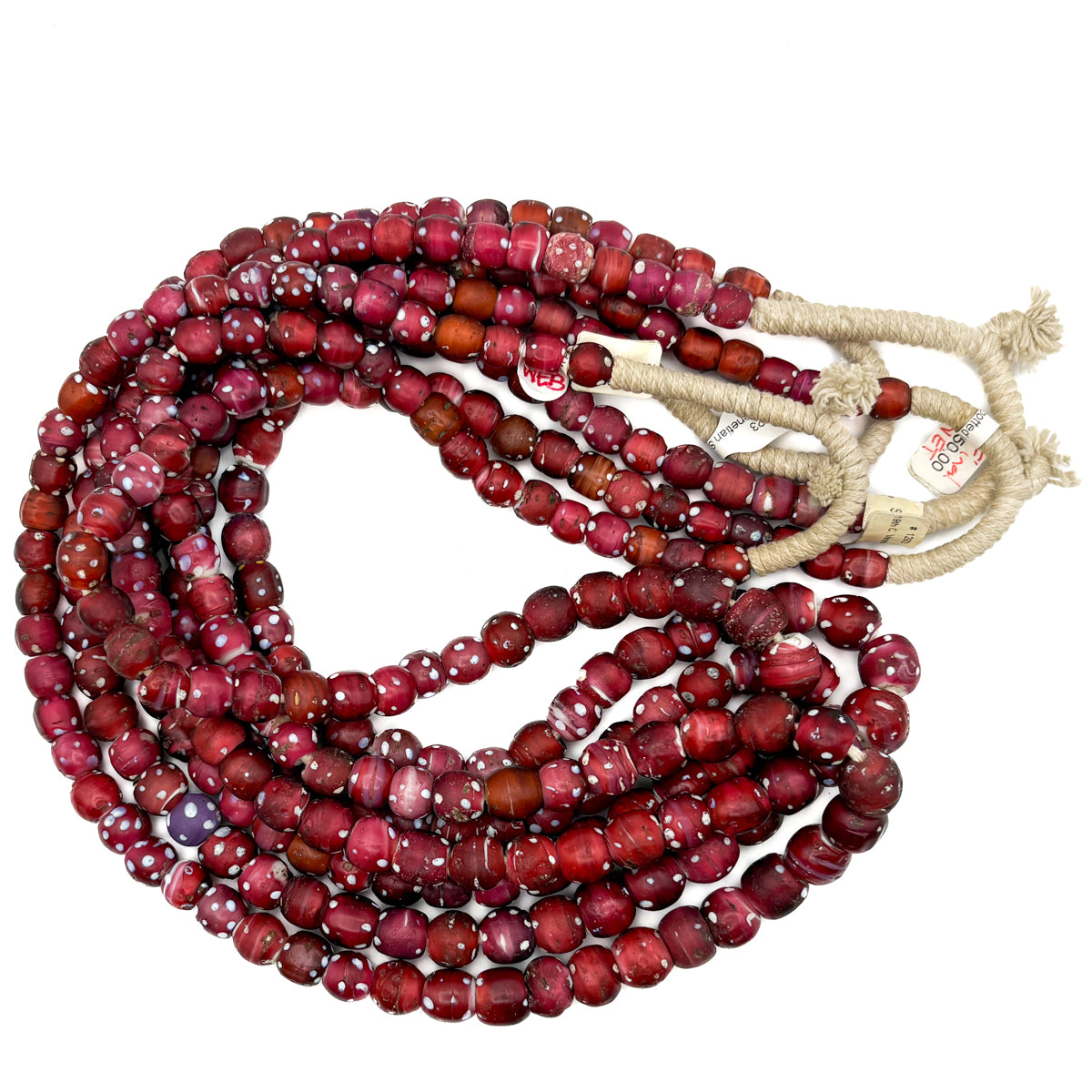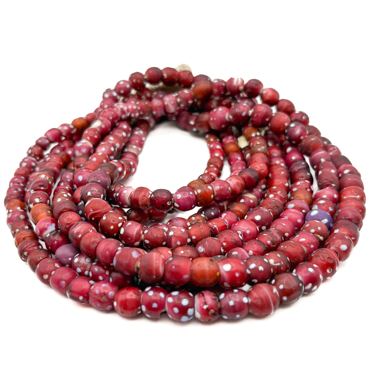19th C. Venetian Three Layer Hand Inlaid White Heart "Eye" Beads / Necklace