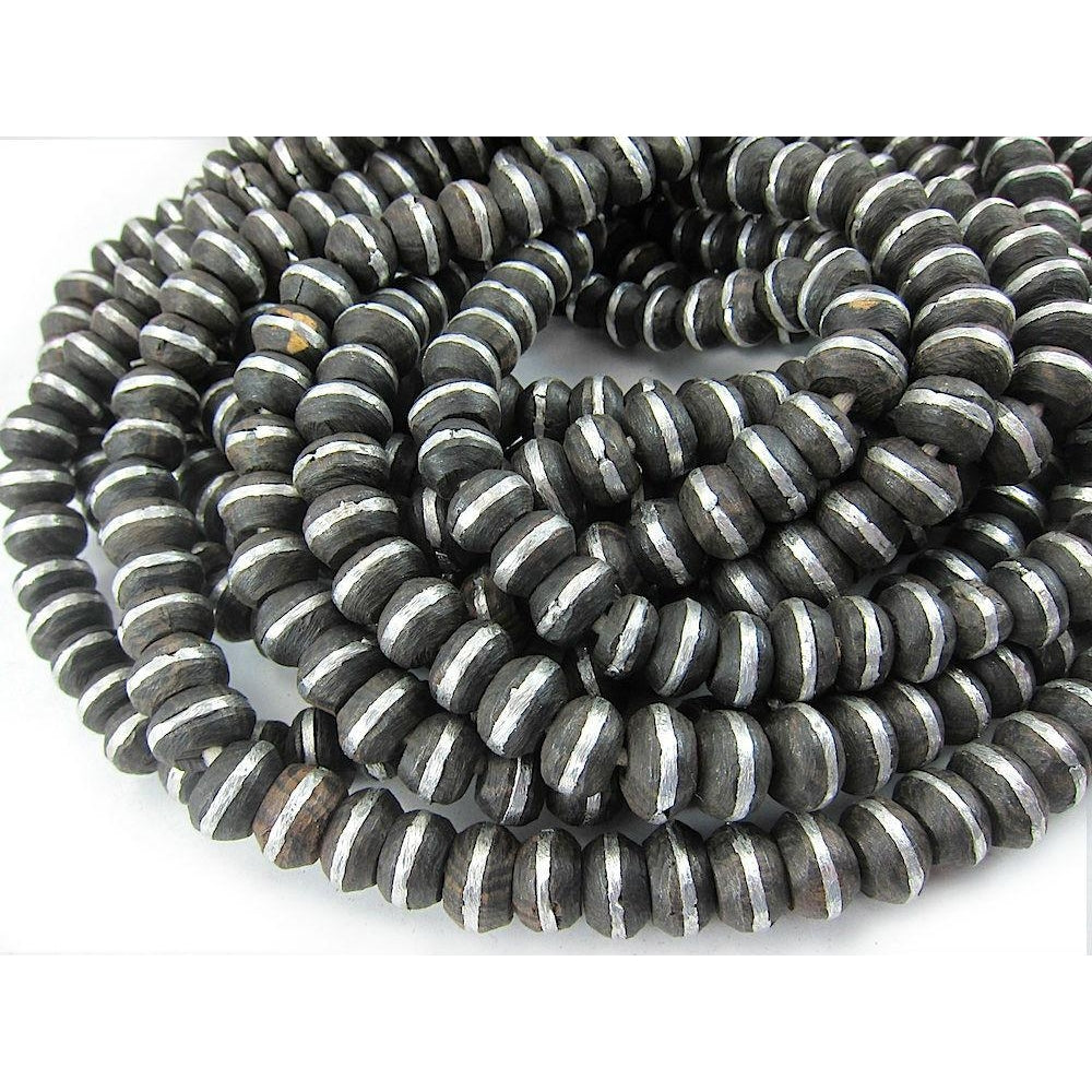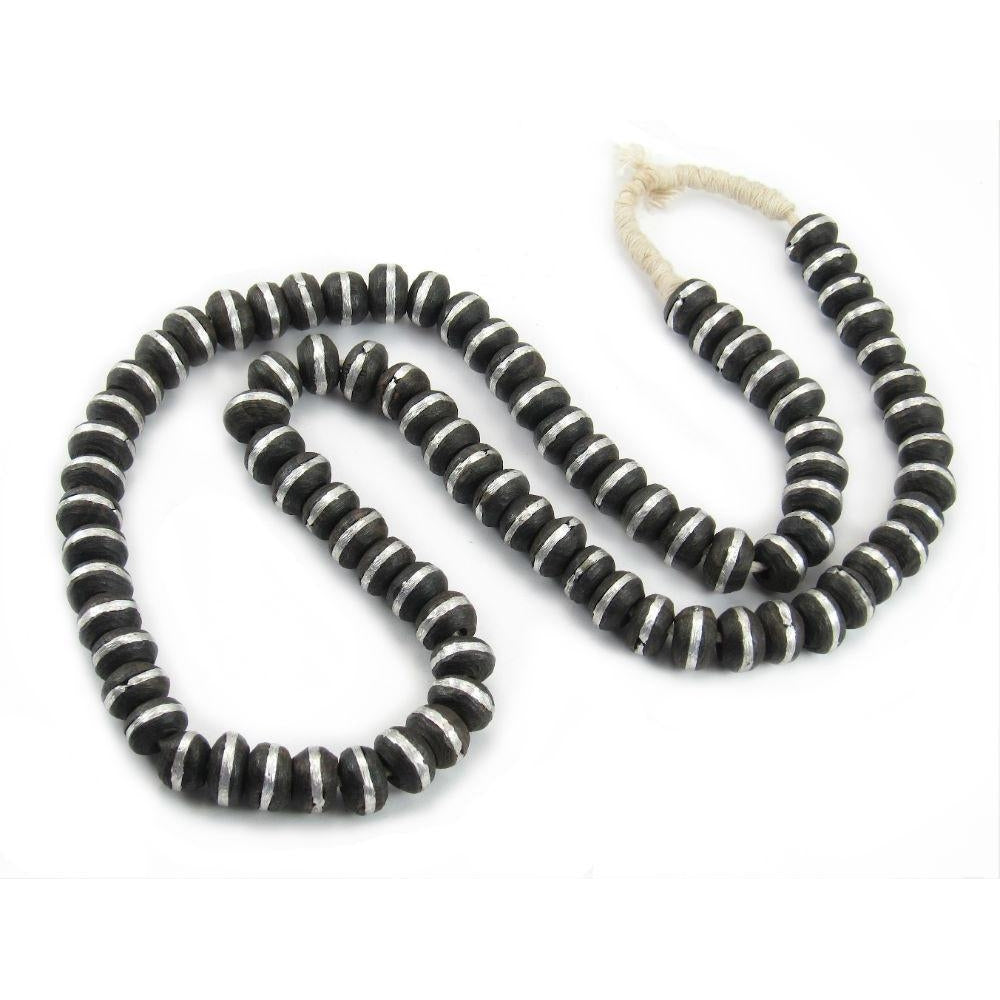 Hand Carved Wood Beads W/ Hand Inlaid Aluminum Necklace