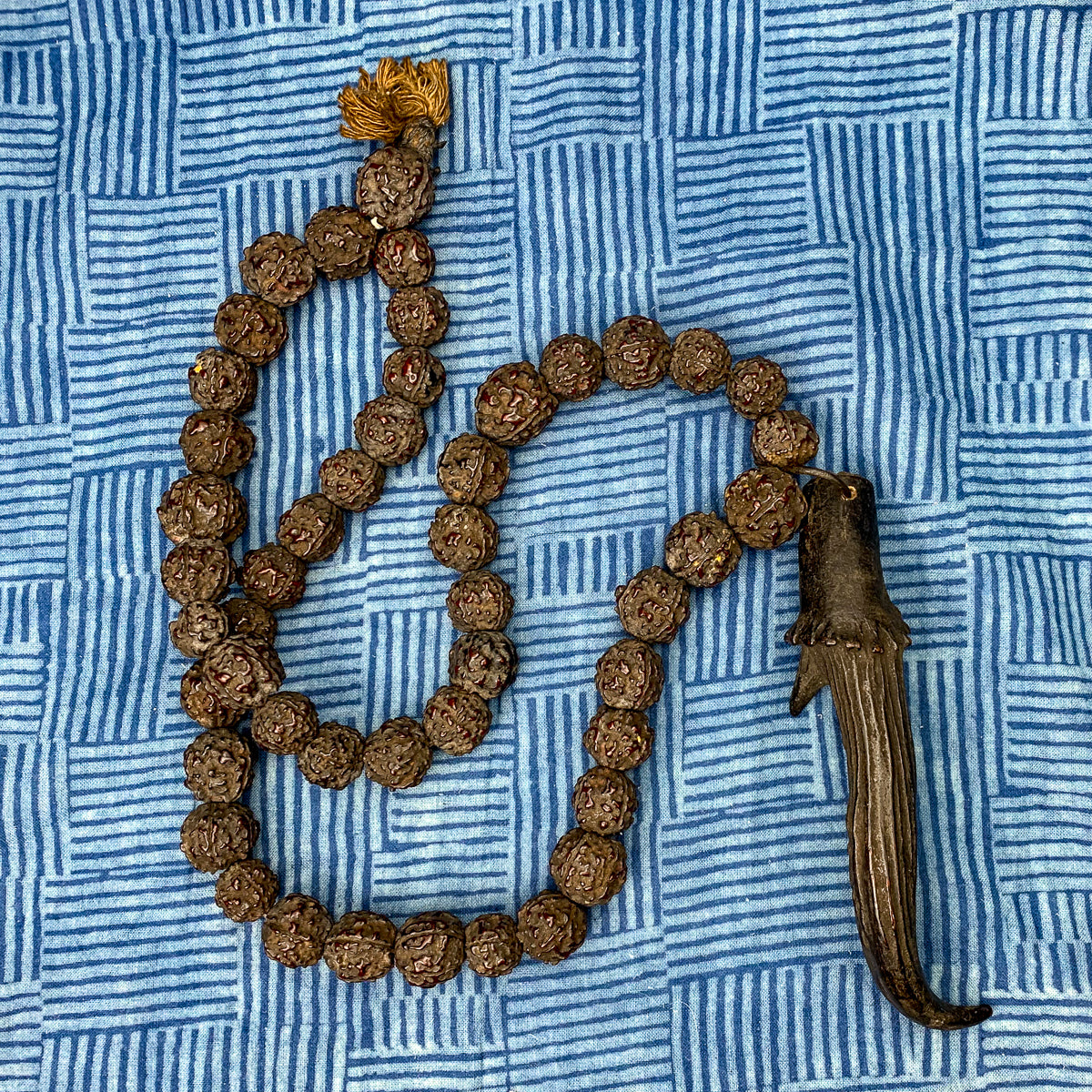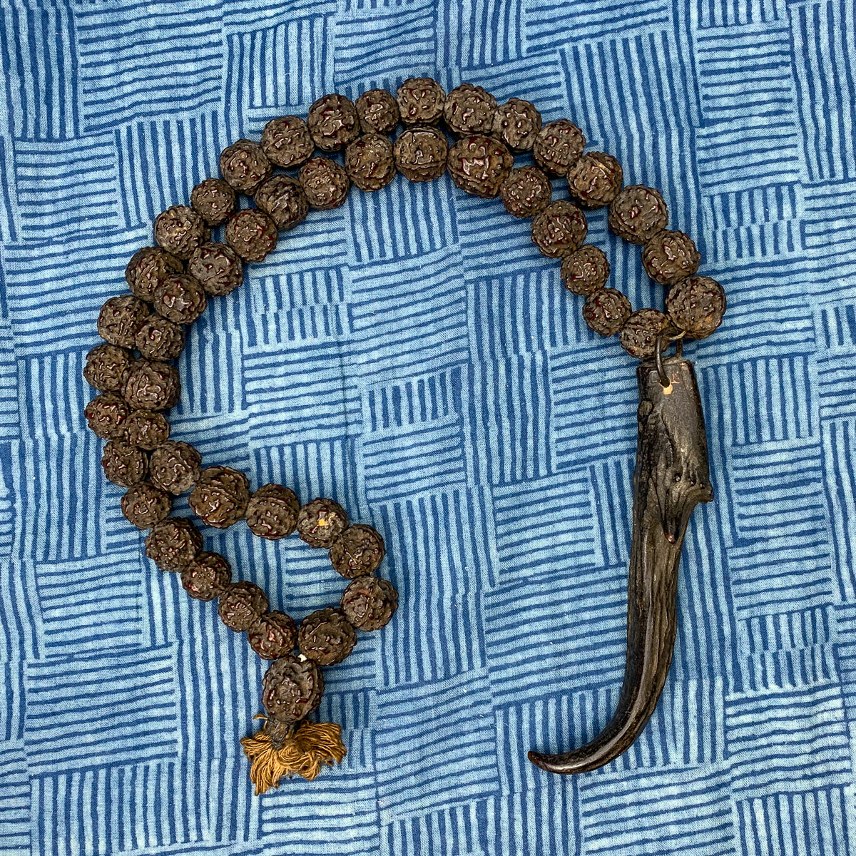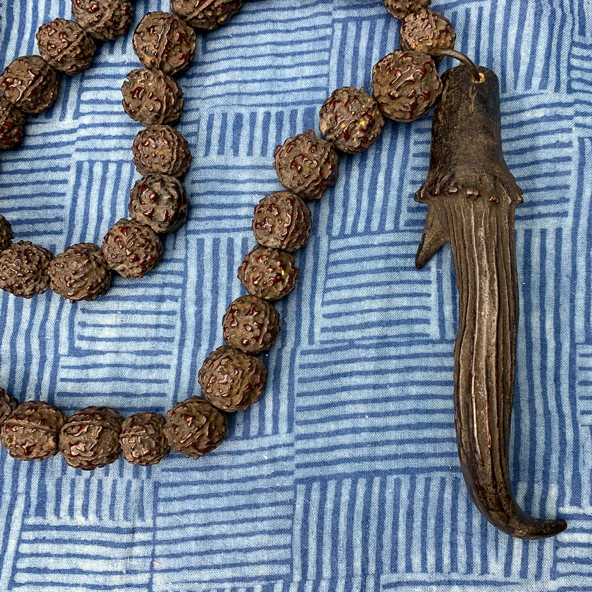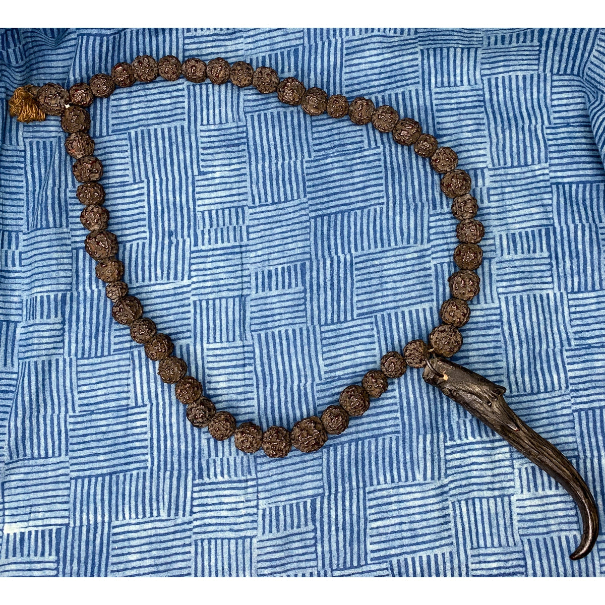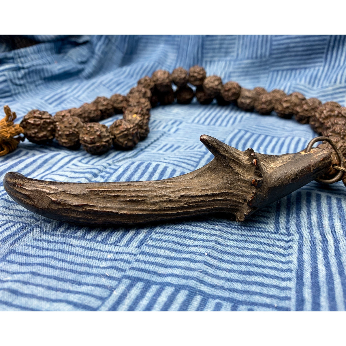 Antique Rudraksha Necklace with Deer Antler Talisman Necklace
