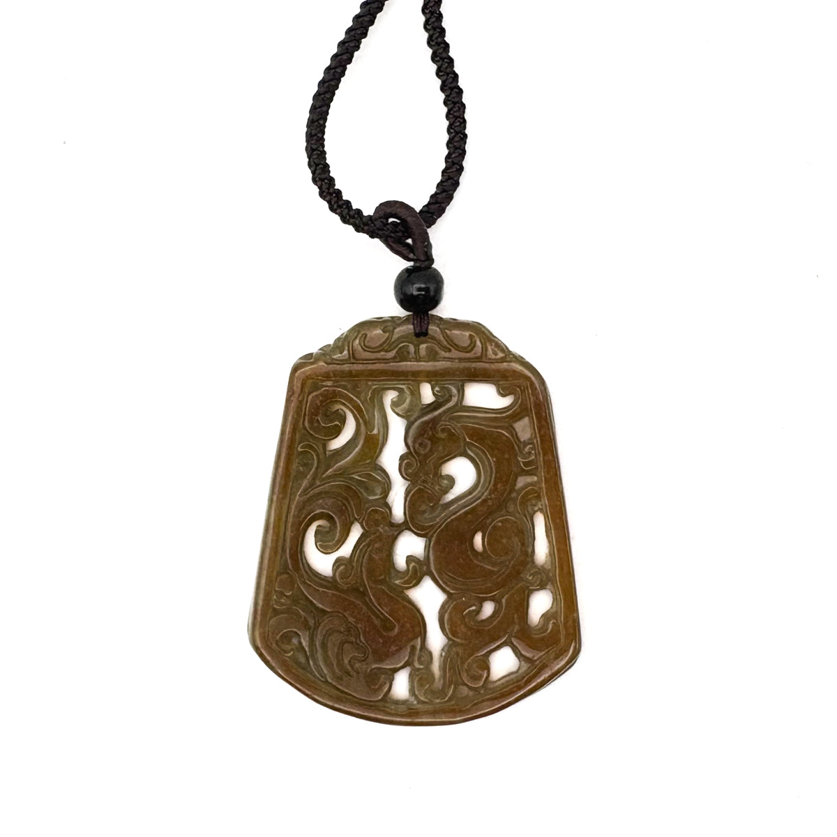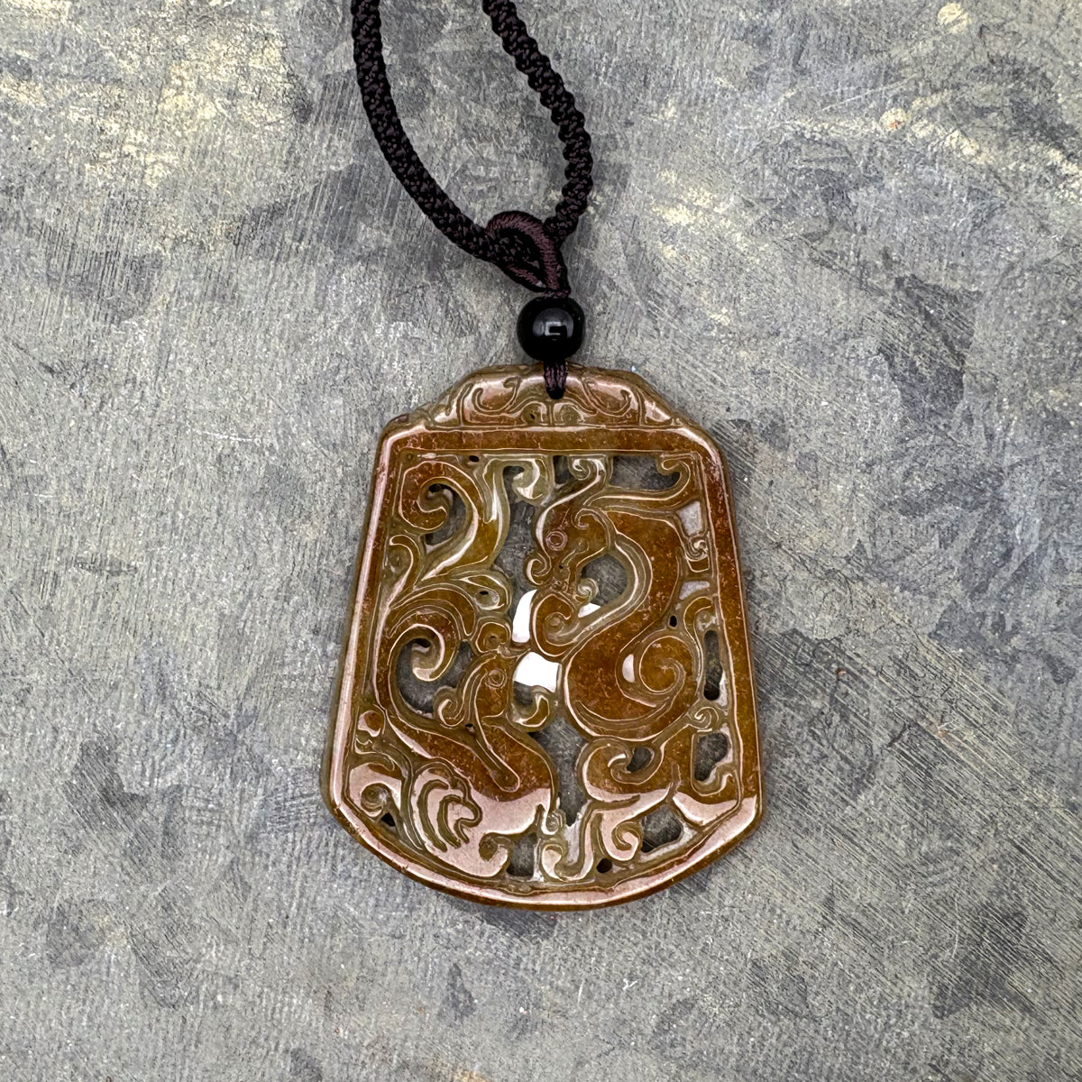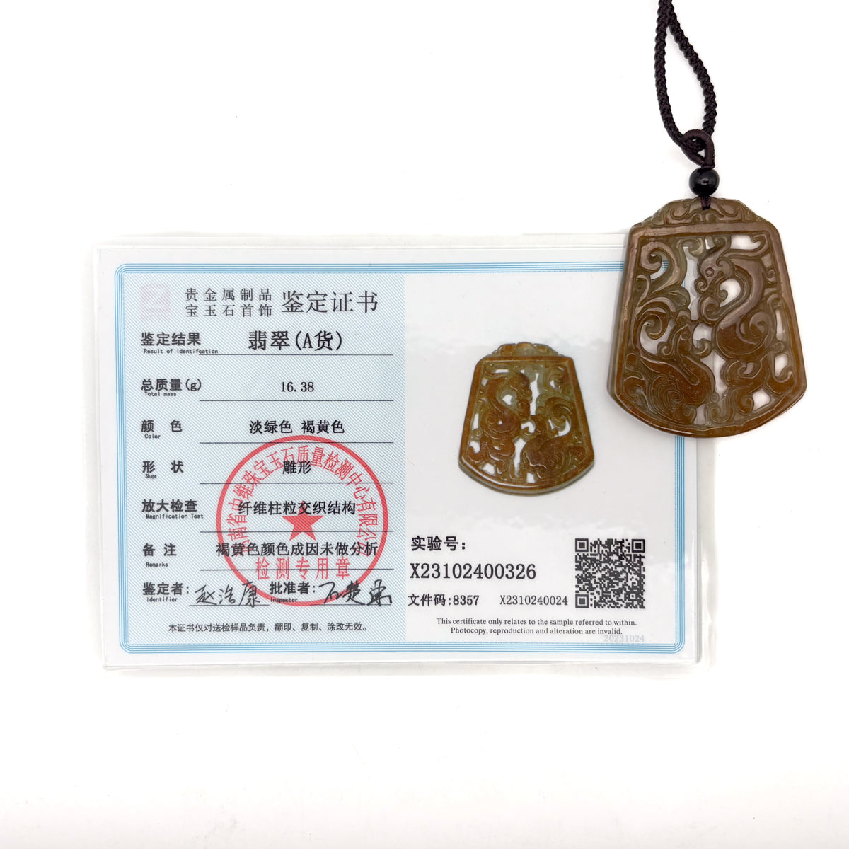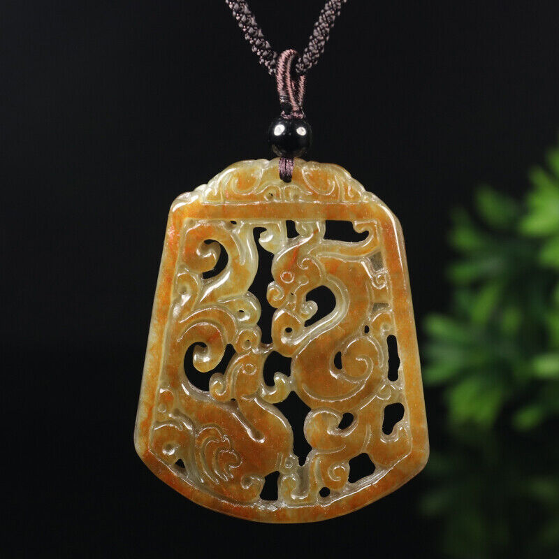 Certified Grade A Red Green Natural Jadeite Jade Pendant Dragon Phoenix Necklace