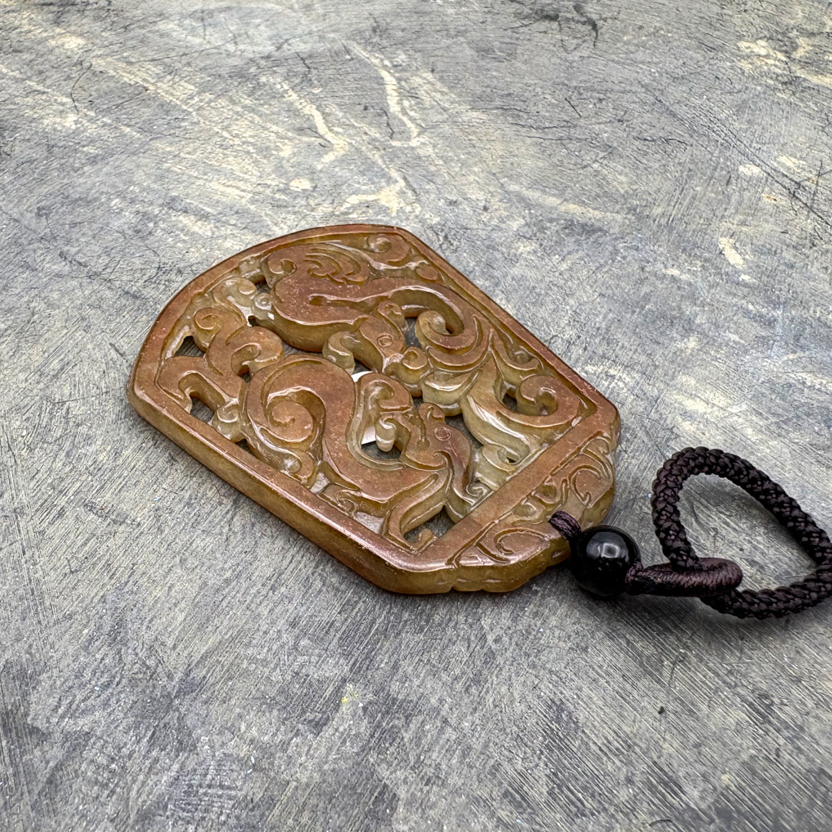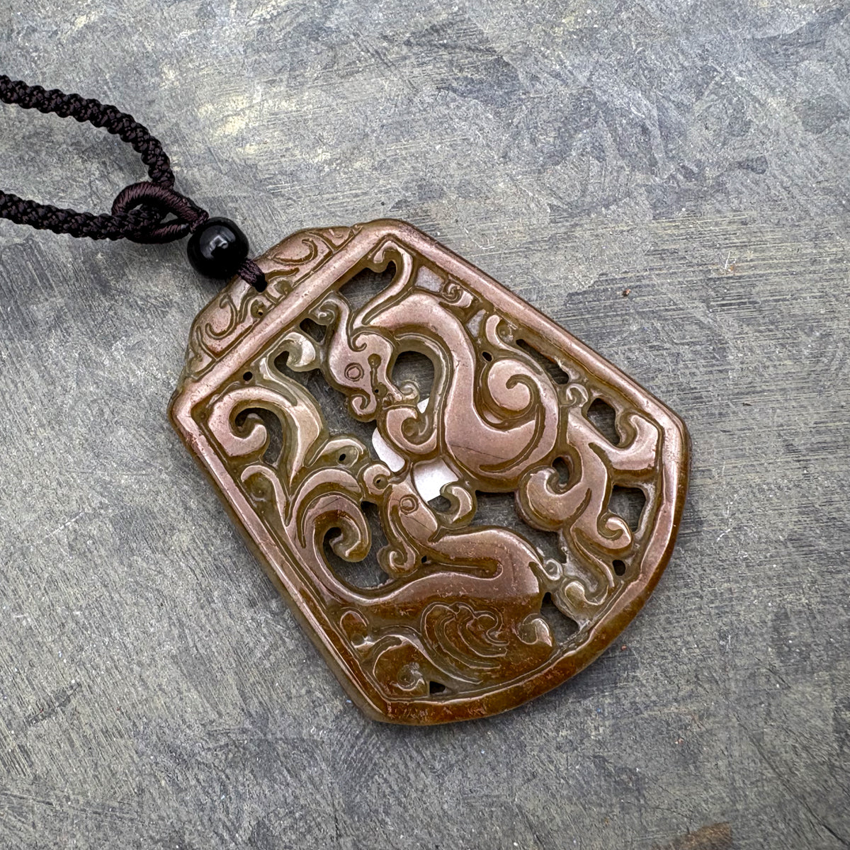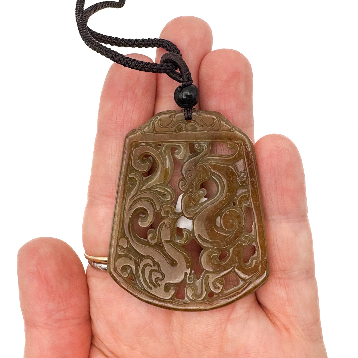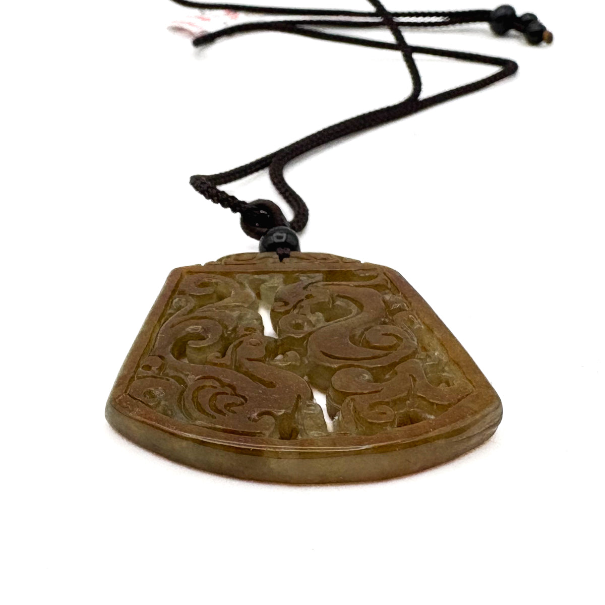 Certified Grade A Red Green Natural Jadeite Jade Pendant Dragon Phoenix Necklace