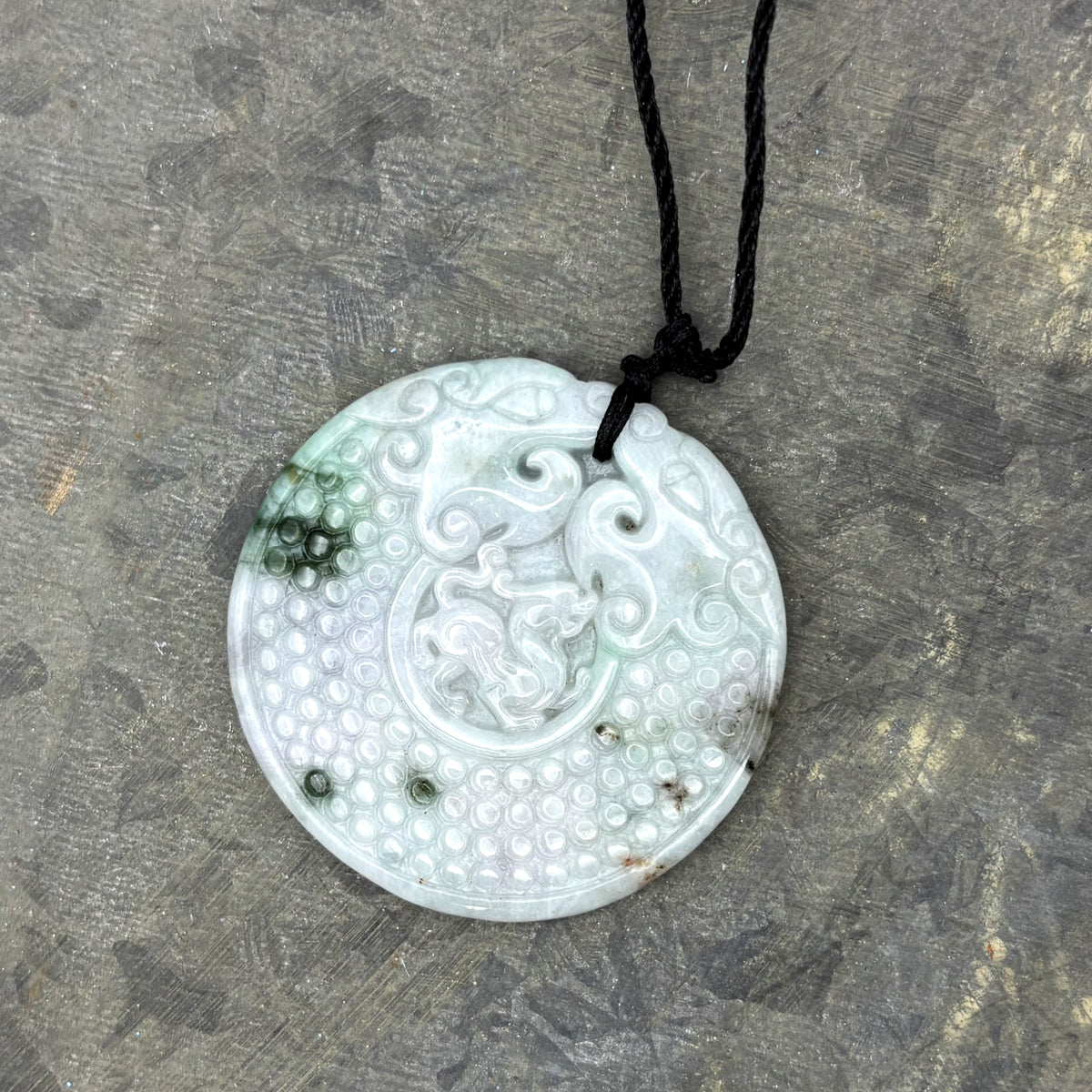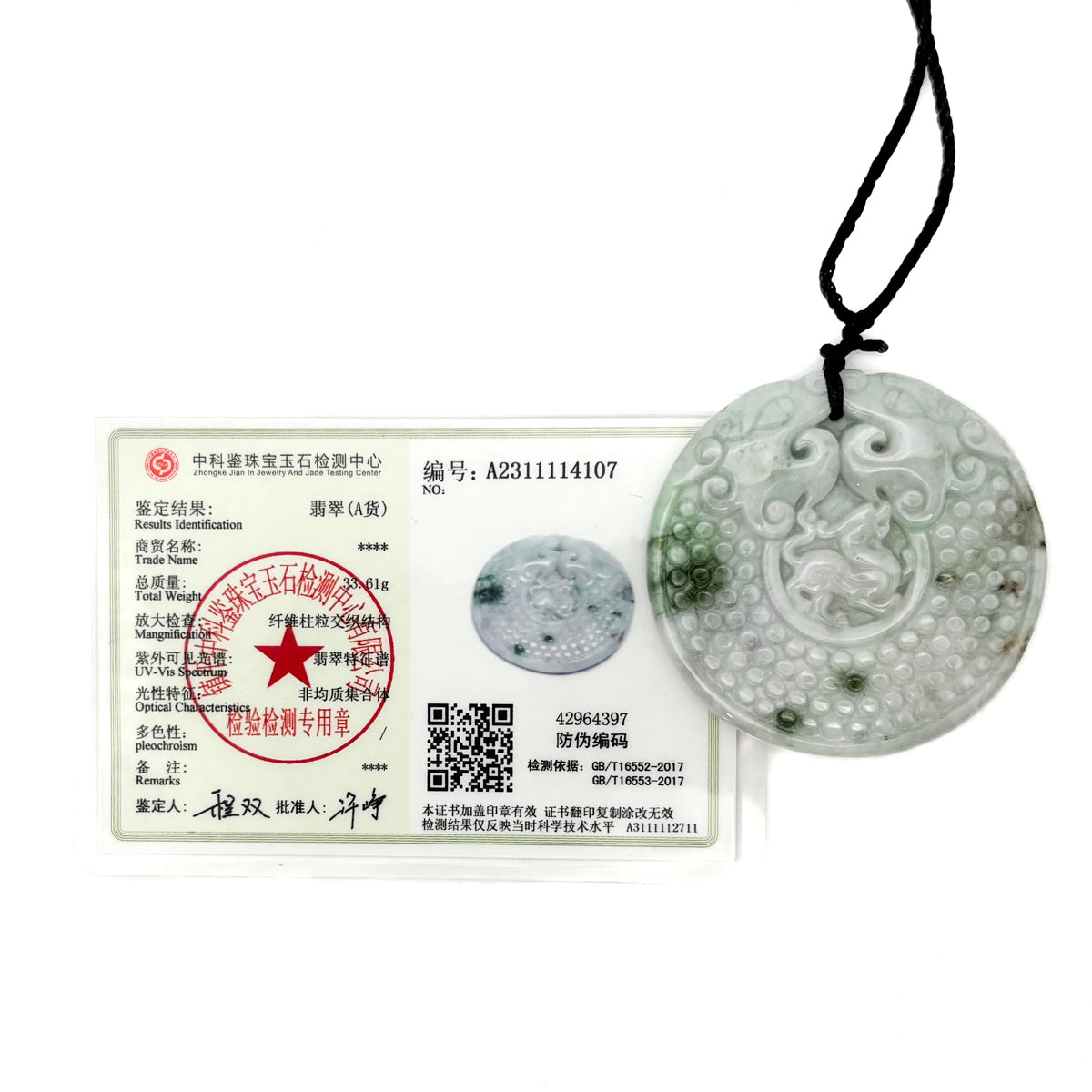Certified Green Lavender Natural A Jade Jadeite Retro Style Dragon Pi Xi Pendant