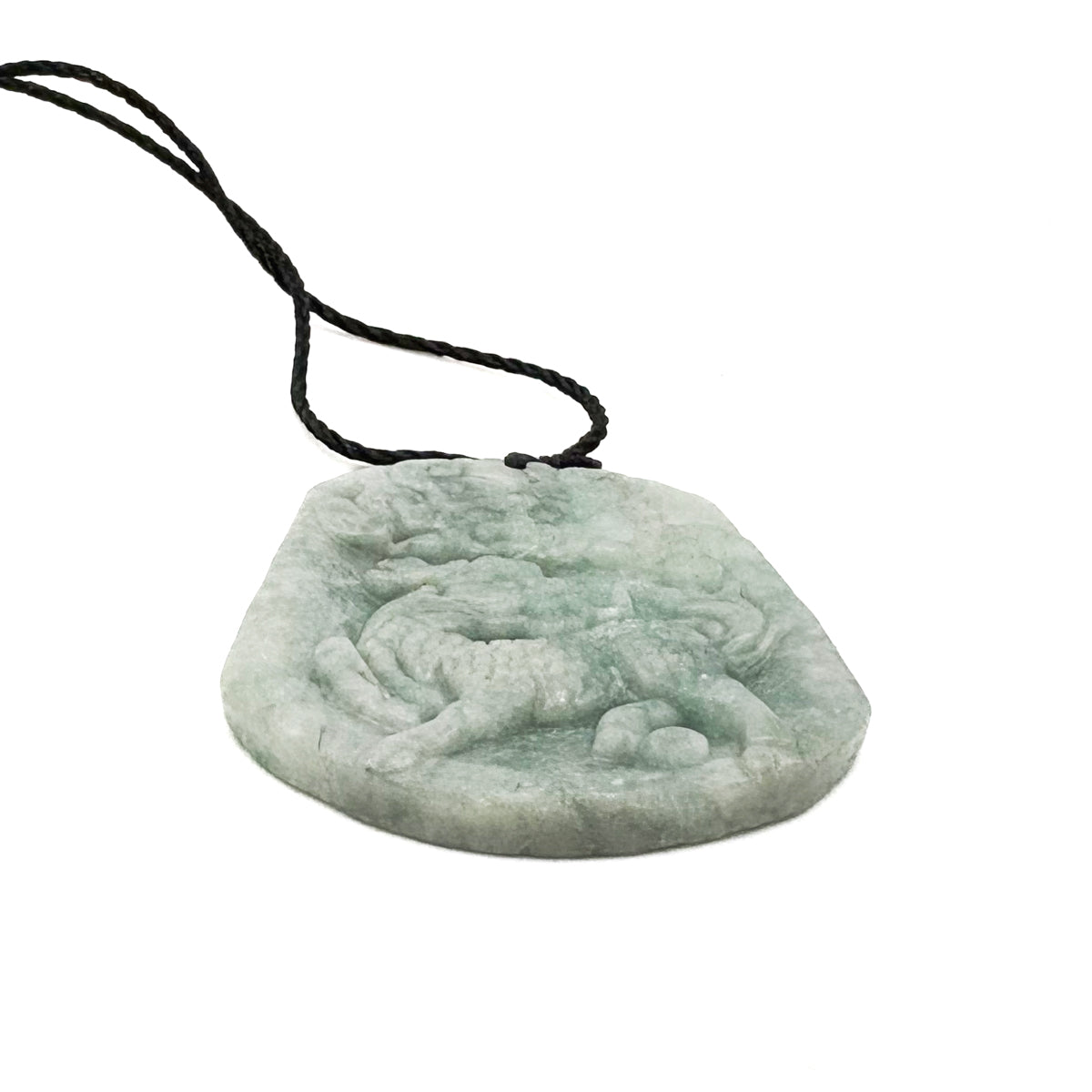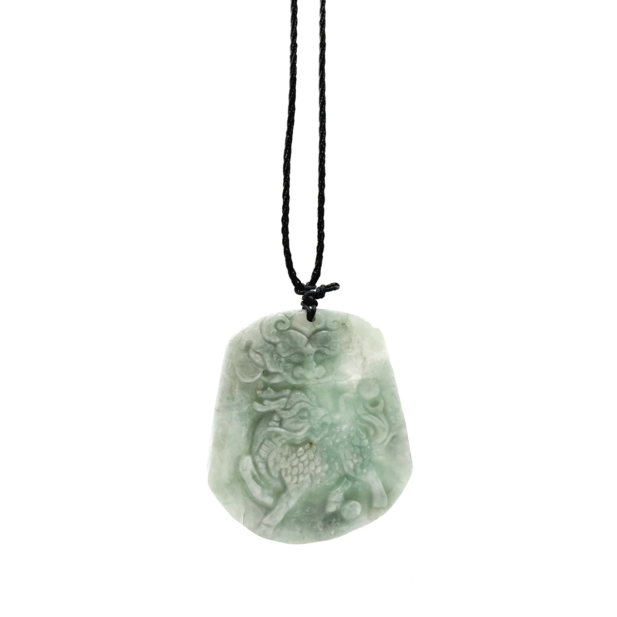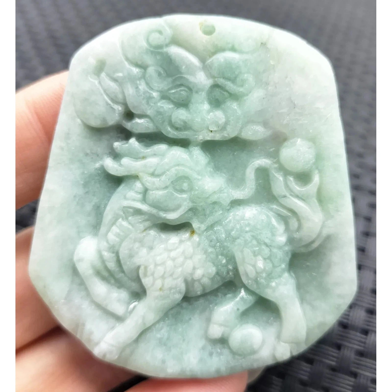 Certified Green Natural Type A Jade Jadeite Carved Kylin Dragon Head Pendant