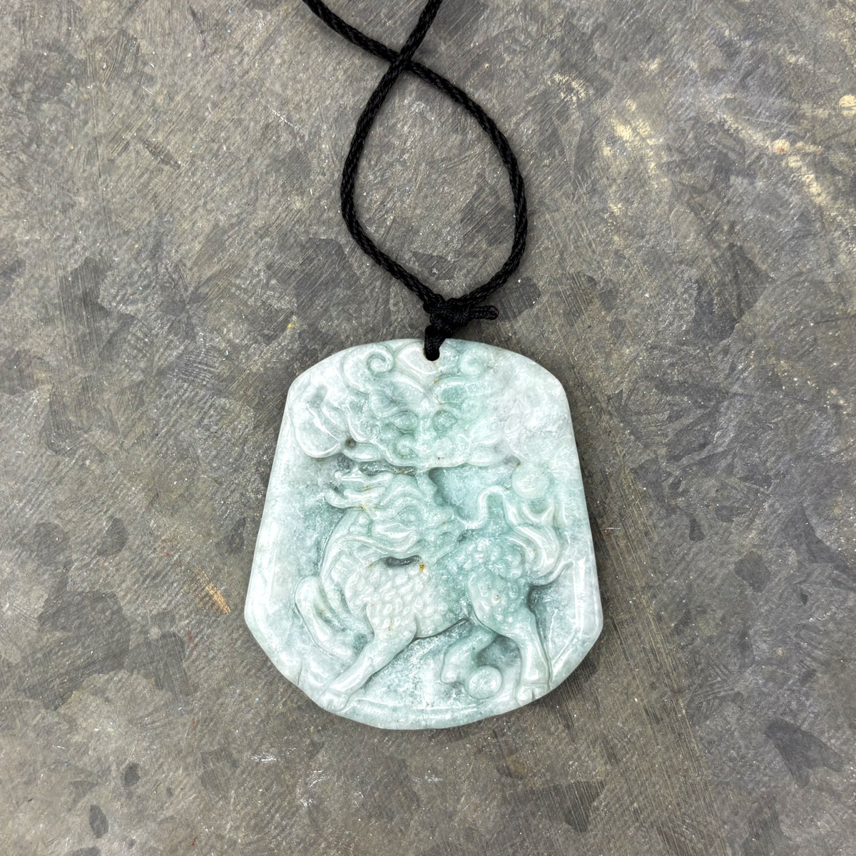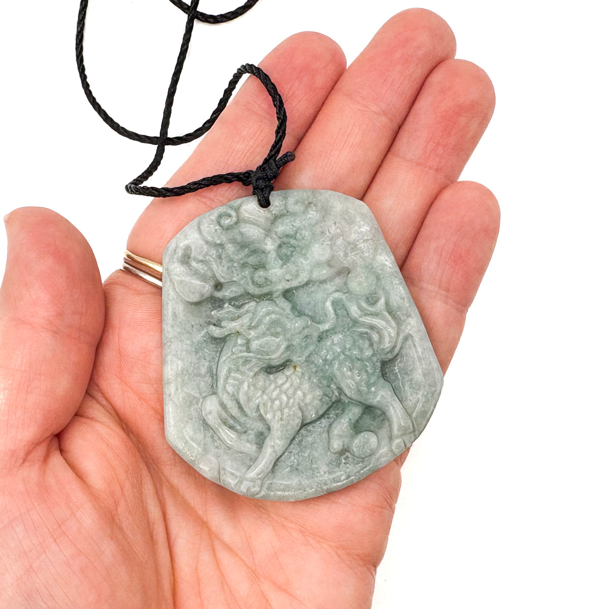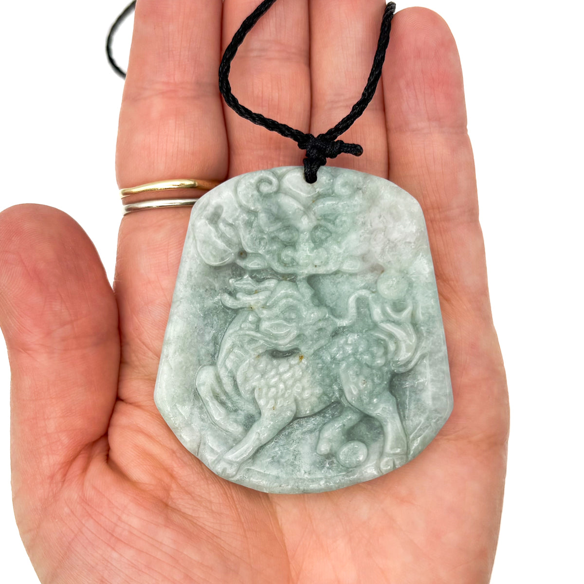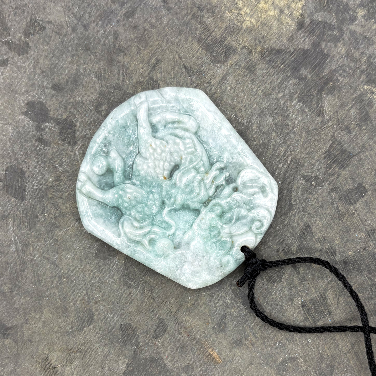 Certified Green Natural Type A Jade Jadeite Carved Kylin Dragon Head Pendant