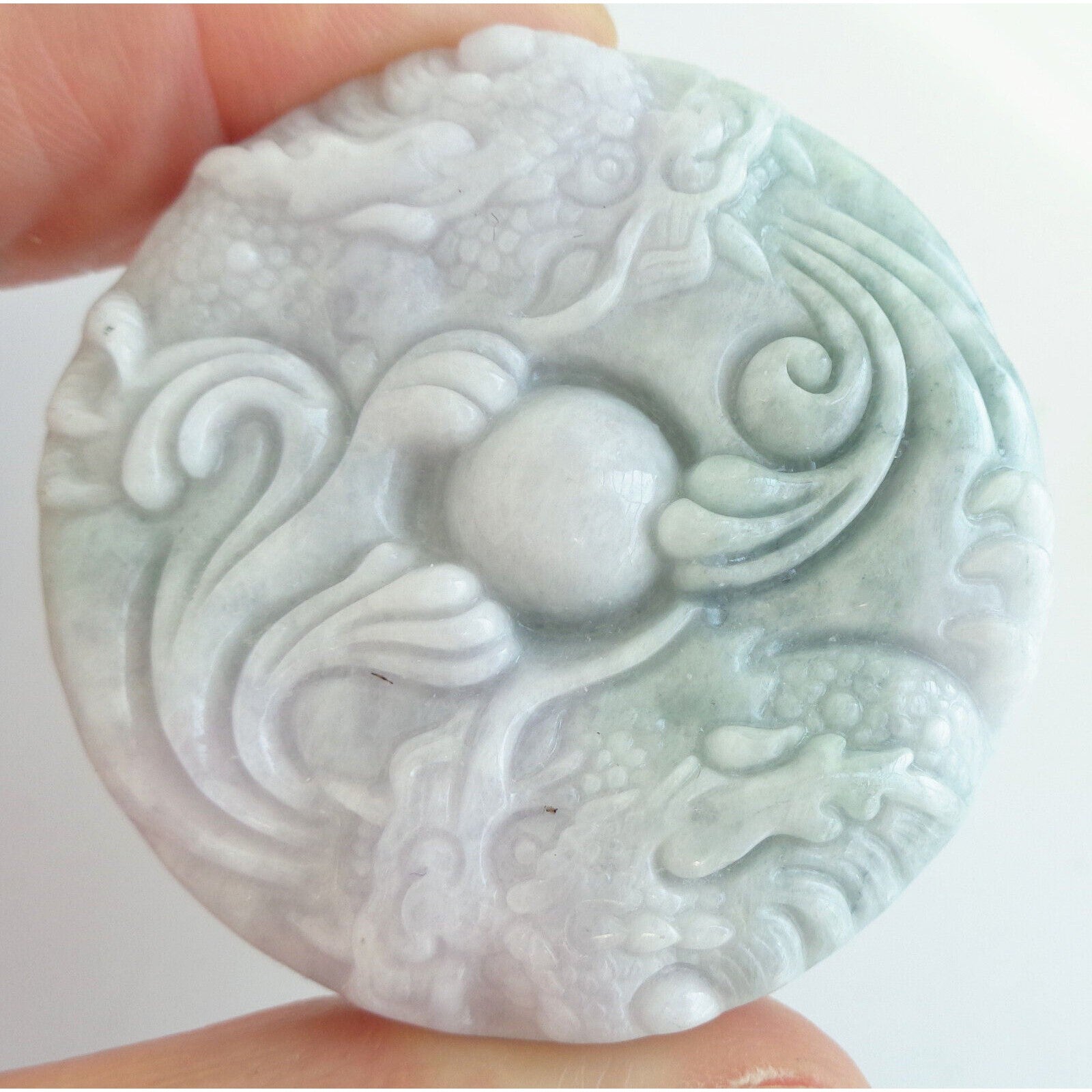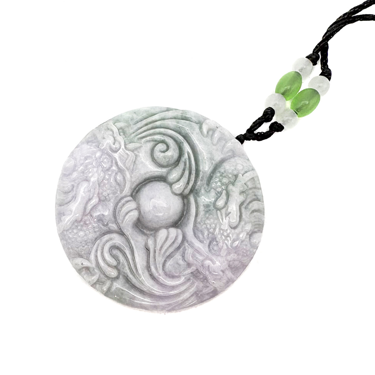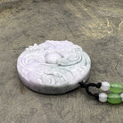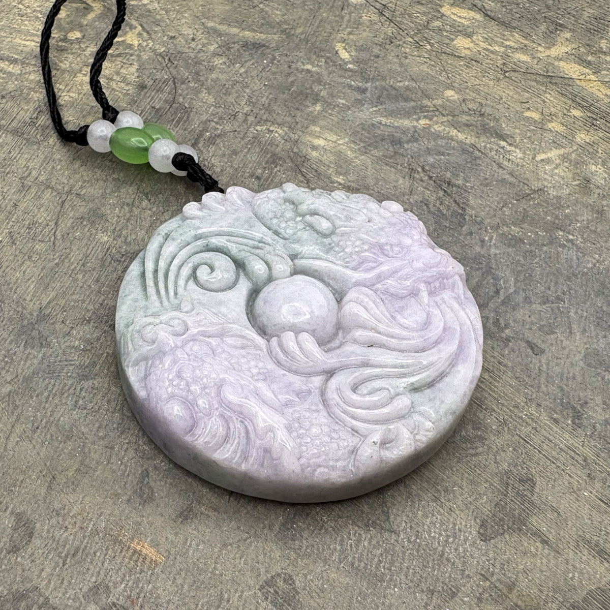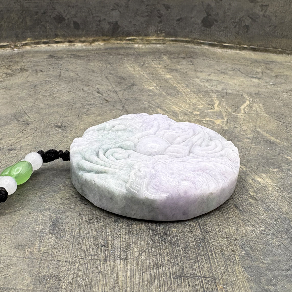 Certified Lavender Green Natural A Jade Jadeite Carved 2 Dragons Bead Pendant