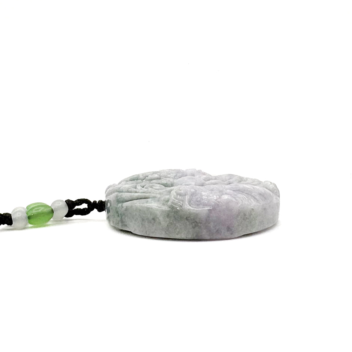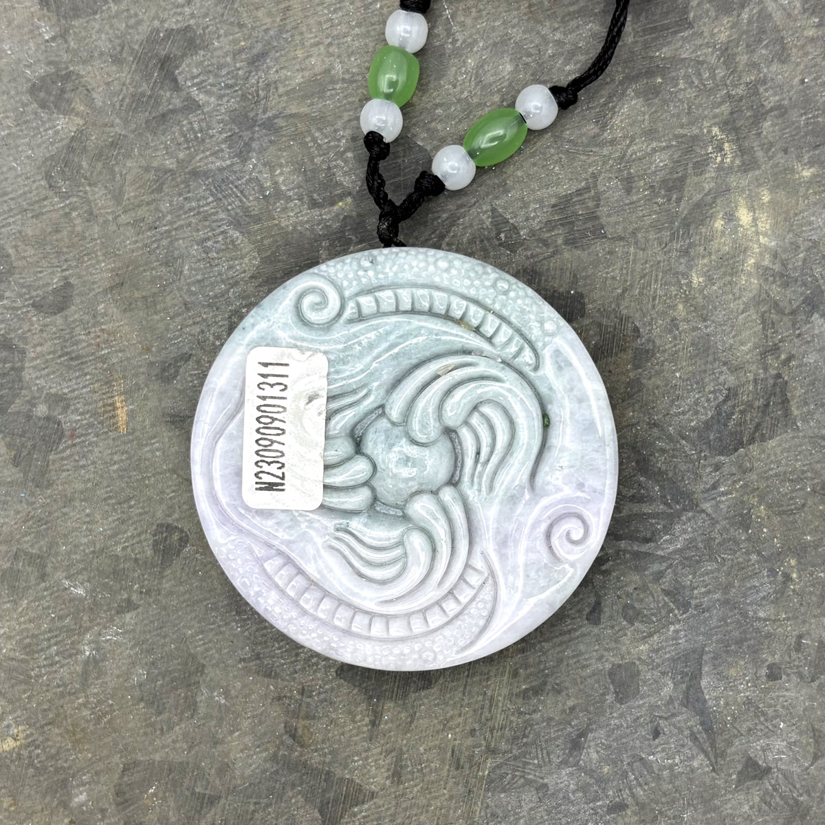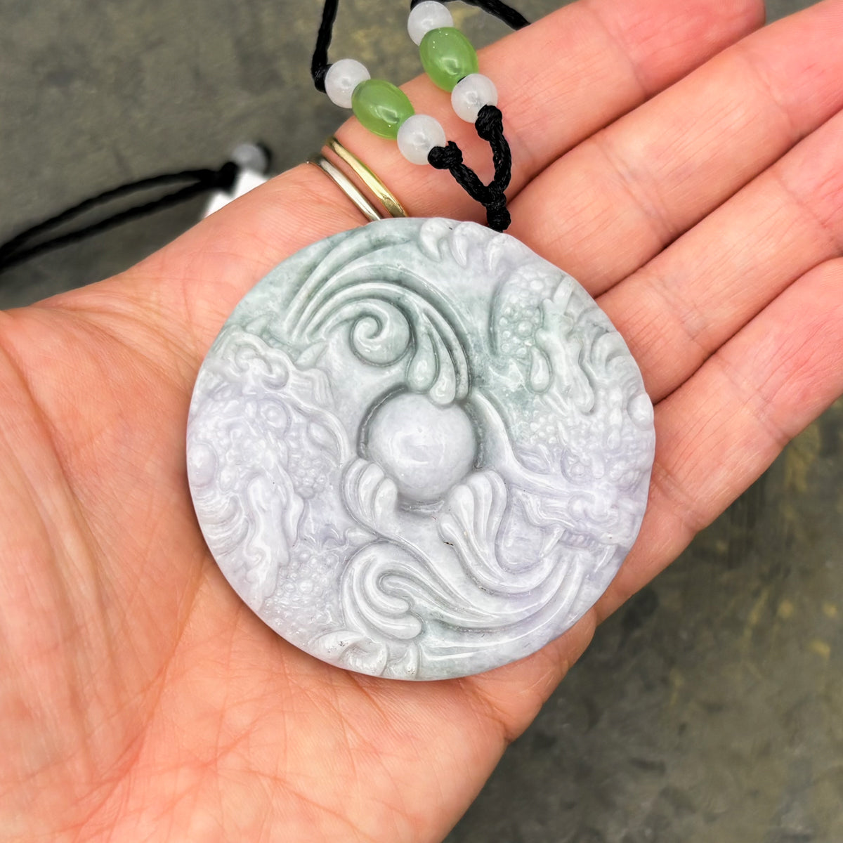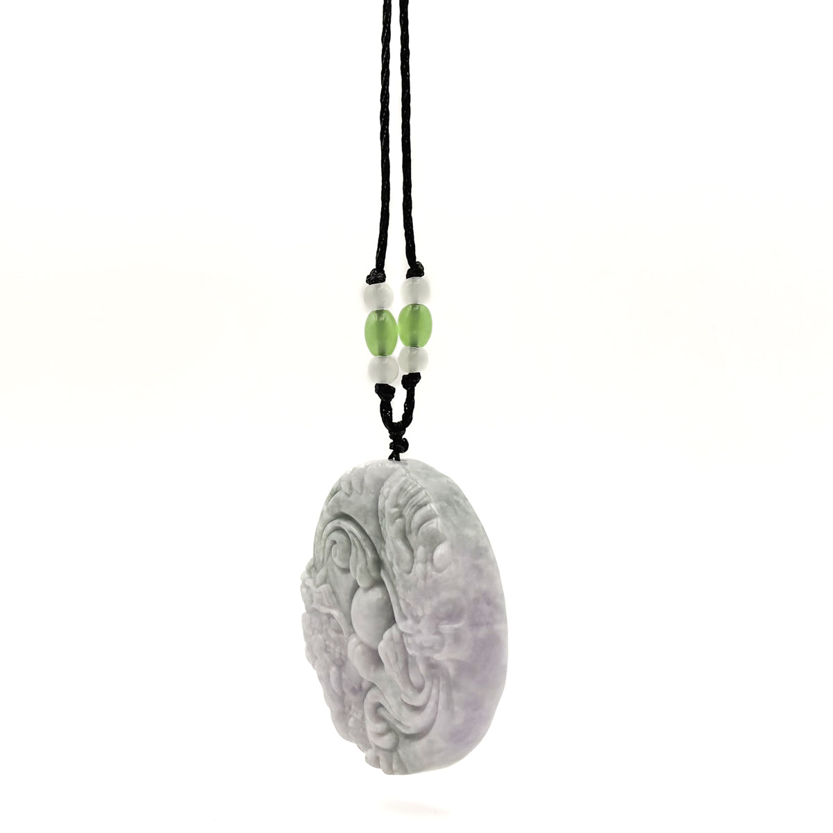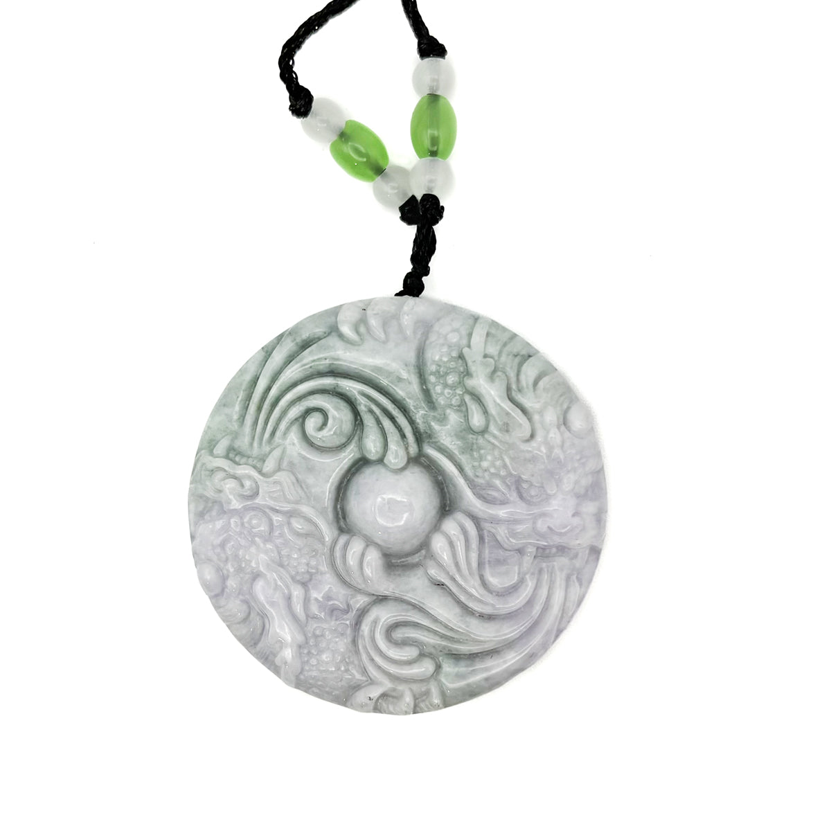 Certified Lavender Green Natural A Jade Jadeite Carved 2 Dragons Bead Pendant