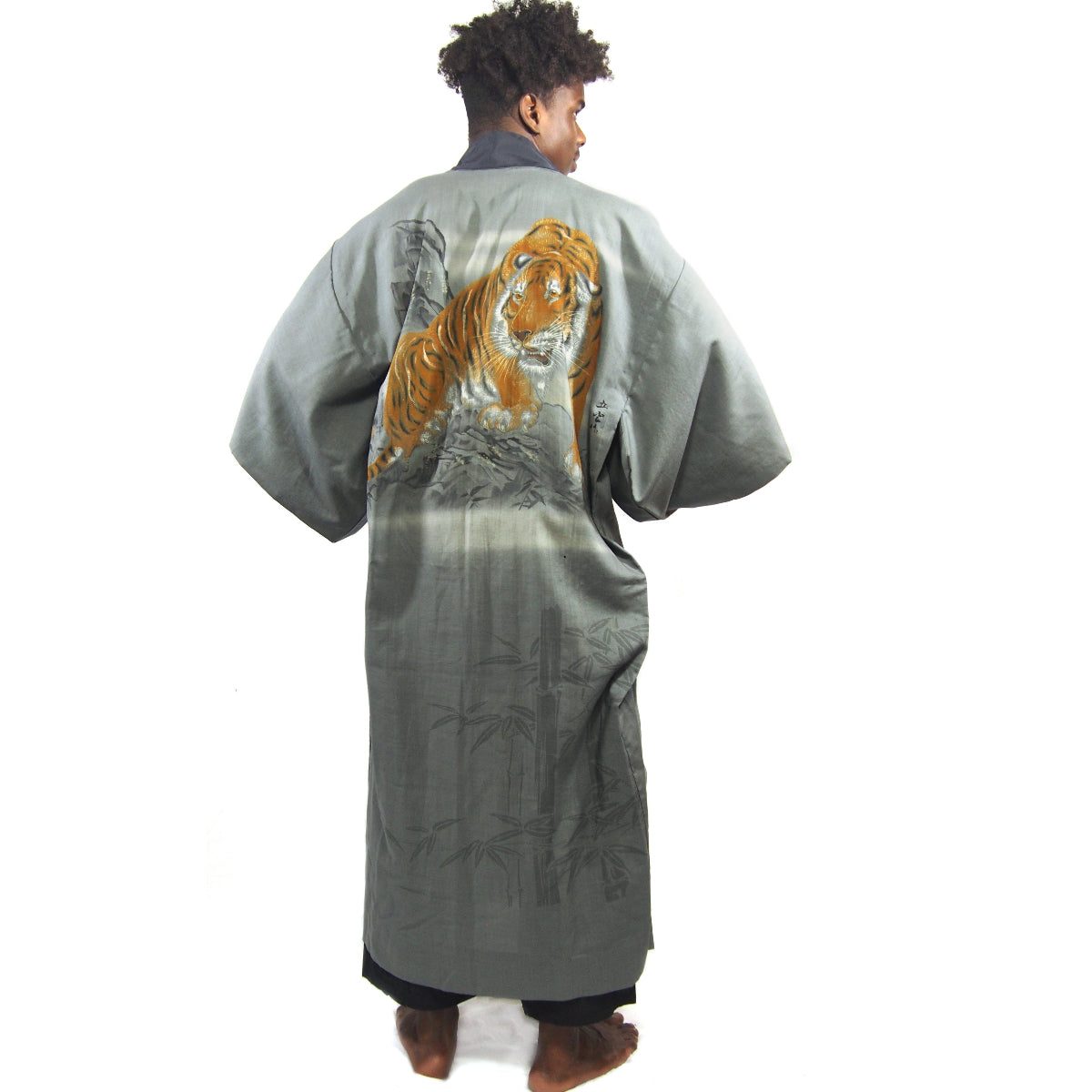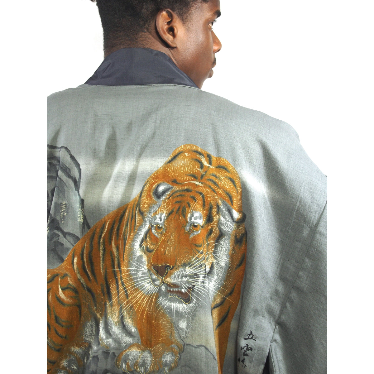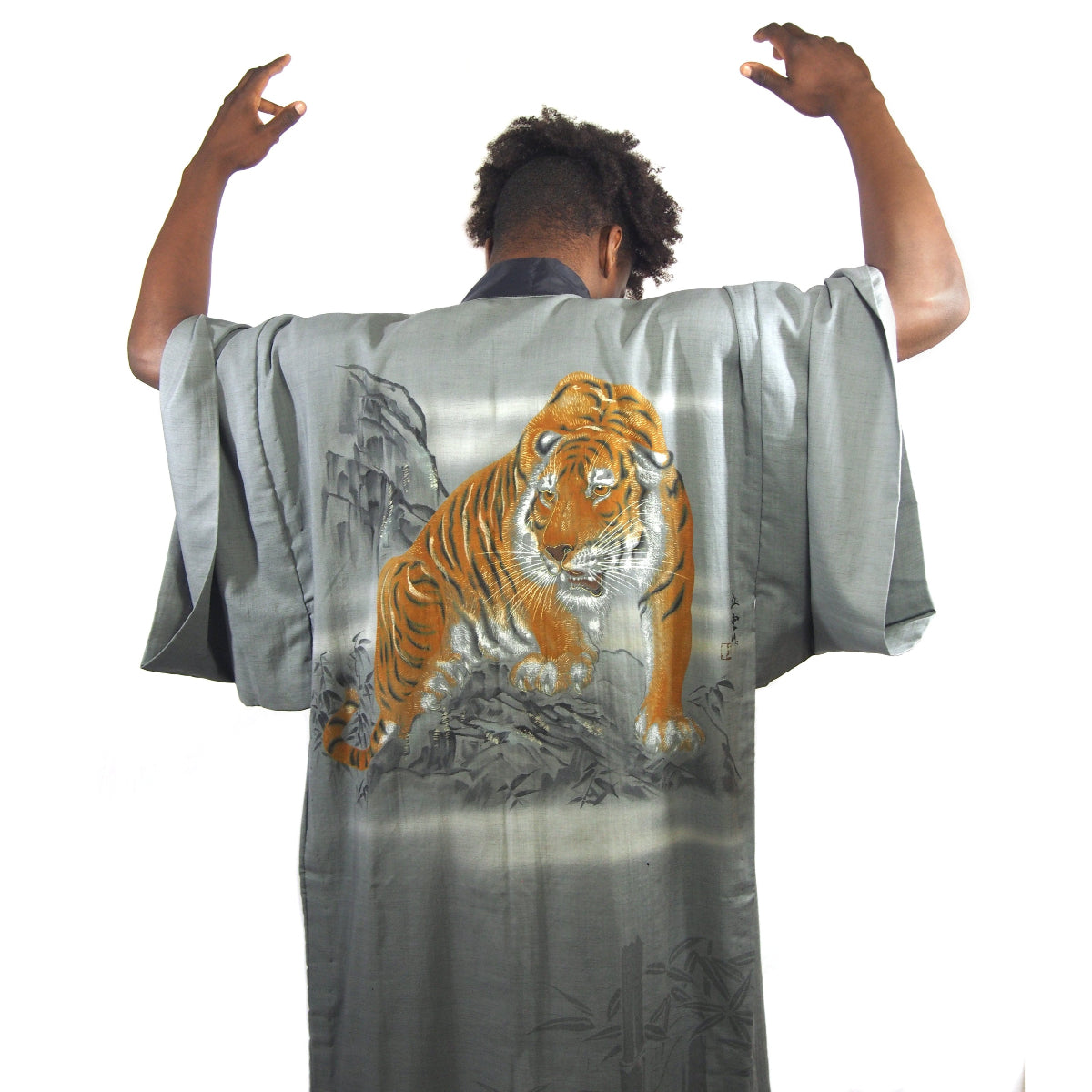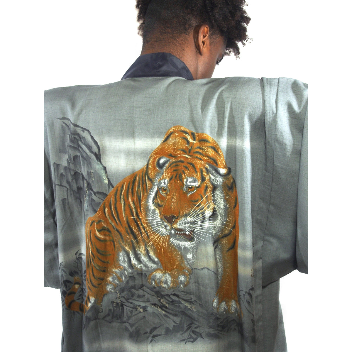 Vintage Silk Hand-Painted Tiger Full Length Kimono