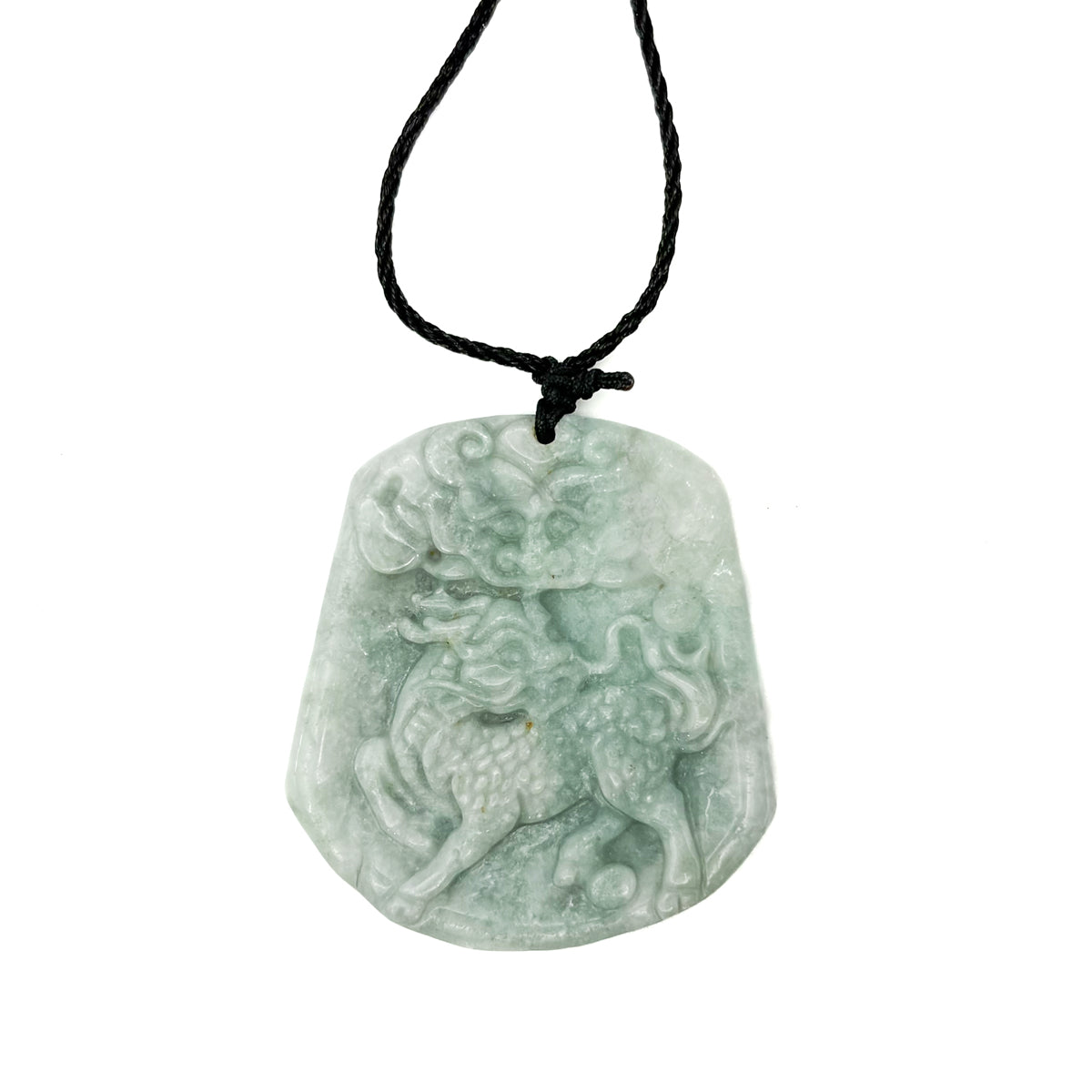Certified Icy Green Natural Type A Jade Jadeite Carved Kylin Ball Pendant