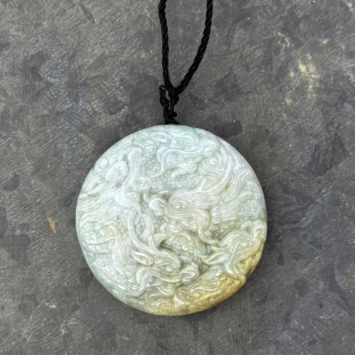 Certified Natural Type A Jadeite Jade Turtle Dragon Buddha Big Pendant
