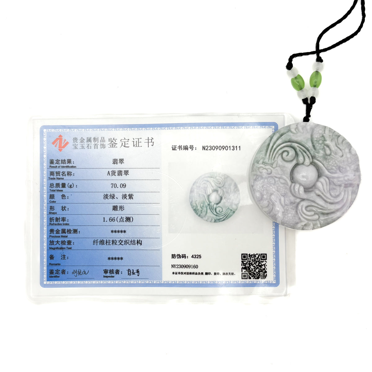 Certified Natural Type A Lavender Green Jadeite Jade Peony Phoenix Pendant