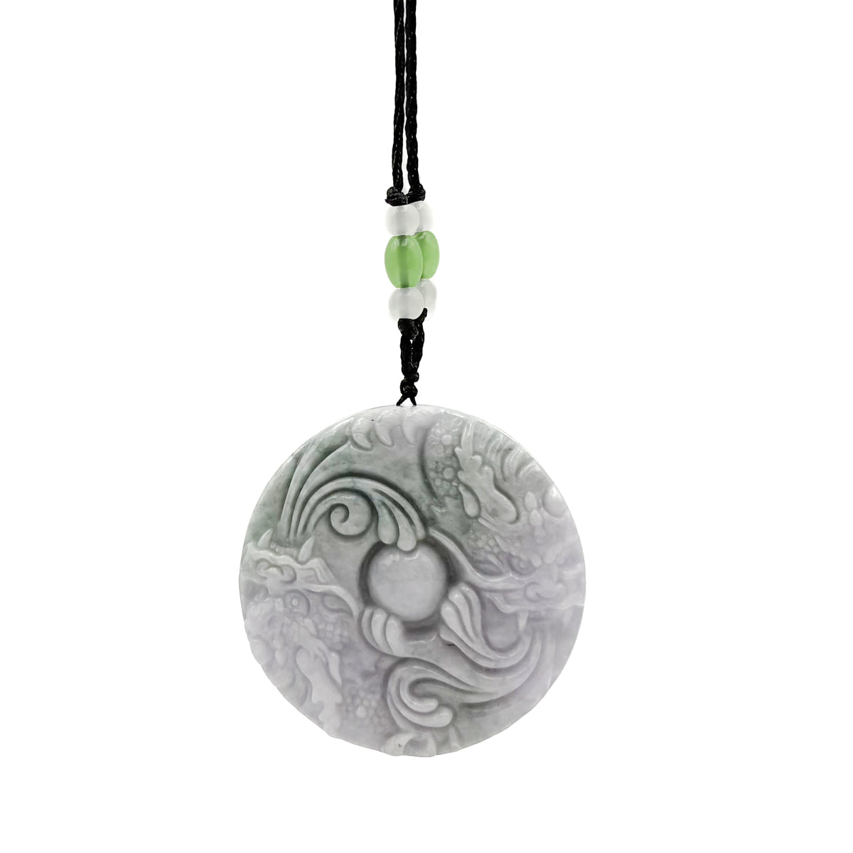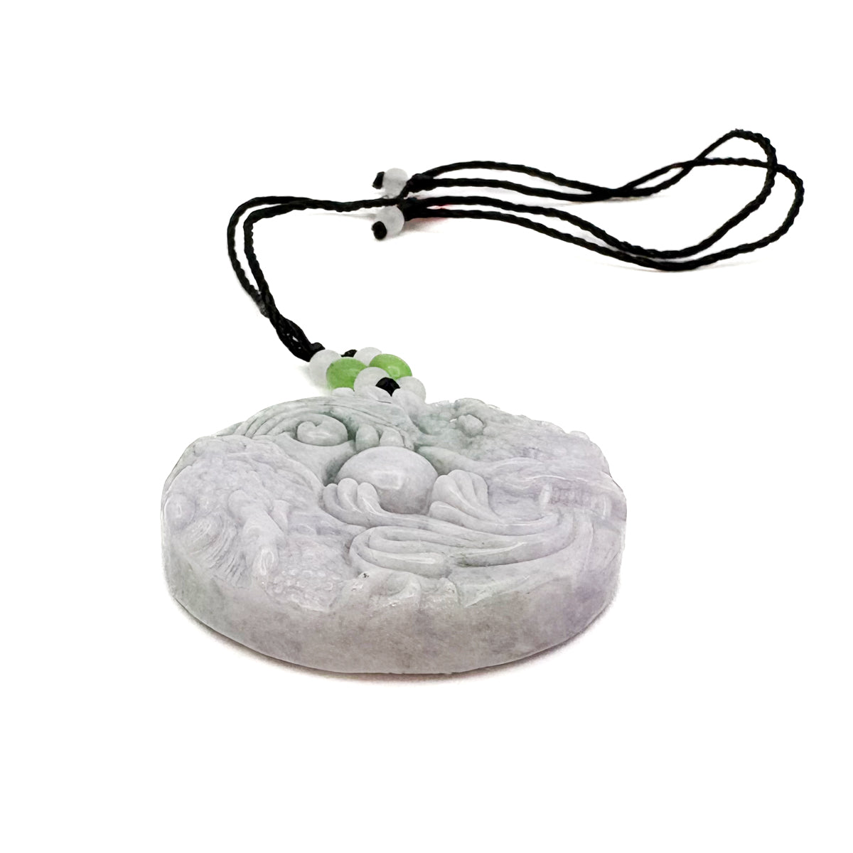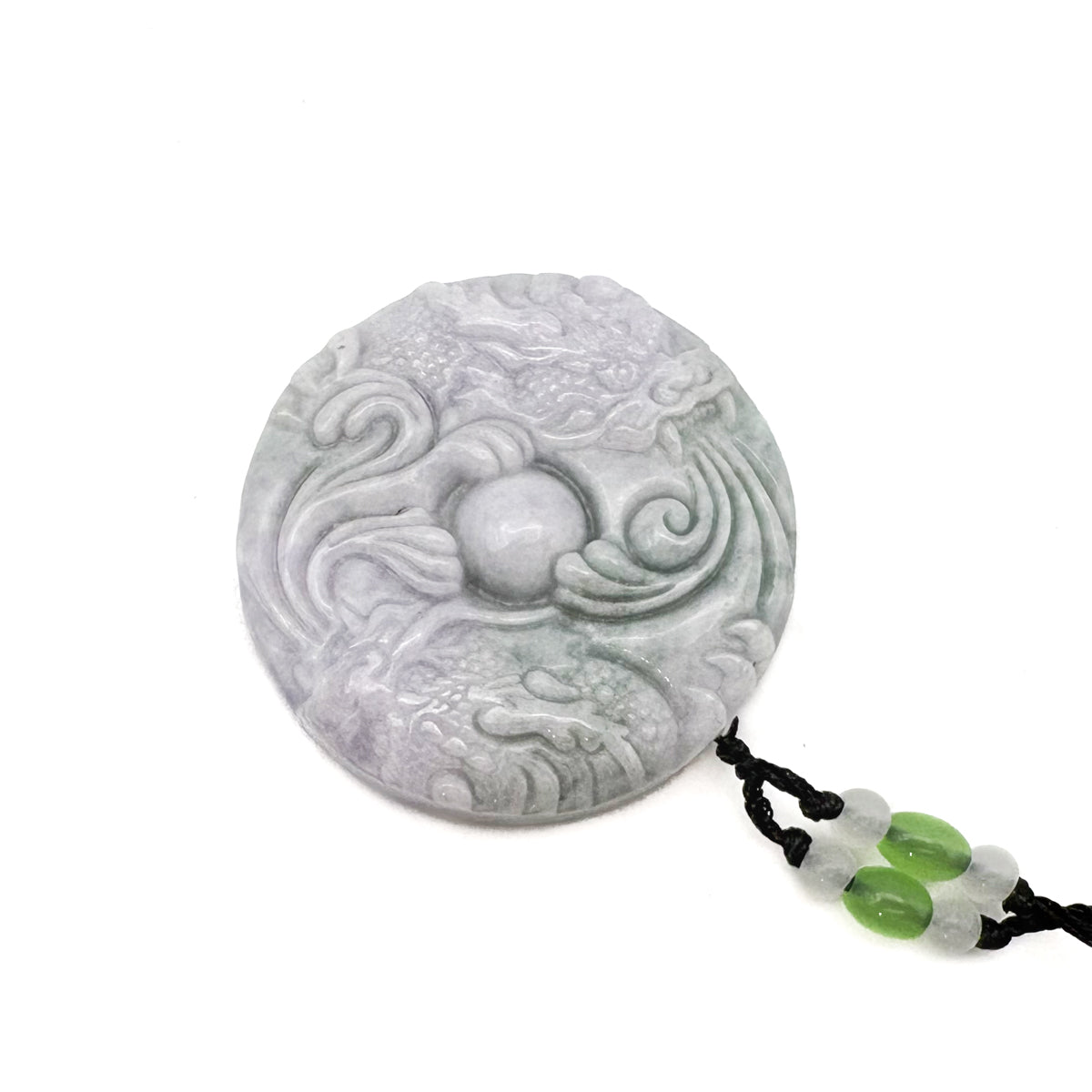 Certified Lavender Green Natural A Jade Jadeite Carved 2 Dragons Bead Pendant