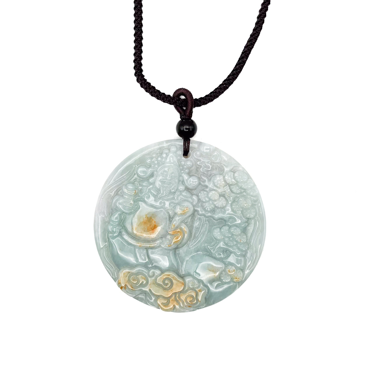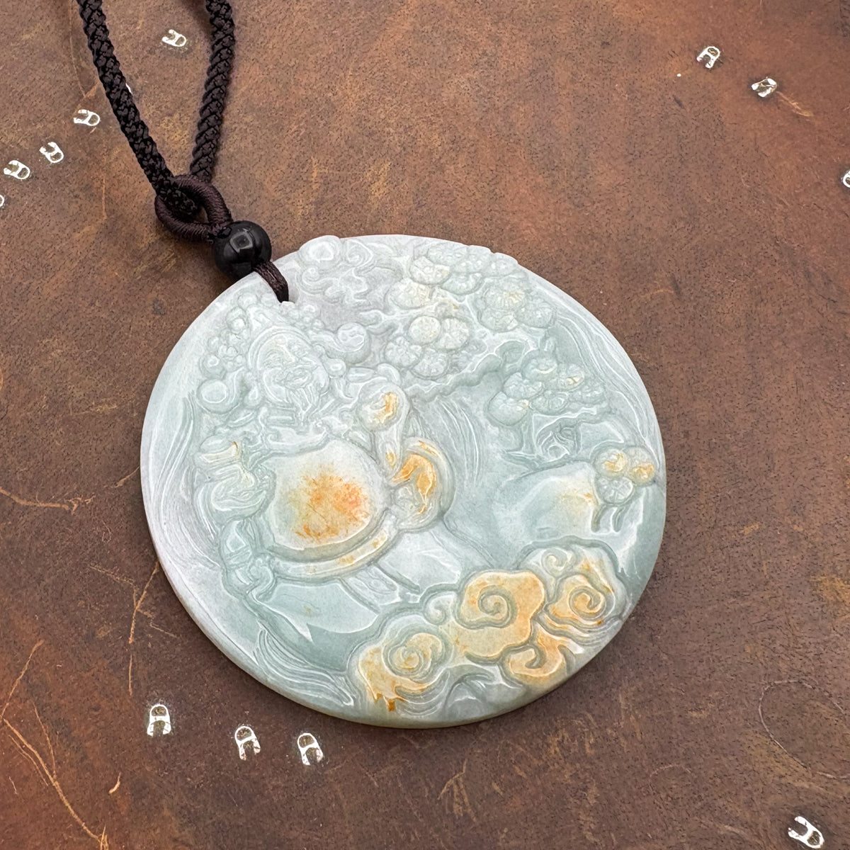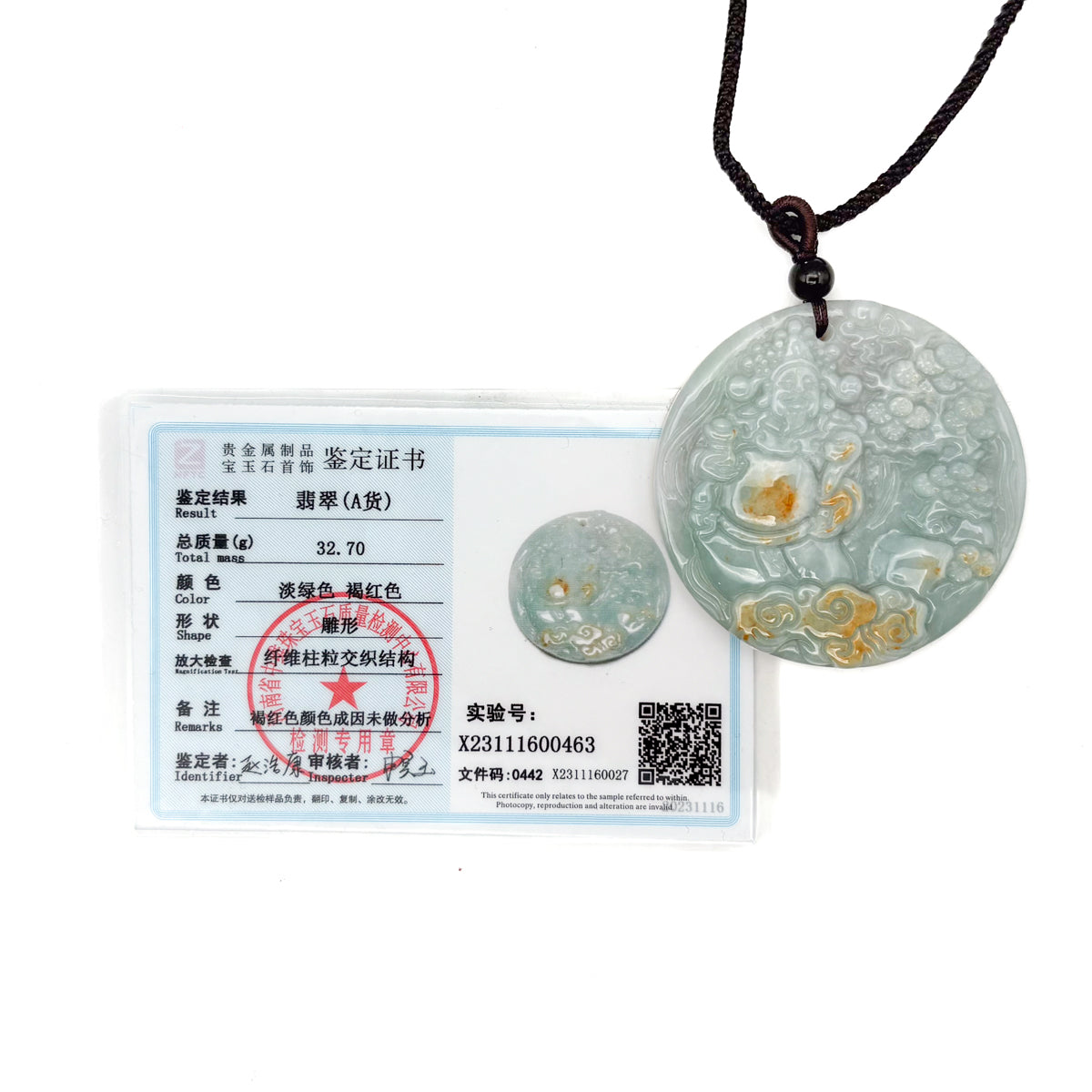 Certified Grade A Brown Green Natural Jadeite Jade Pendant Ruyi Money God Necklace