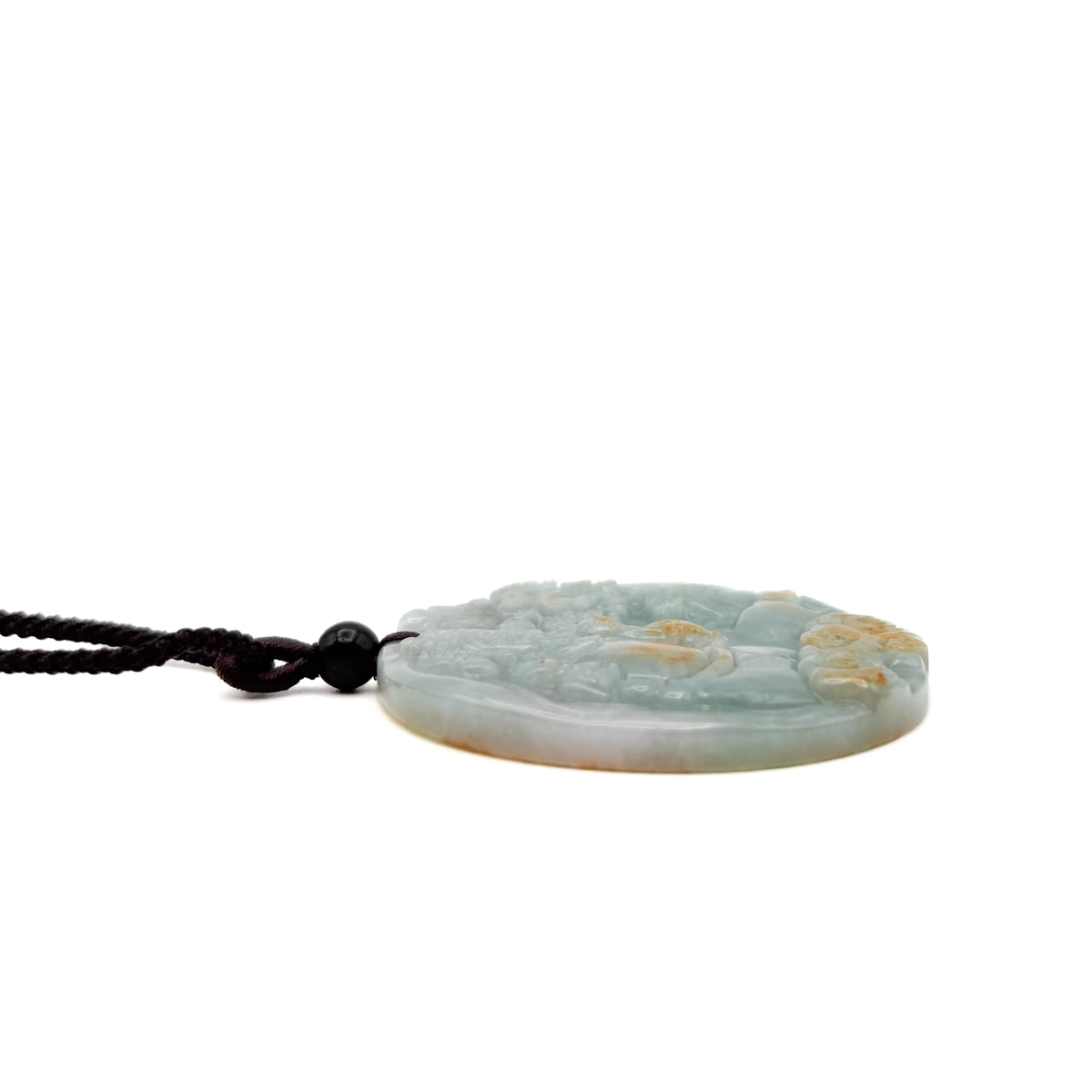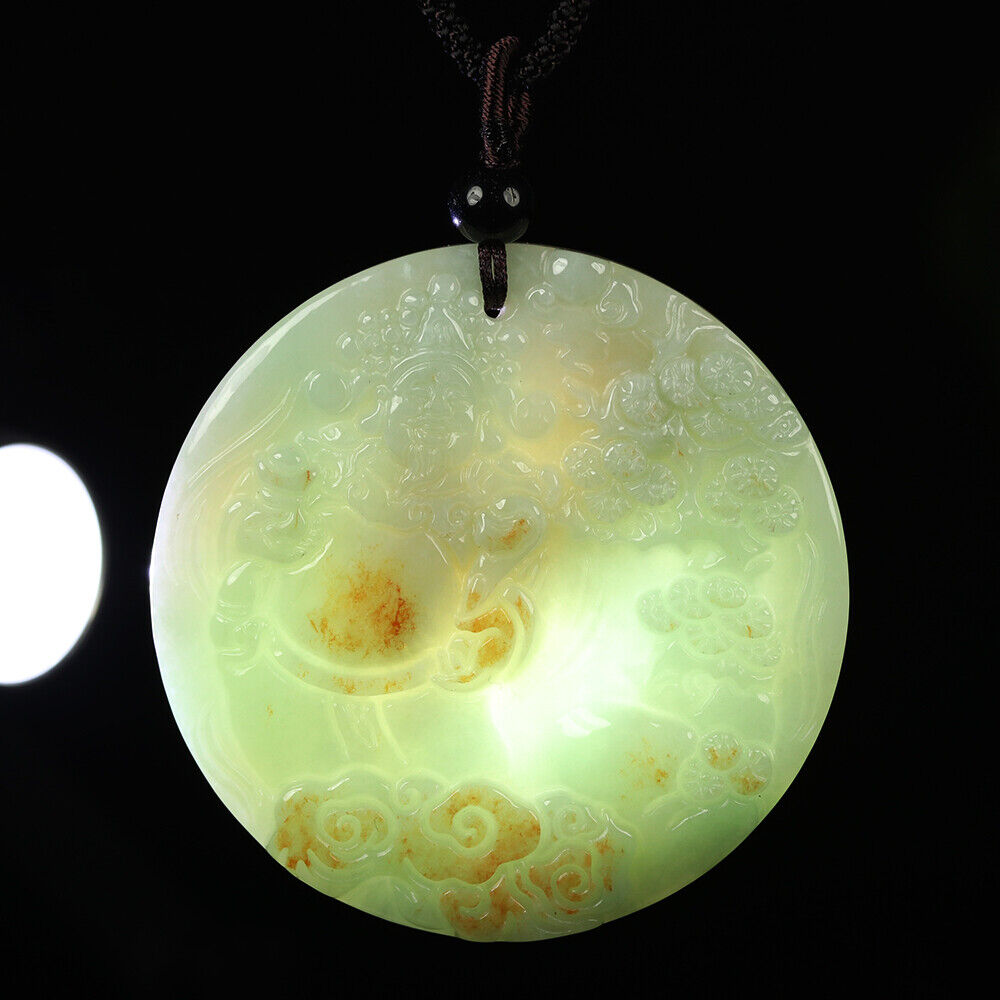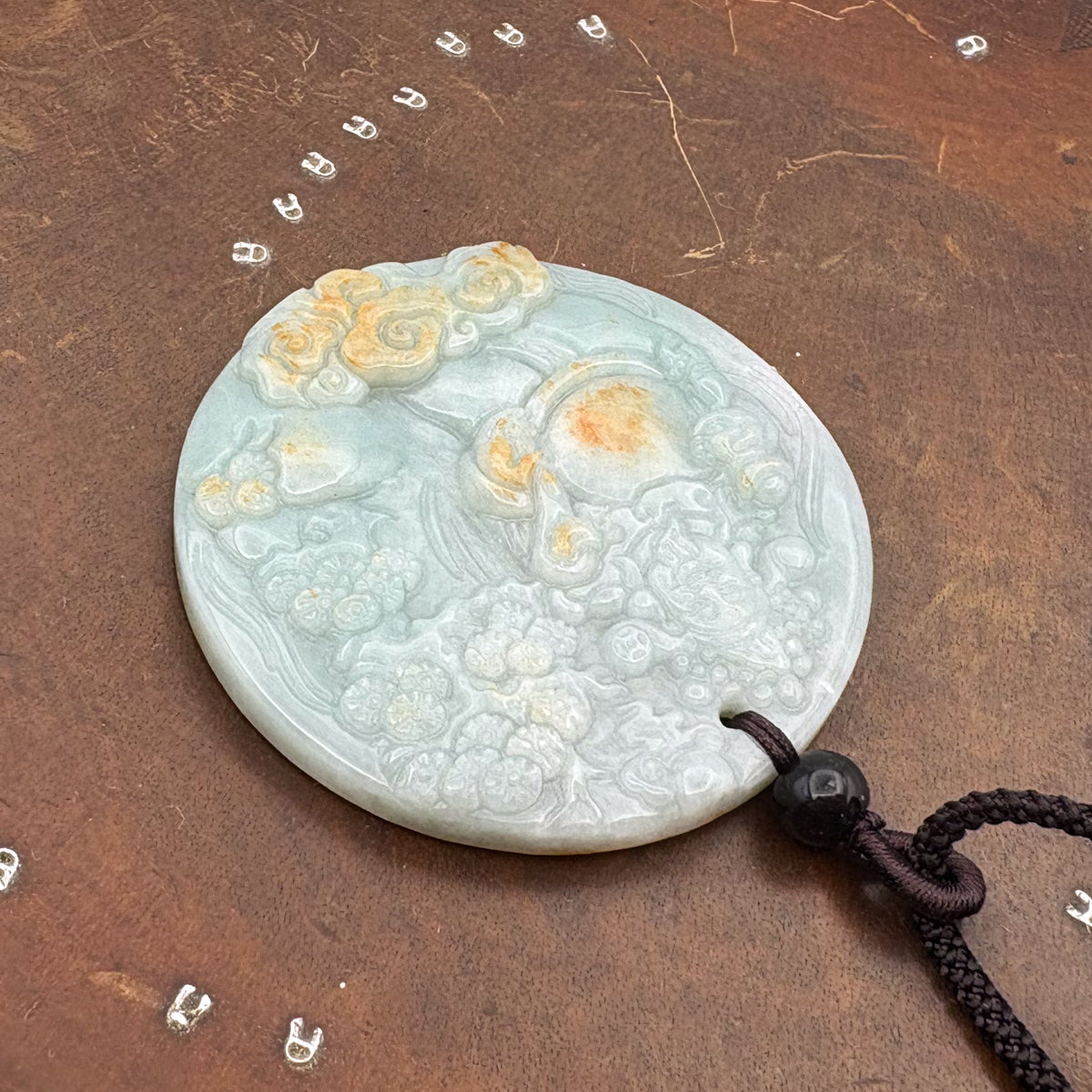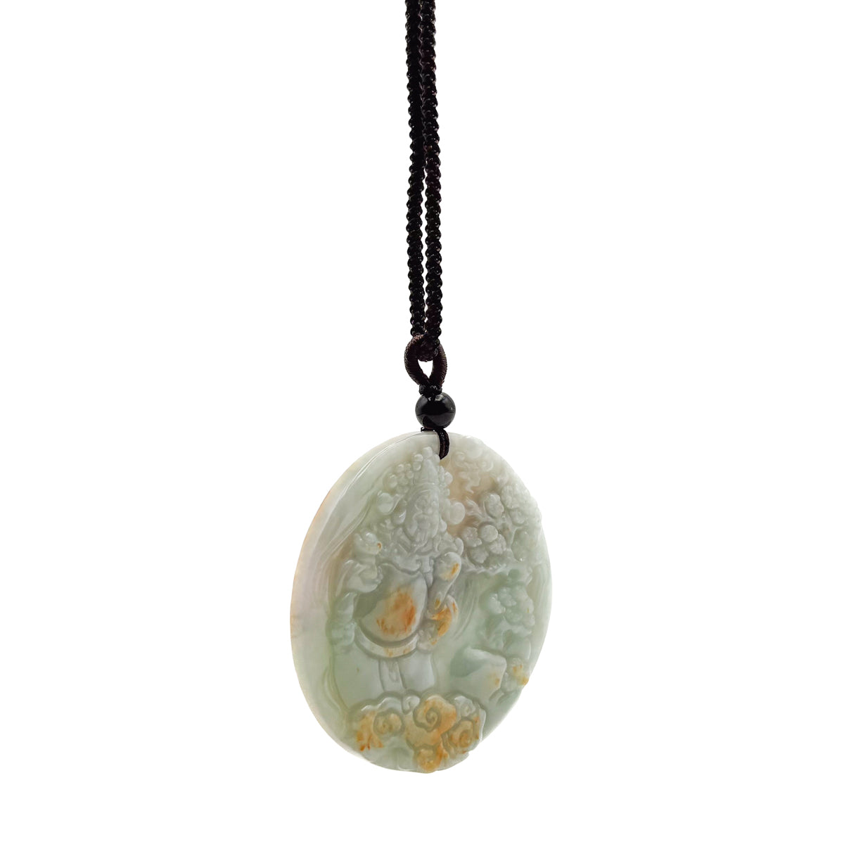 Certified Grade A Brown Green Natural Jadeite Jade Pendant Ruyi Money God Necklace