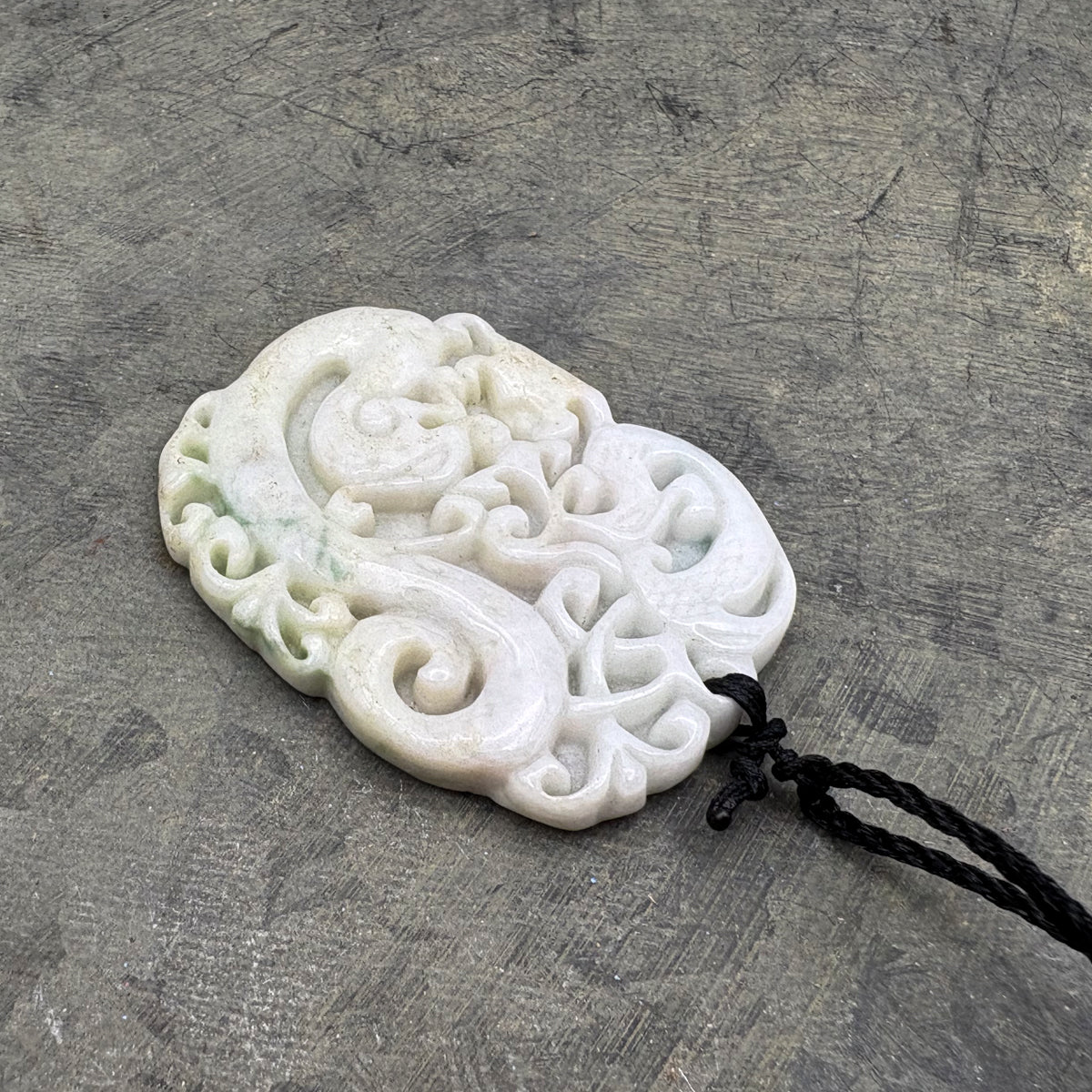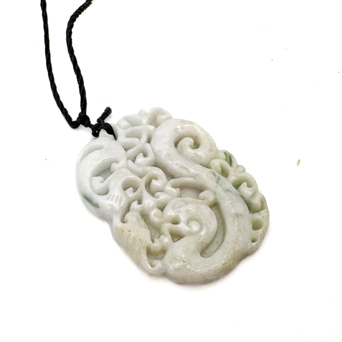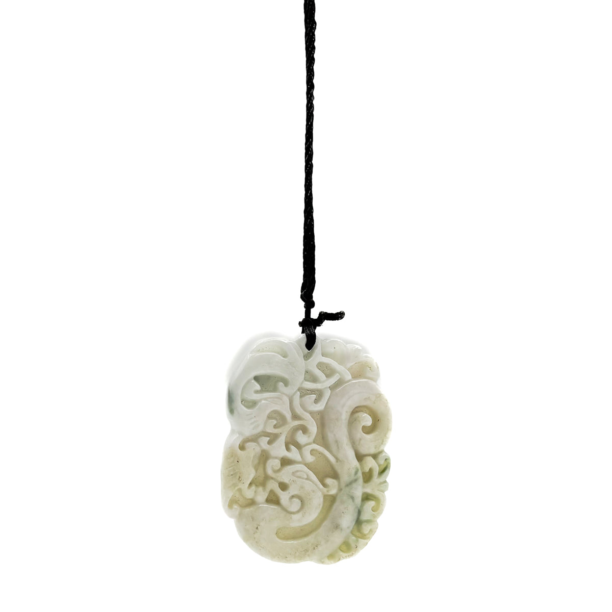 Certified Green Lavender Natural Type A Jadeite Carved Dragon Phoenix Pendant Necklace