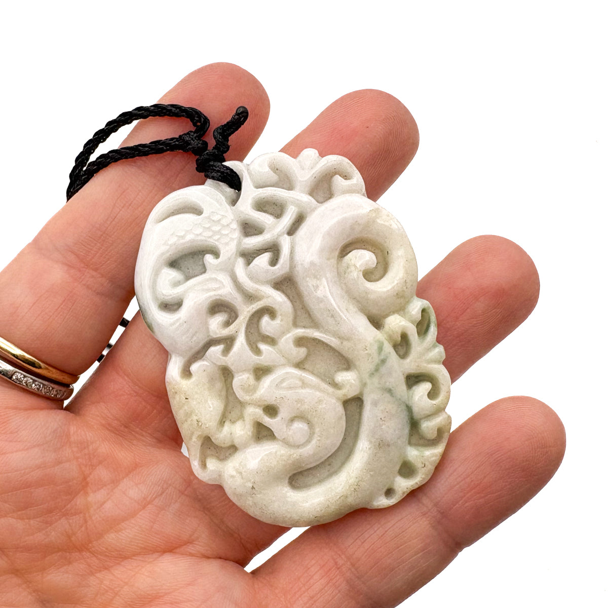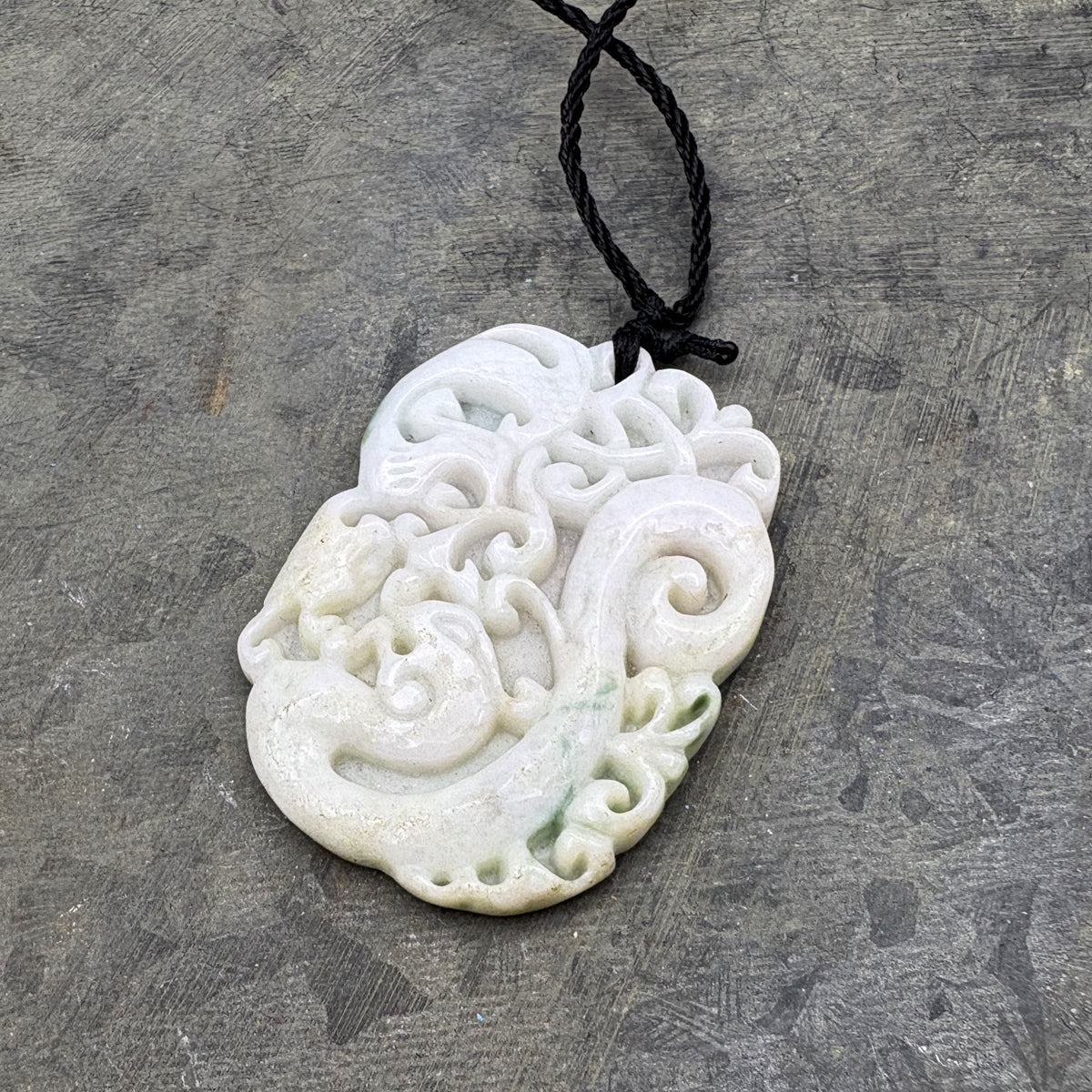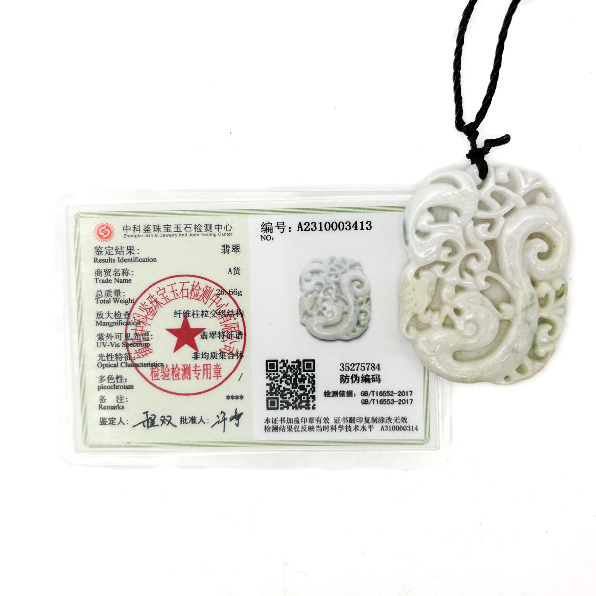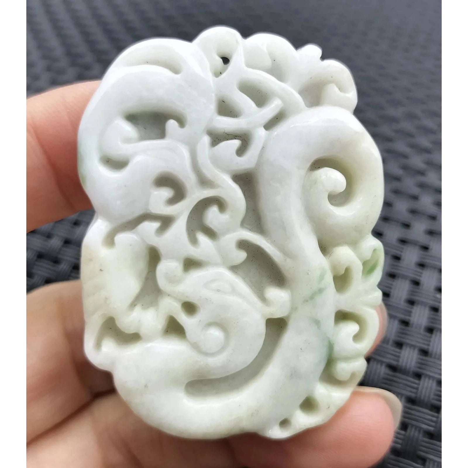 Certified Green Lavender Natural Type A Jadeite Carved Dragon Phoenix Pendant Necklace