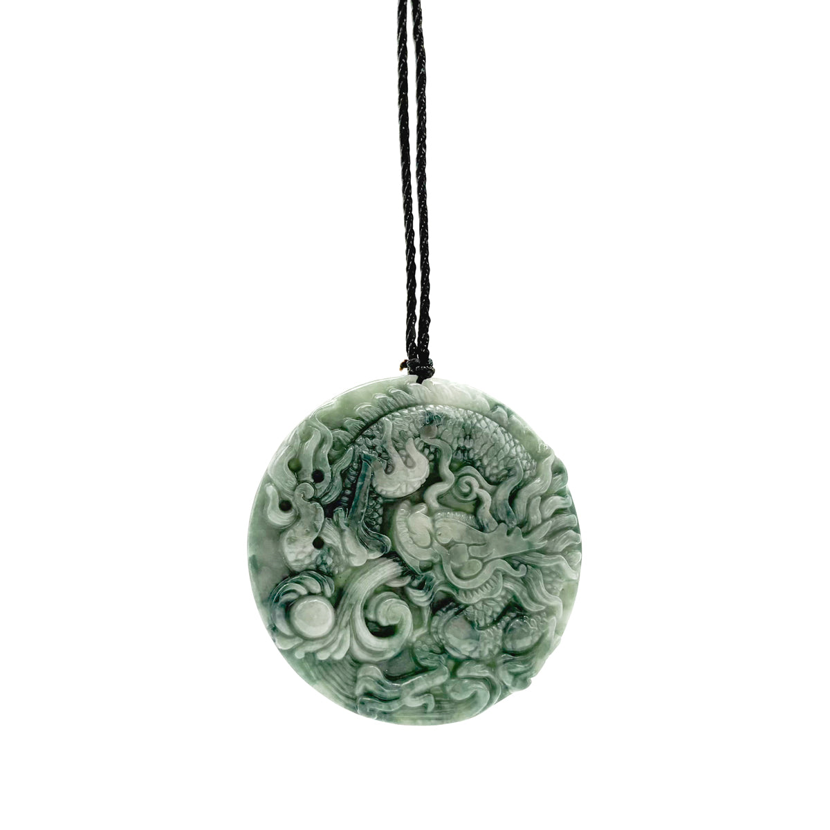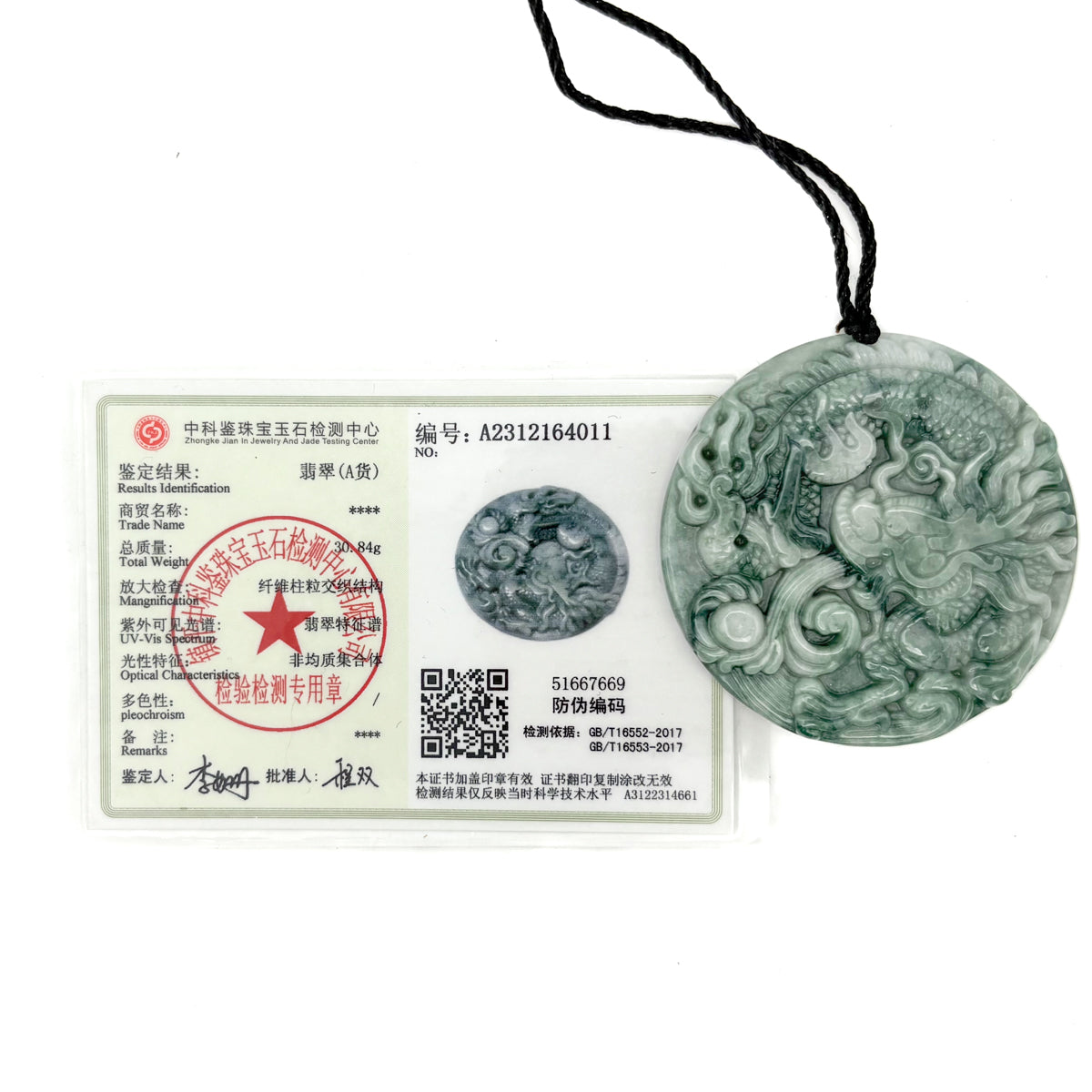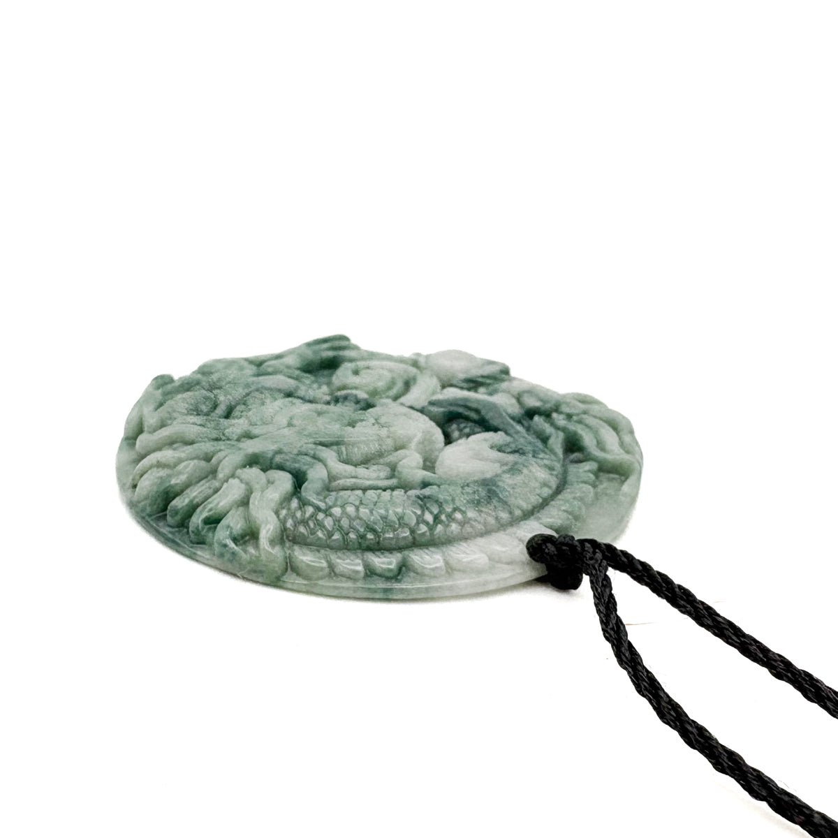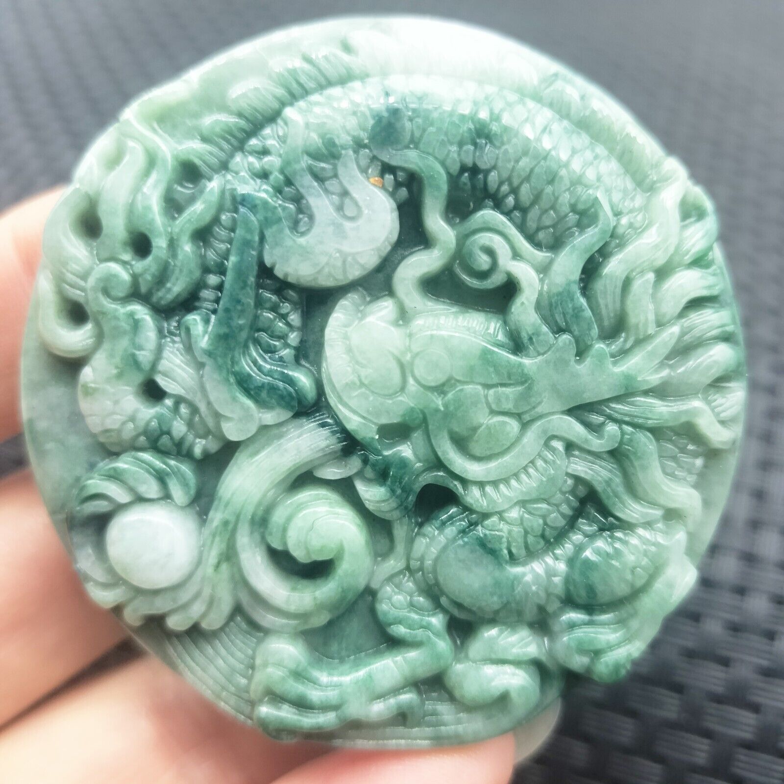 Certified Green Natural Type A Jade Jadeite Carved Dragon Bead Pendant