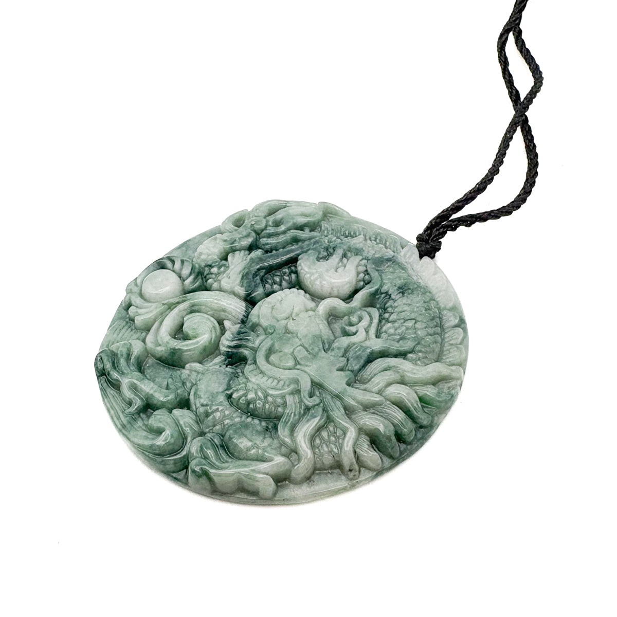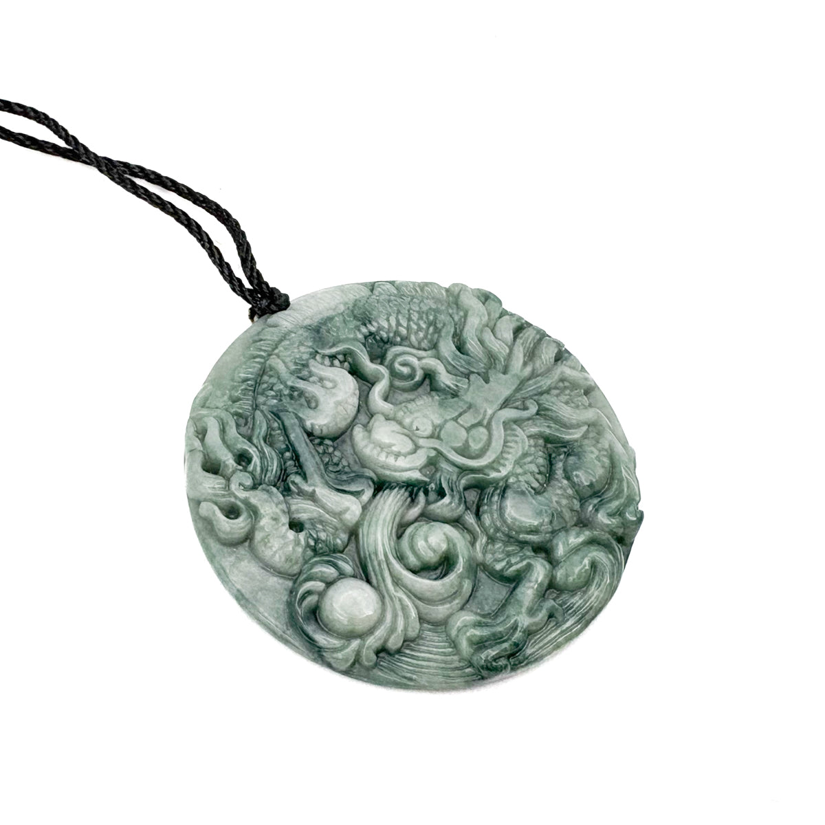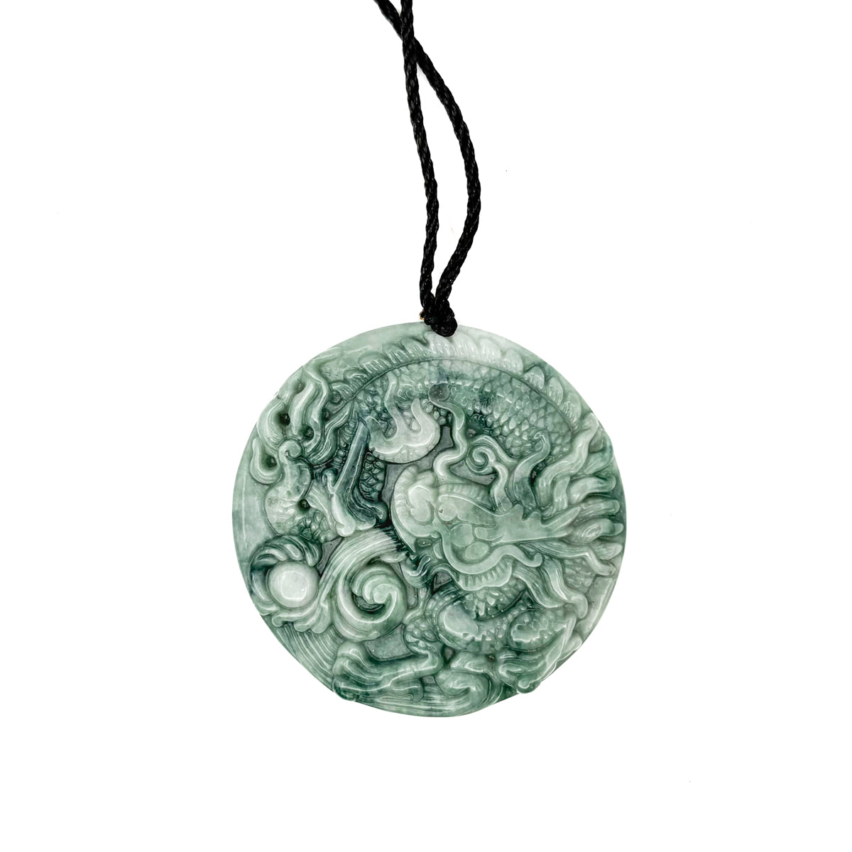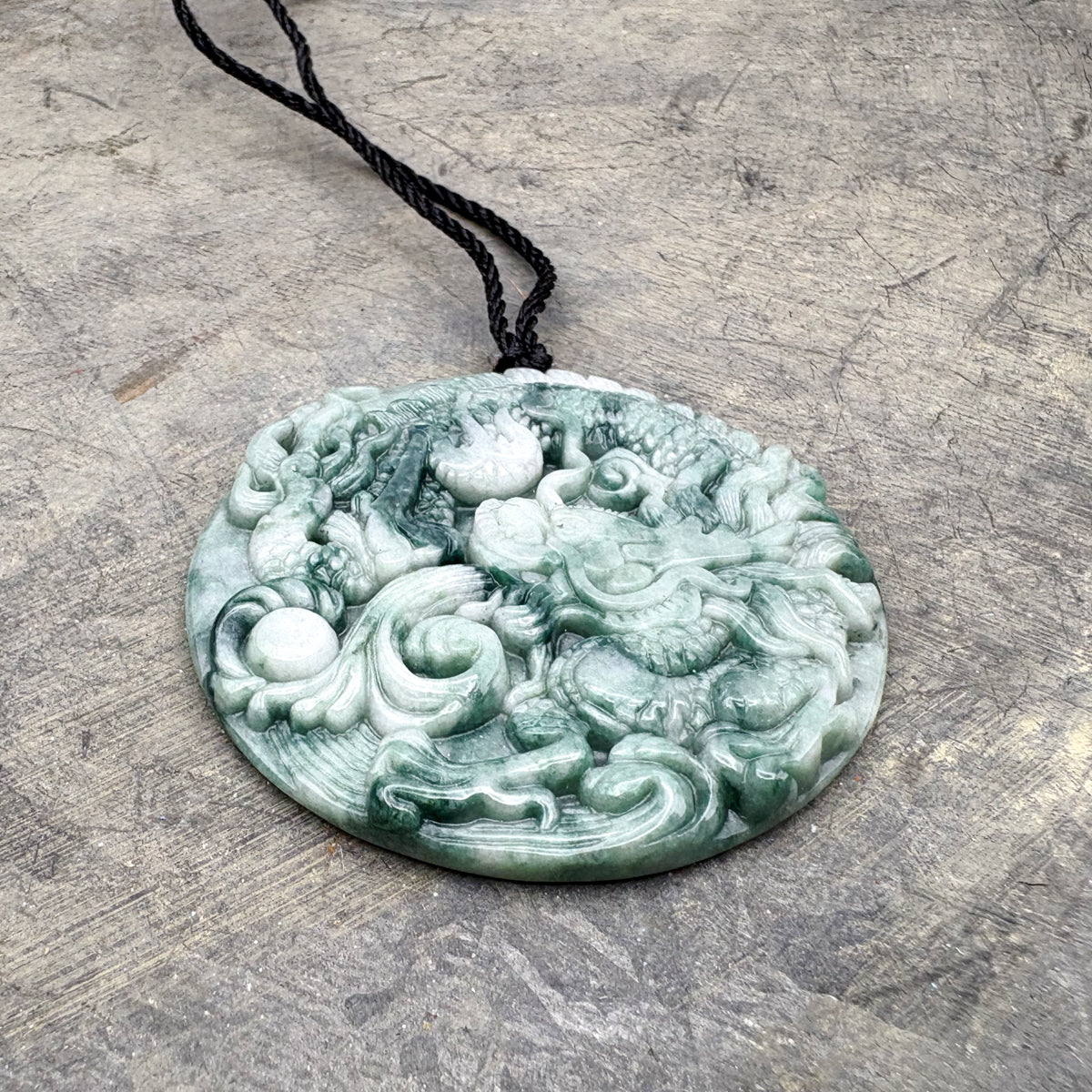 Certified Green Natural Type A Jade Jadeite Carved Dragon Bead Pendant