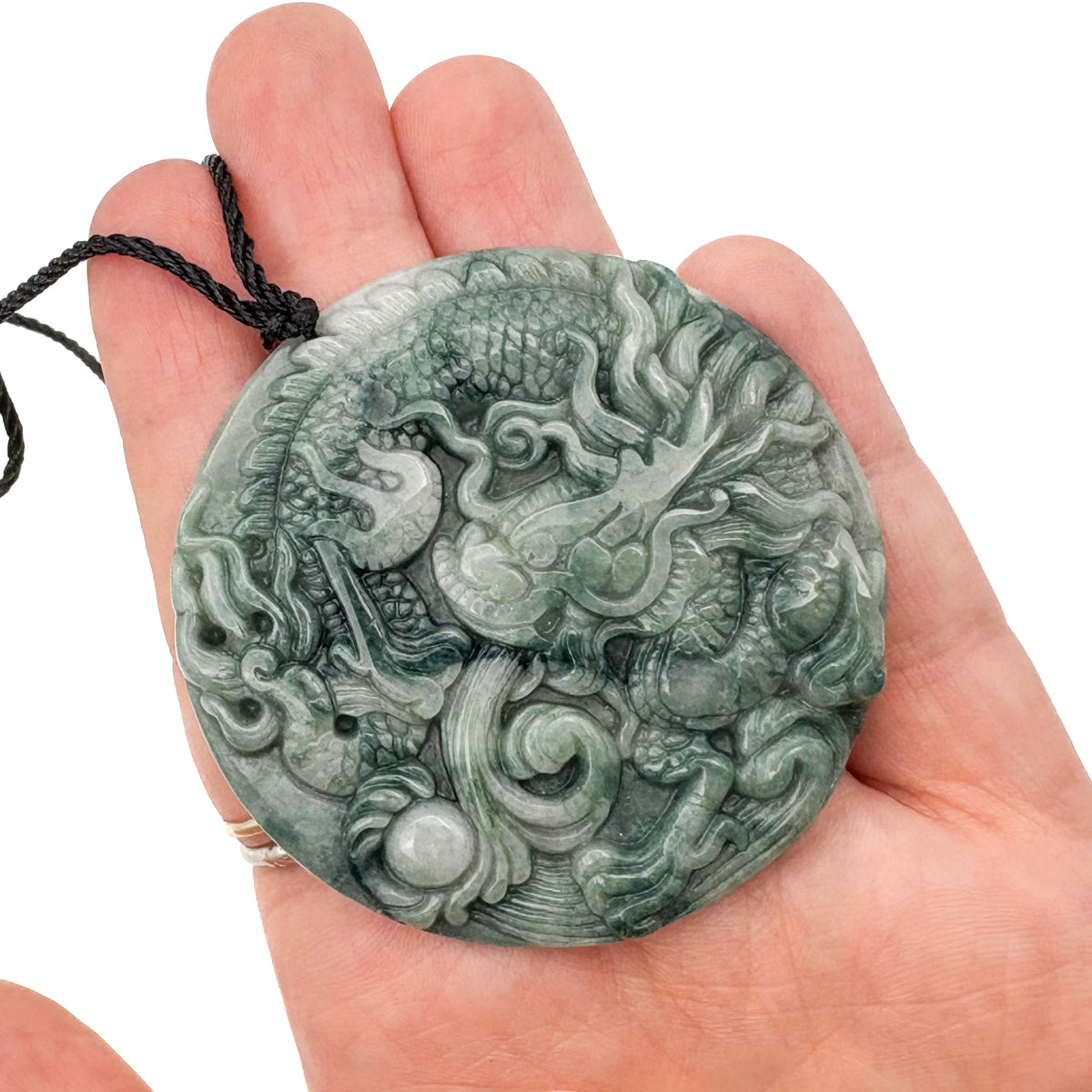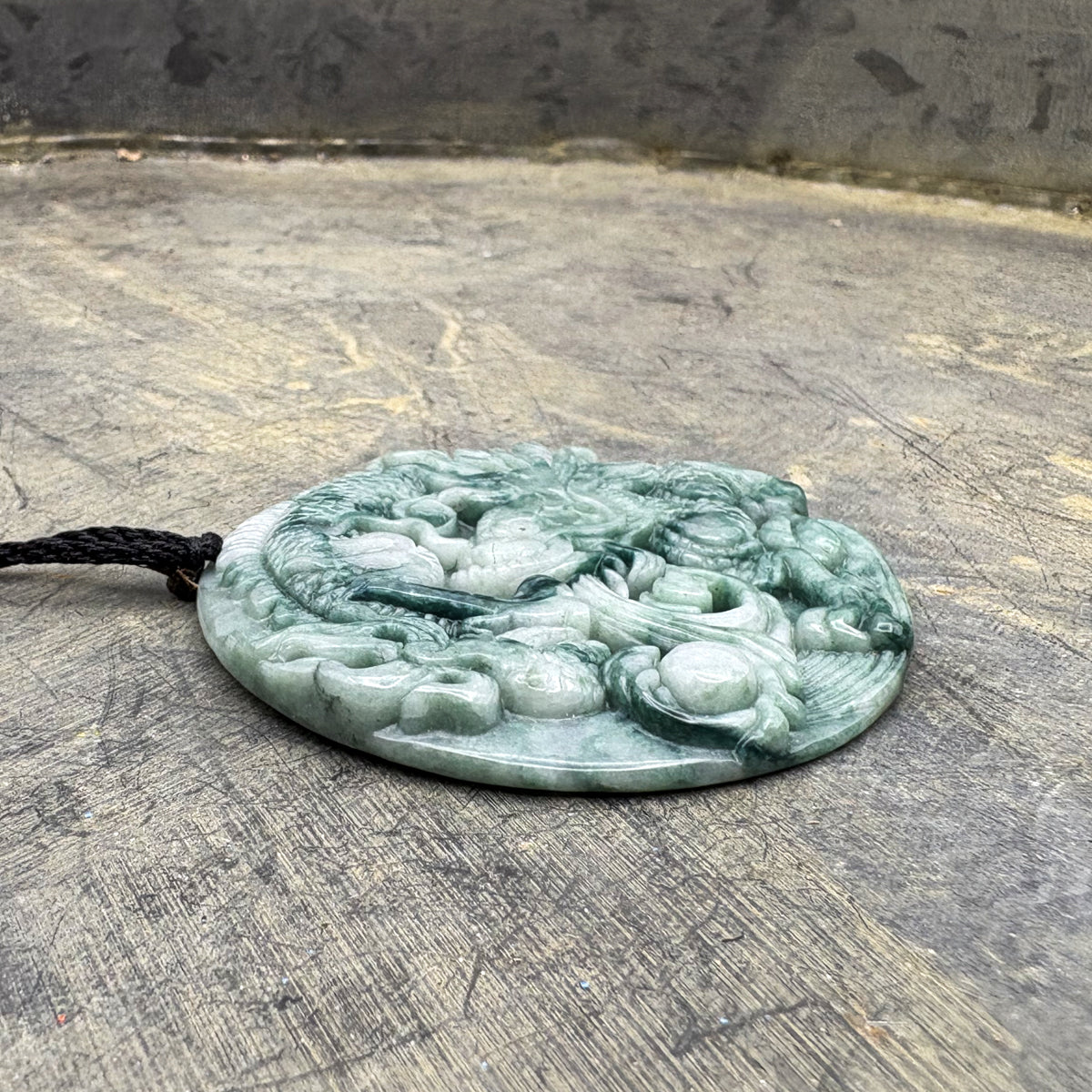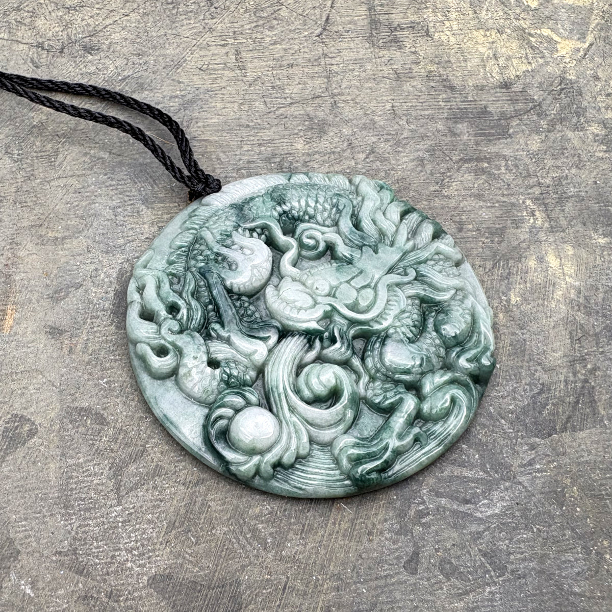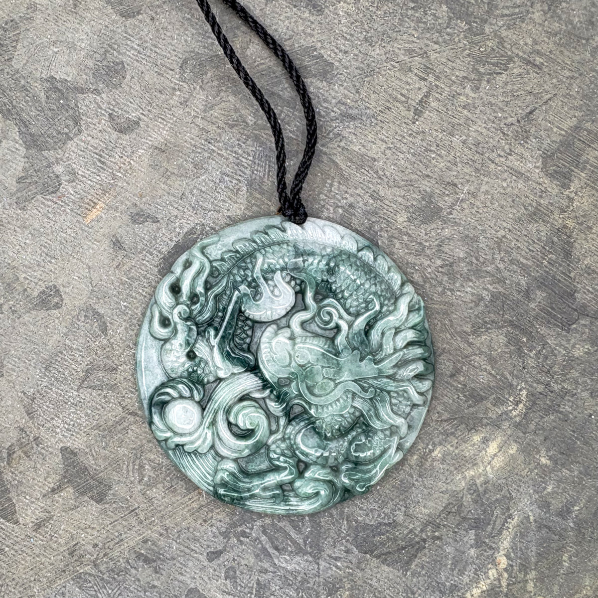 Certified Green Natural Type A Jade Jadeite Carved Dragon Bead Pendant