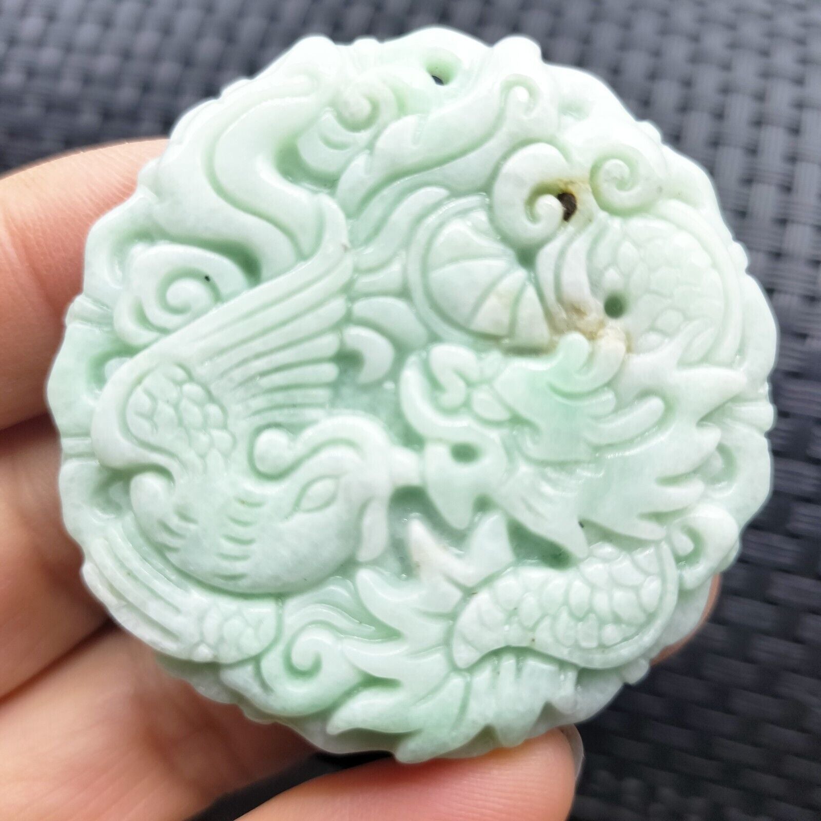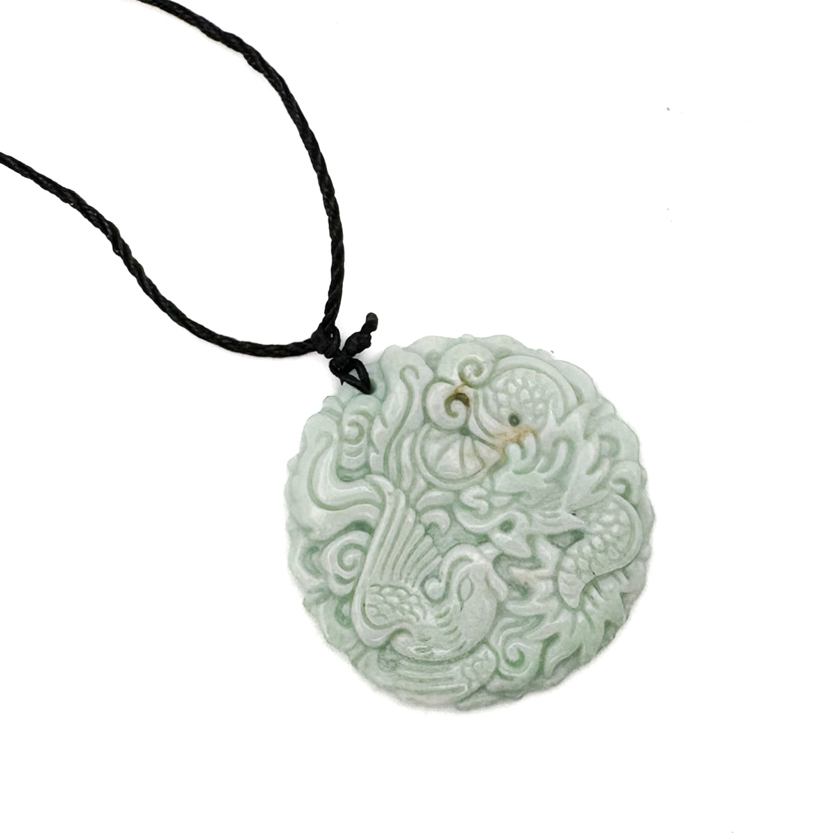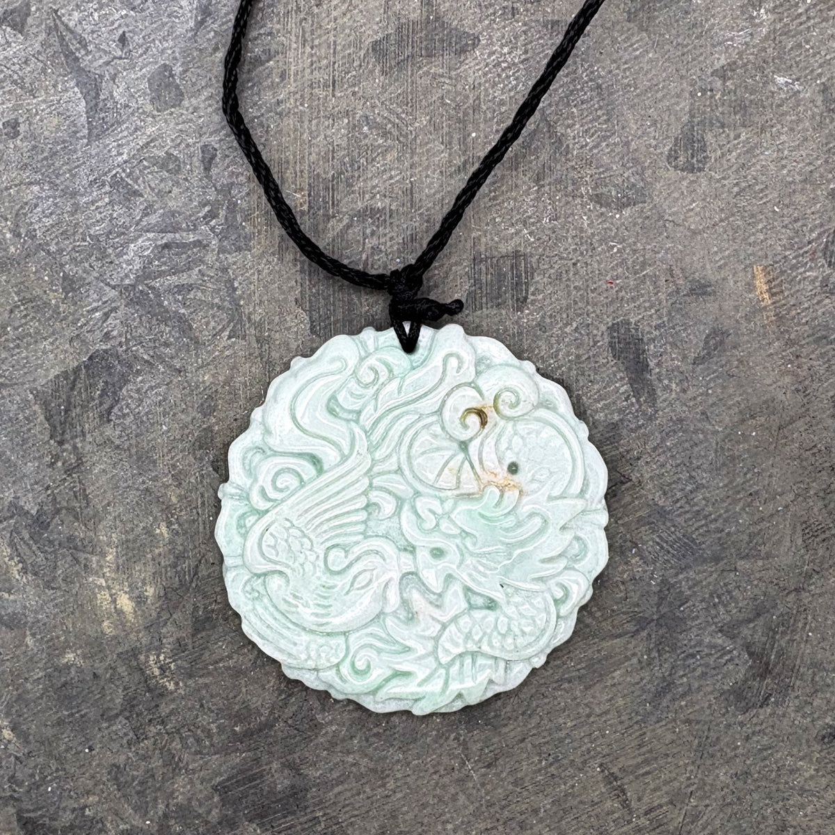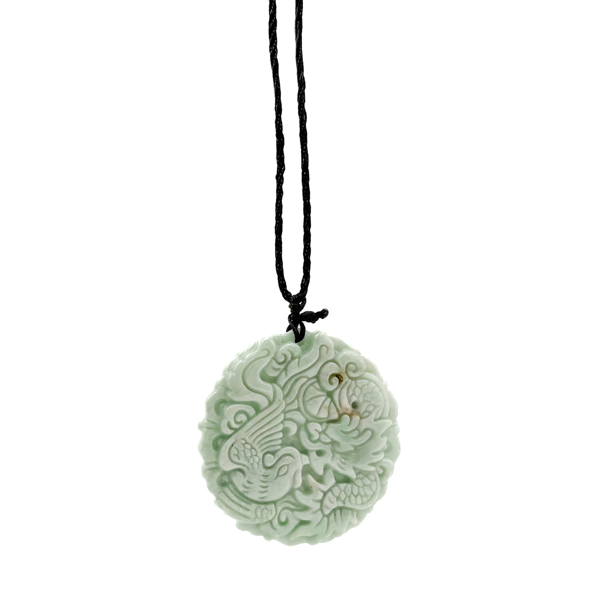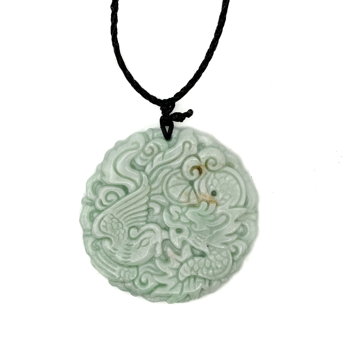Certified Light Green Natural Type A Jade Jadeite Carved Dragon Phoenix Pendant