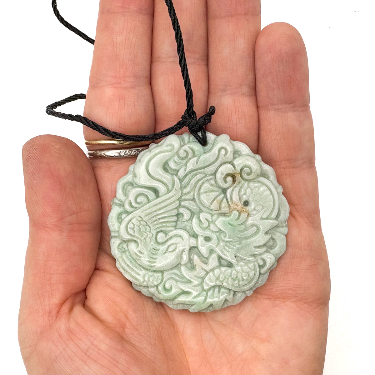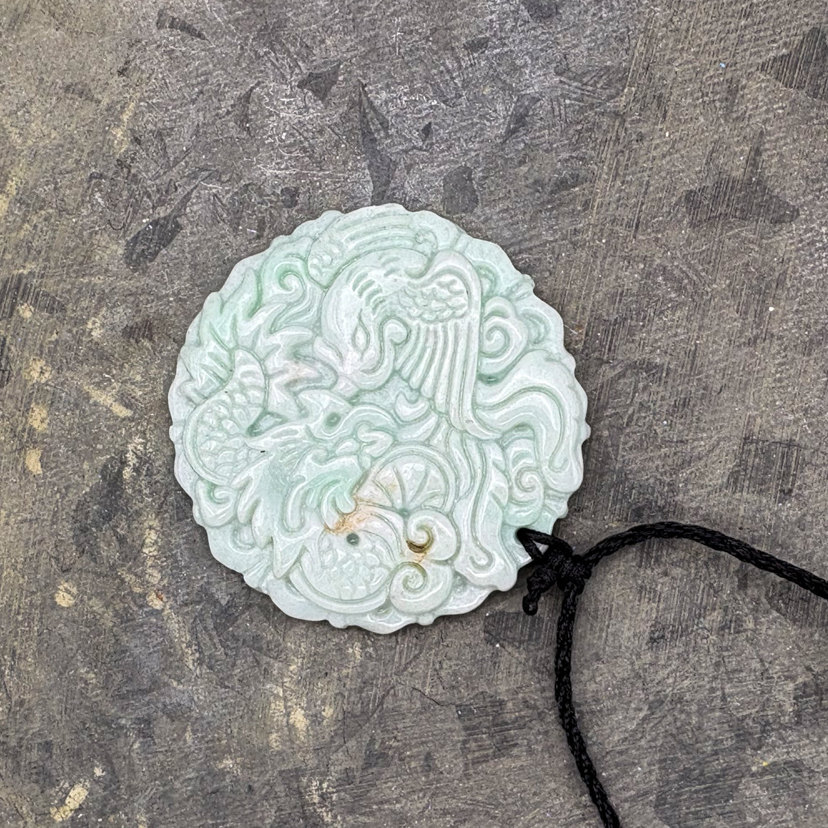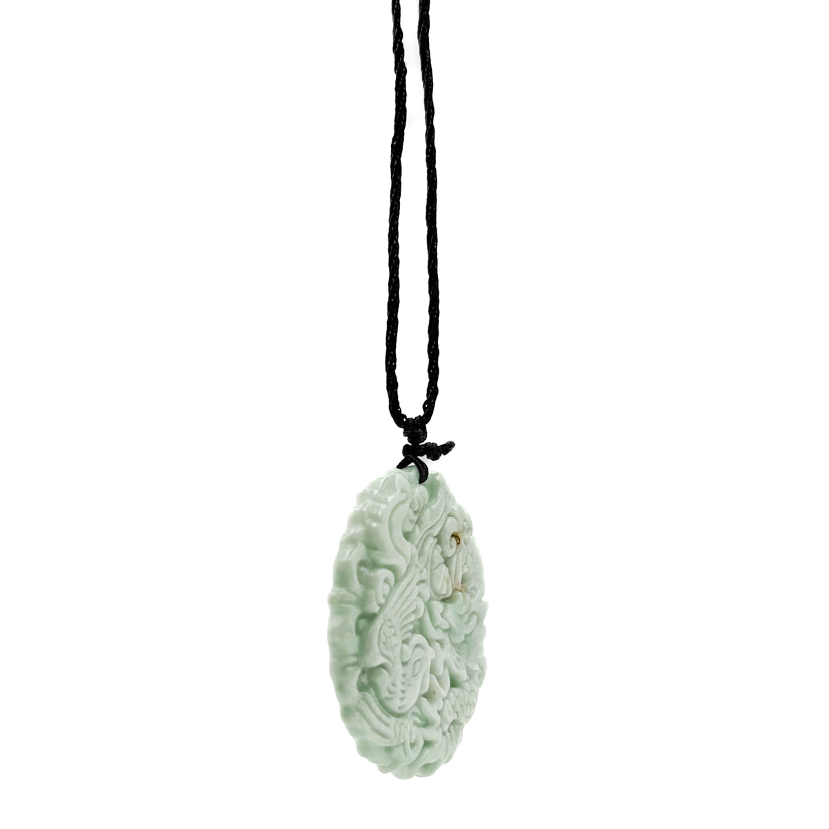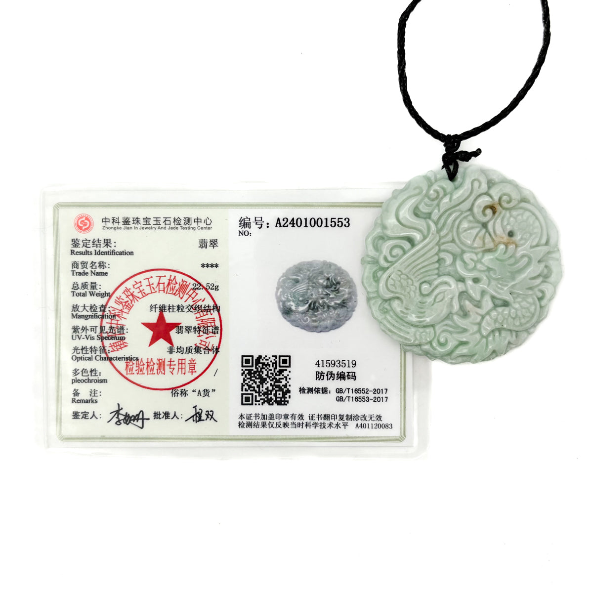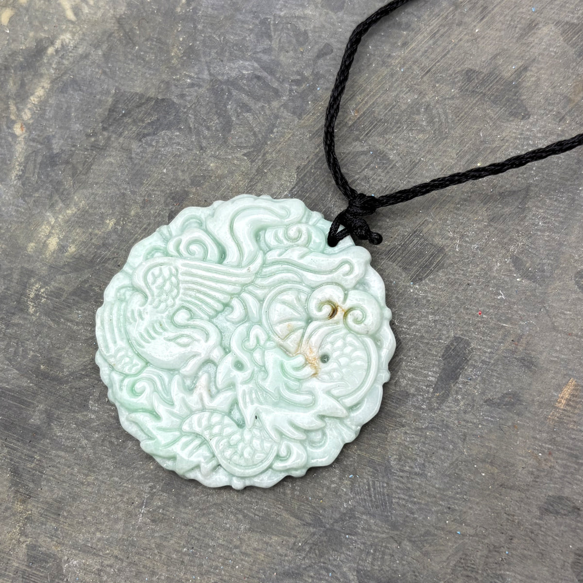 Certified Light Green Natural Type A Jade Jadeite Carved Dragon Phoenix Pendant
