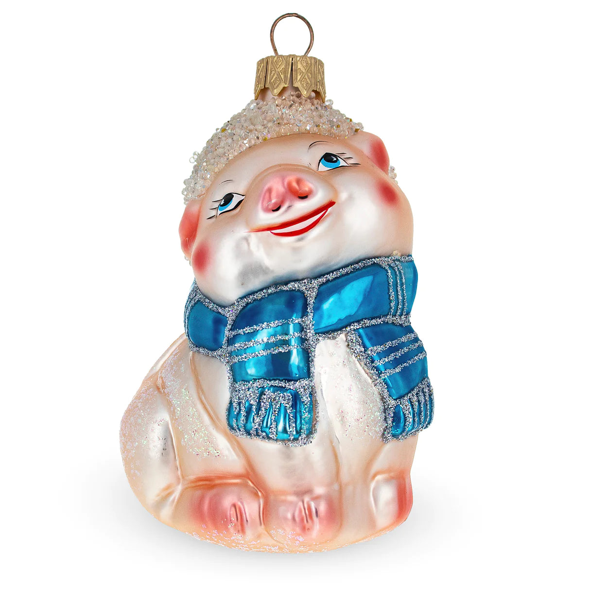 Warm Piglet with Blue Scarf Ornament PS