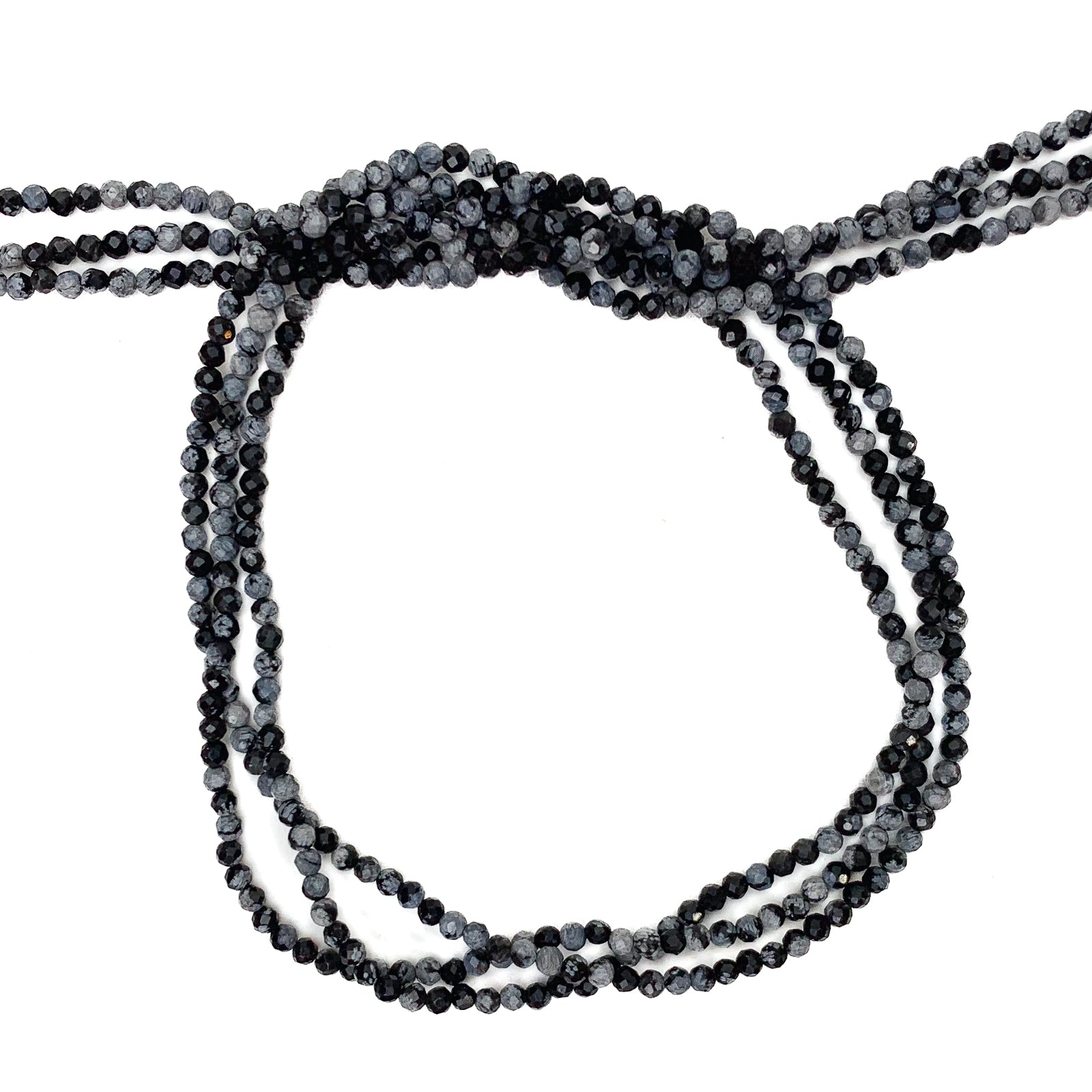 Snowflake Obsidian 2mm Faceted Rounds Bead Strand