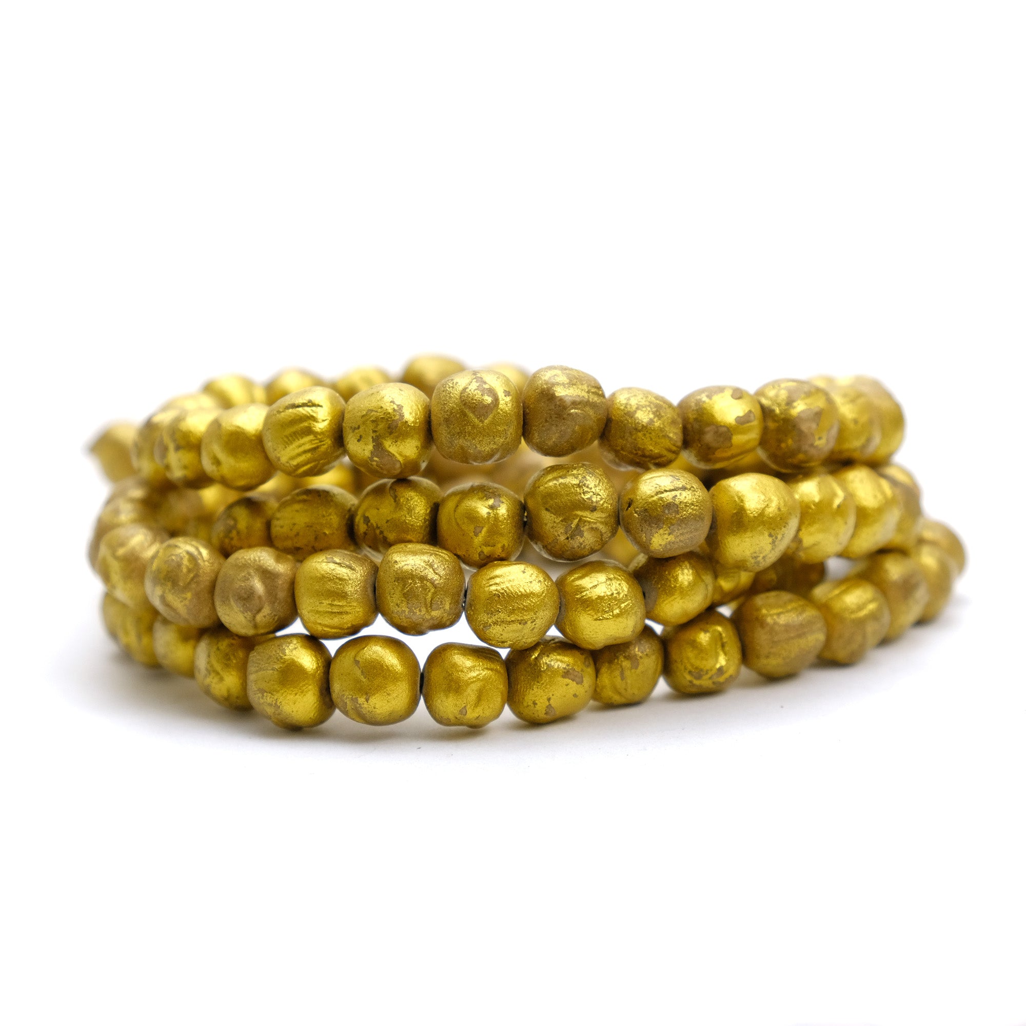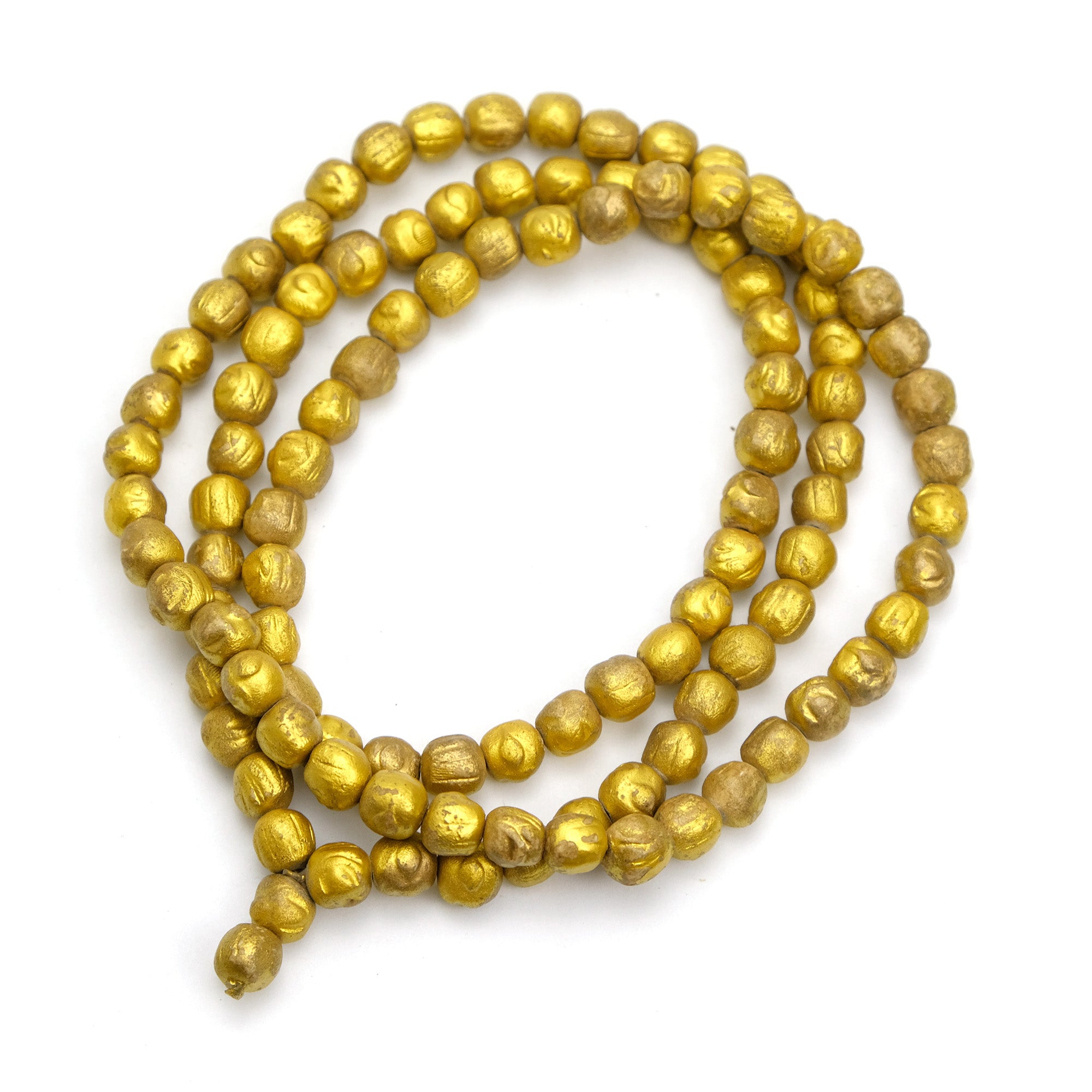 Hand Cast Clay Buddha Gold Leaf 108 Bead Mala 9mm
