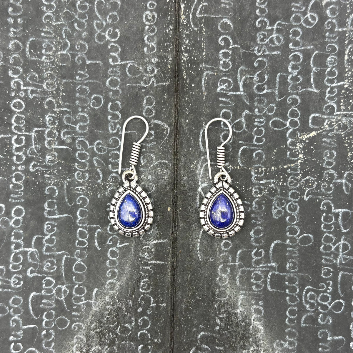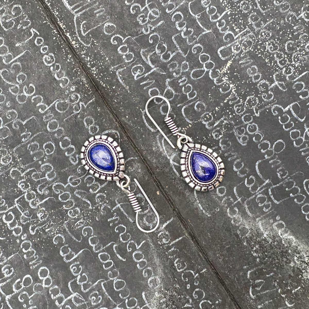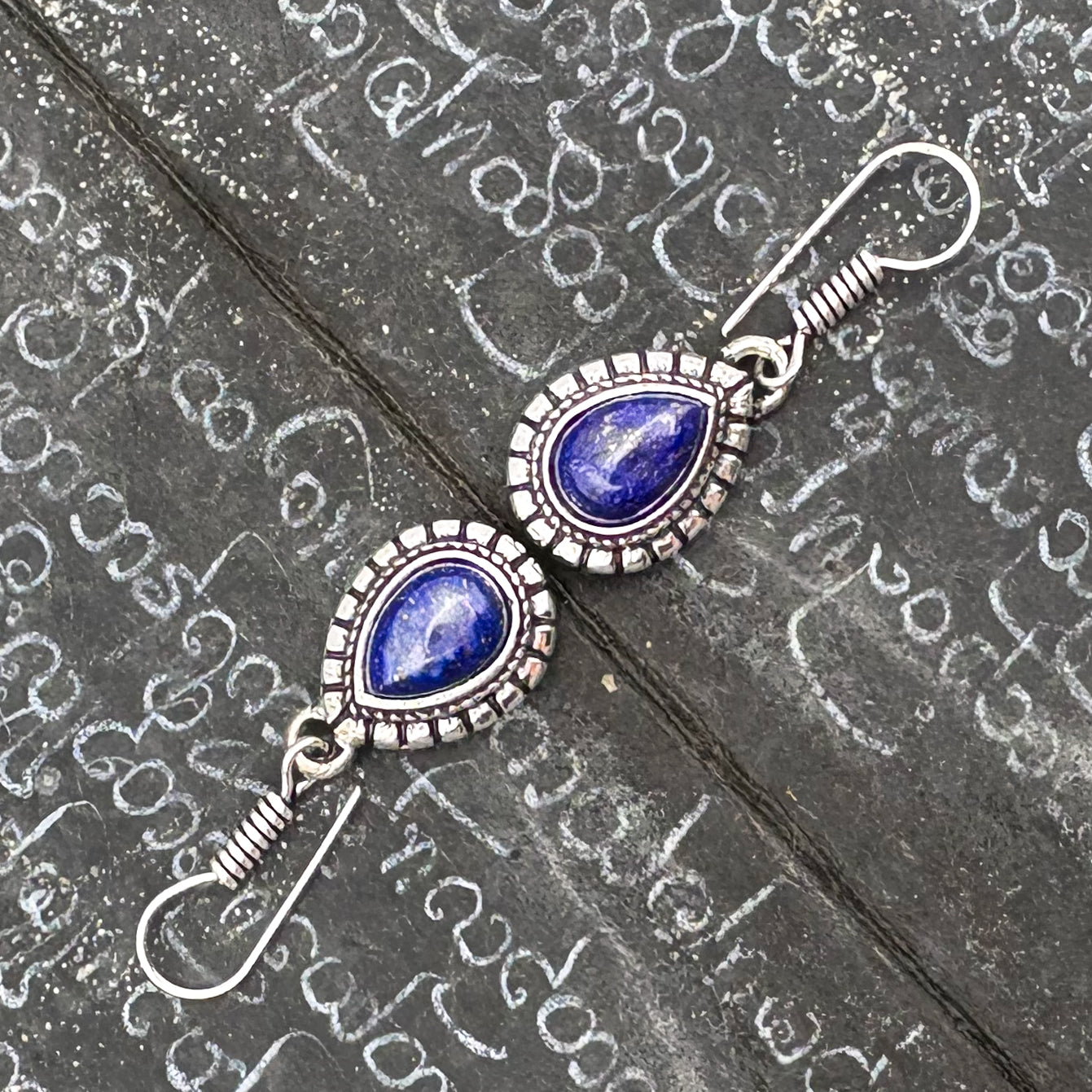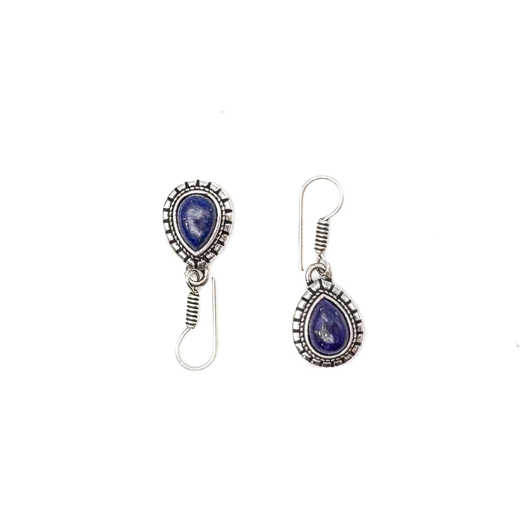 Lapis Lazuli Large Teardrop White Brass Earrings
