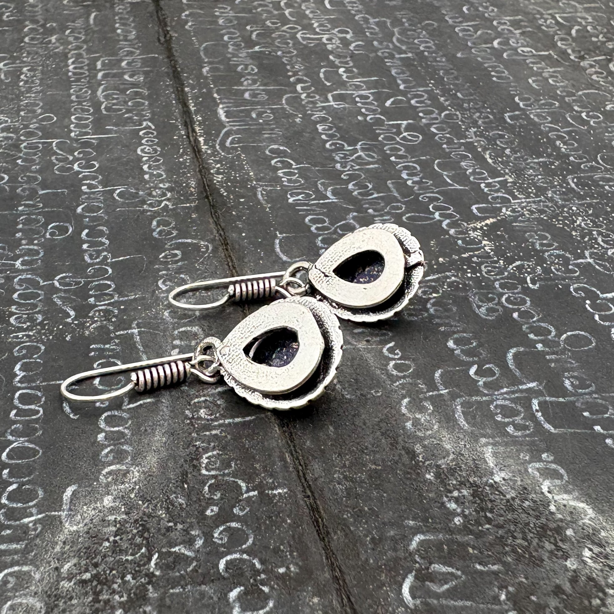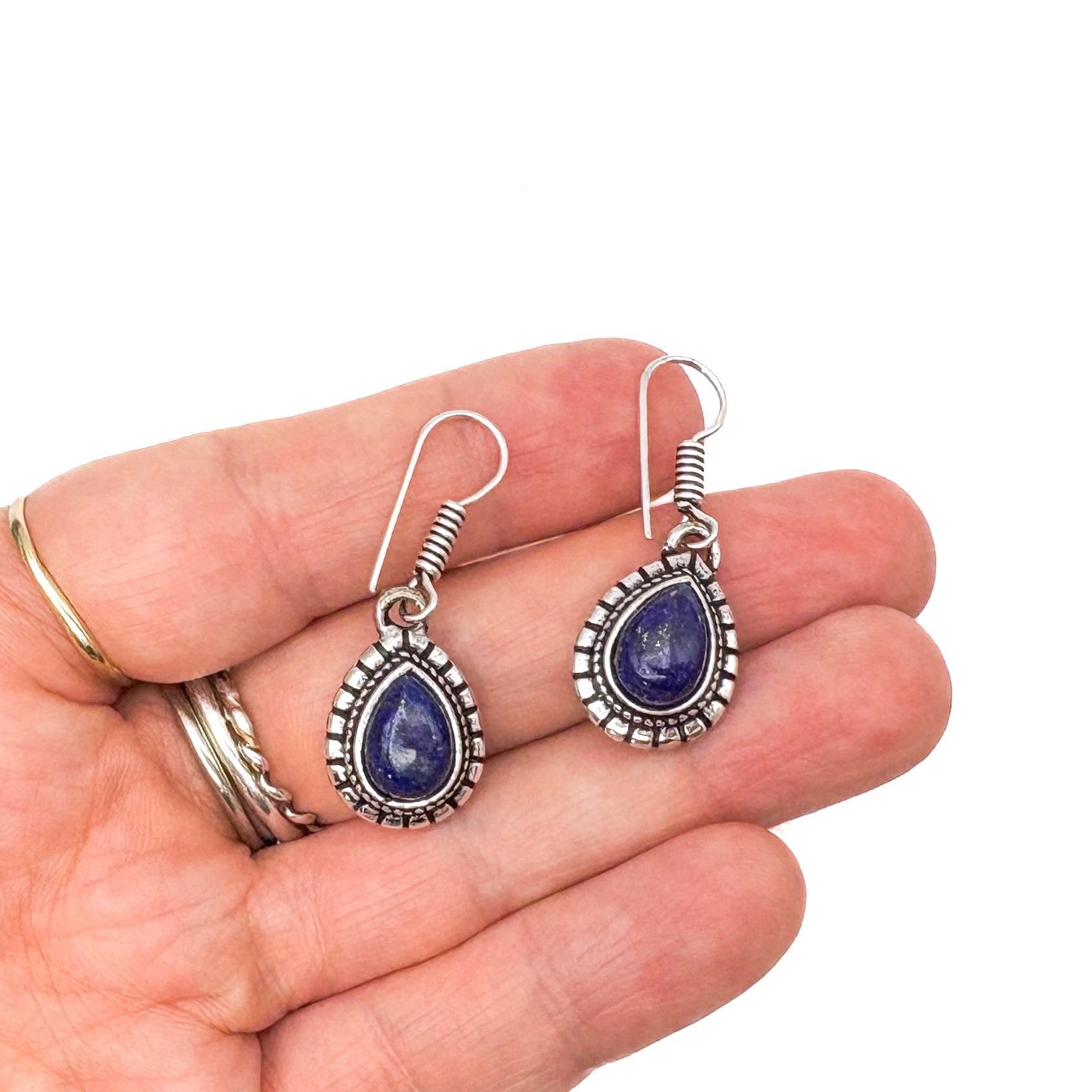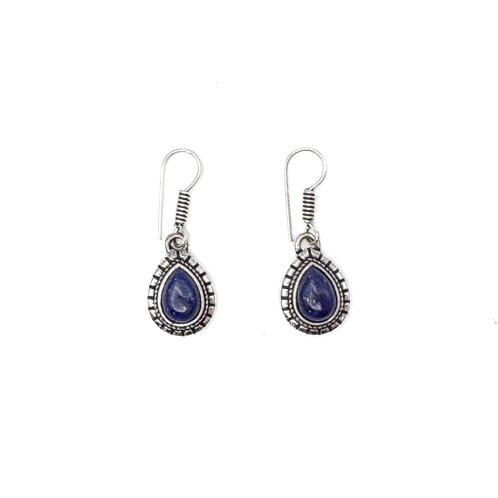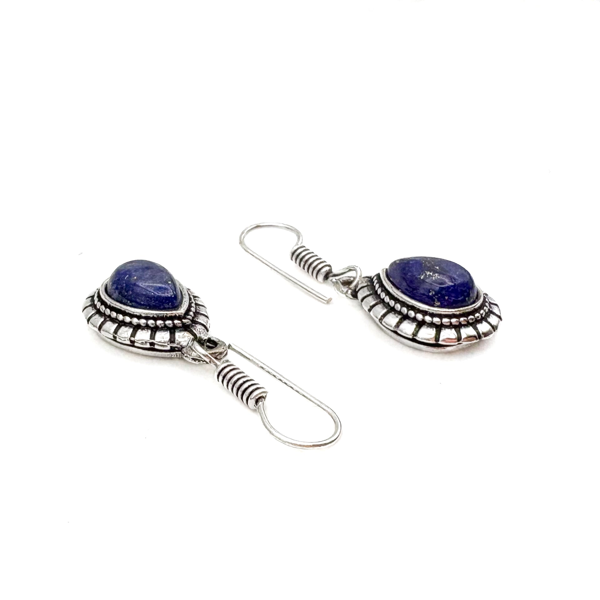 Lapis Lazuli Large Teardrop White Brass Earrings