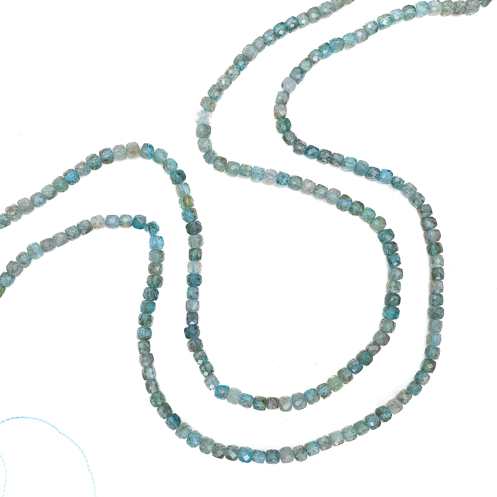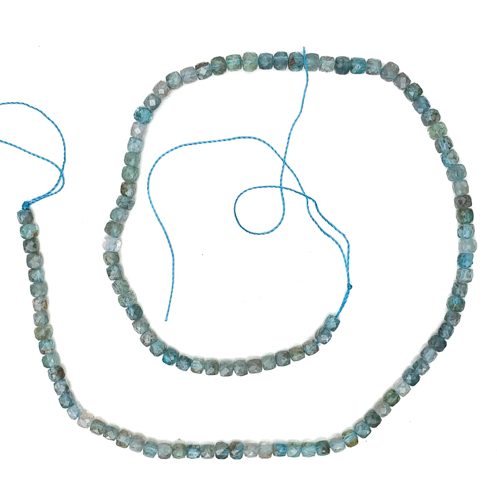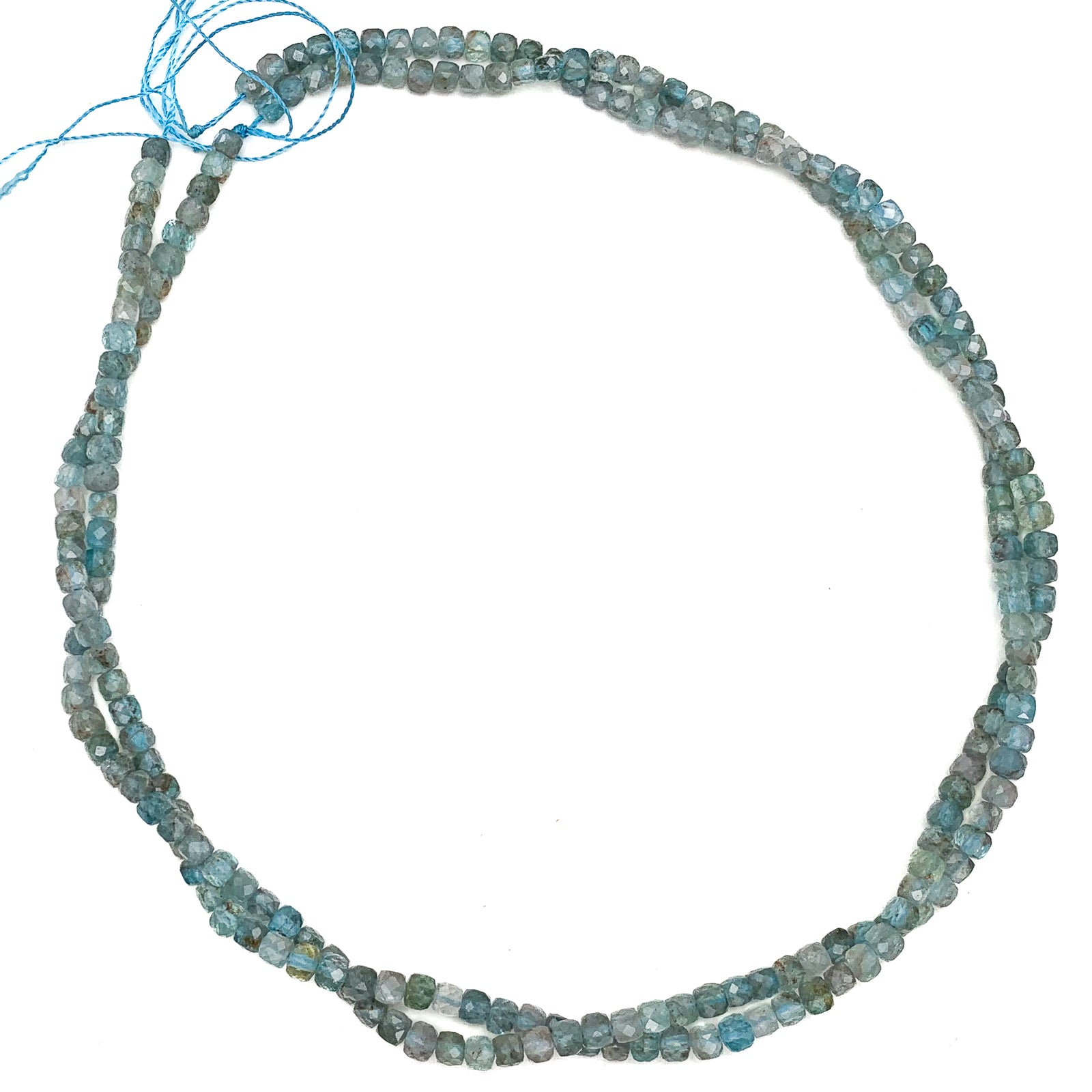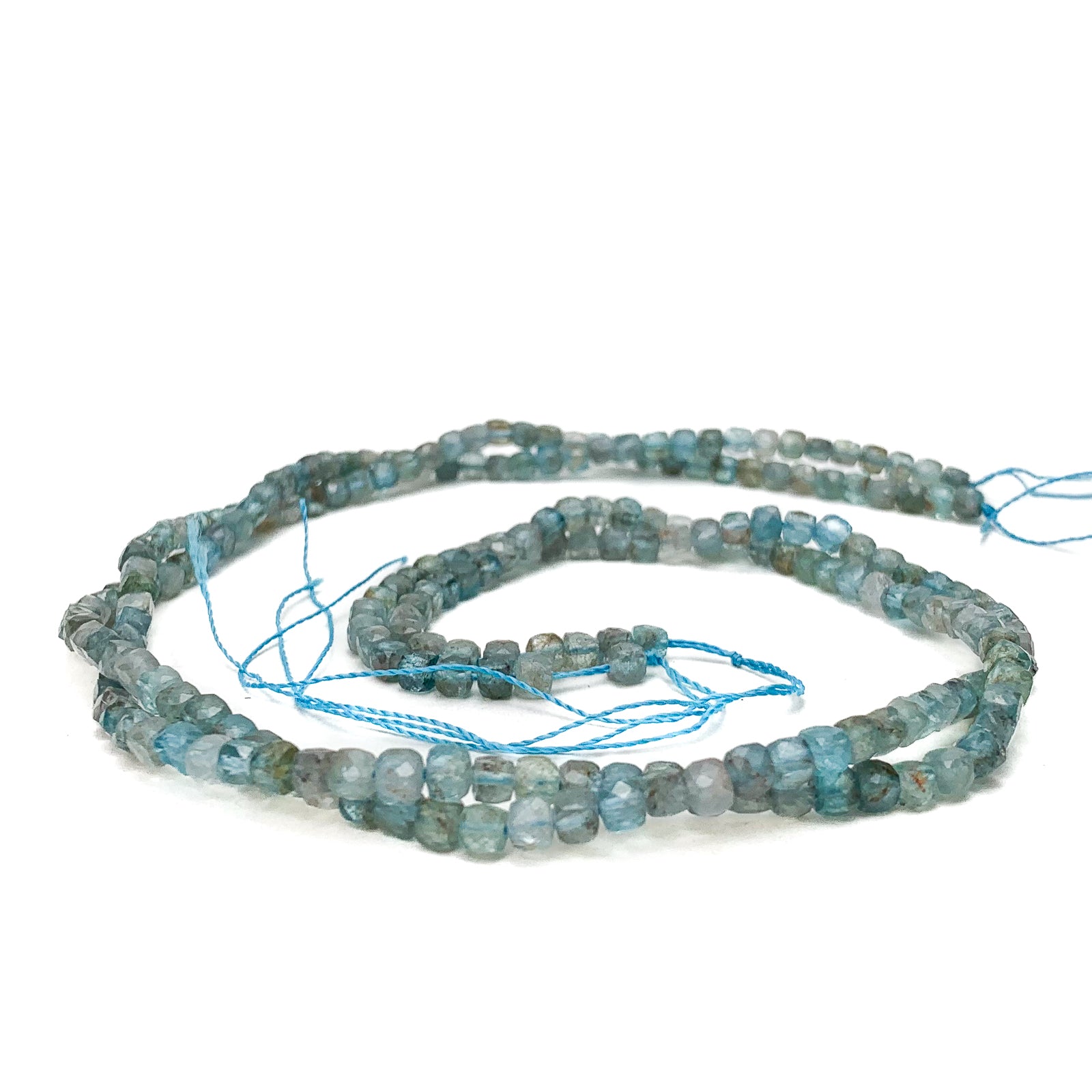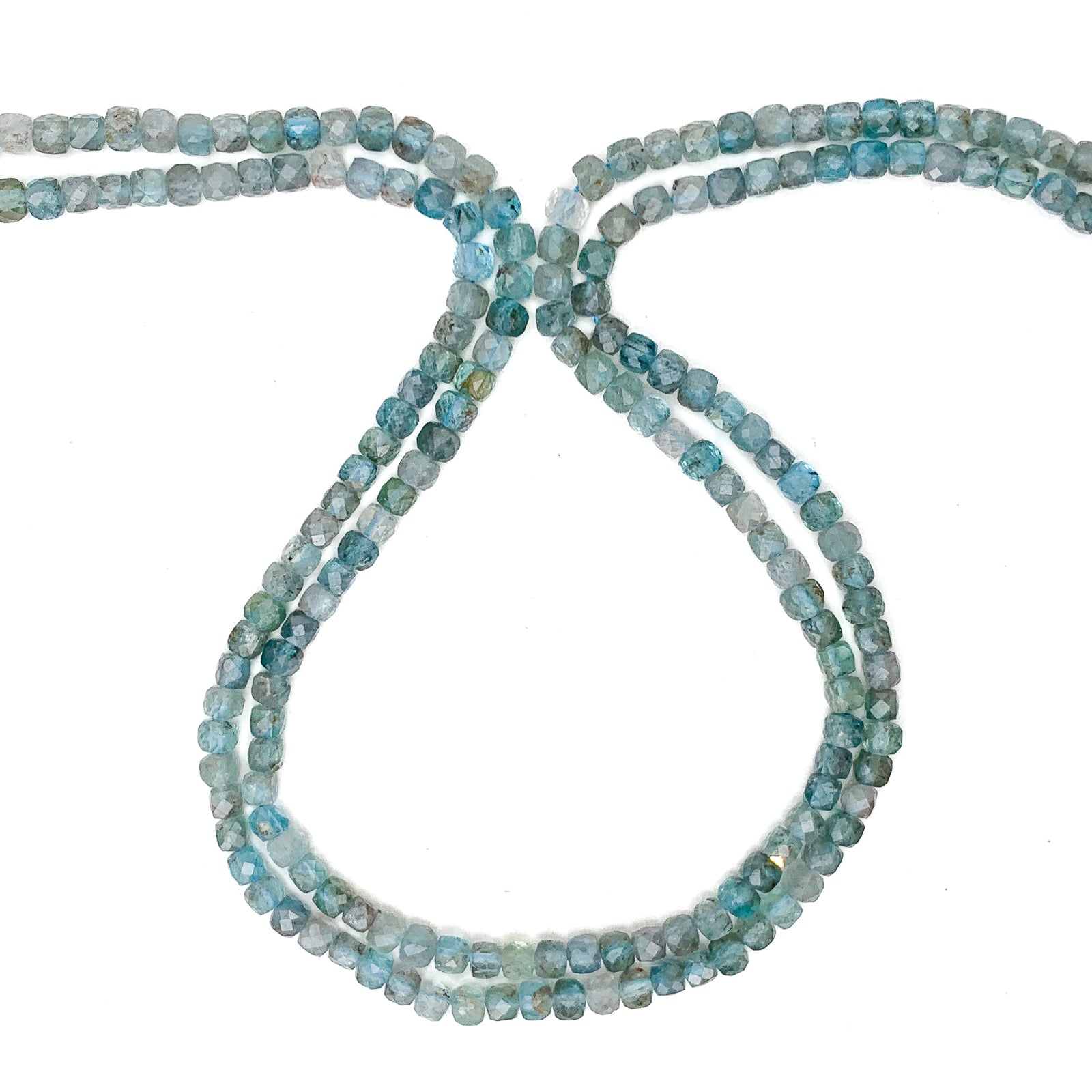 • Moss Aquamarine 4mm Faceted Cubes Bead Strand