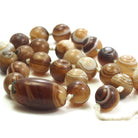 • Suleiman agates, or Solomon’s agates, are a highly revered bead throughout the Near East and Central Asia that has been shrouded in mystery for centuries. While some say the name comes from the secret location they were originally mined from, which only King Solomon knew, others say that they were once plain, unpatterned agates that only developed bands after being in the possession of the famous King himself and his fabled wisdom. They were said to impart to the possessor that same knowledge and power, as well as the ability to control djinn (genies).