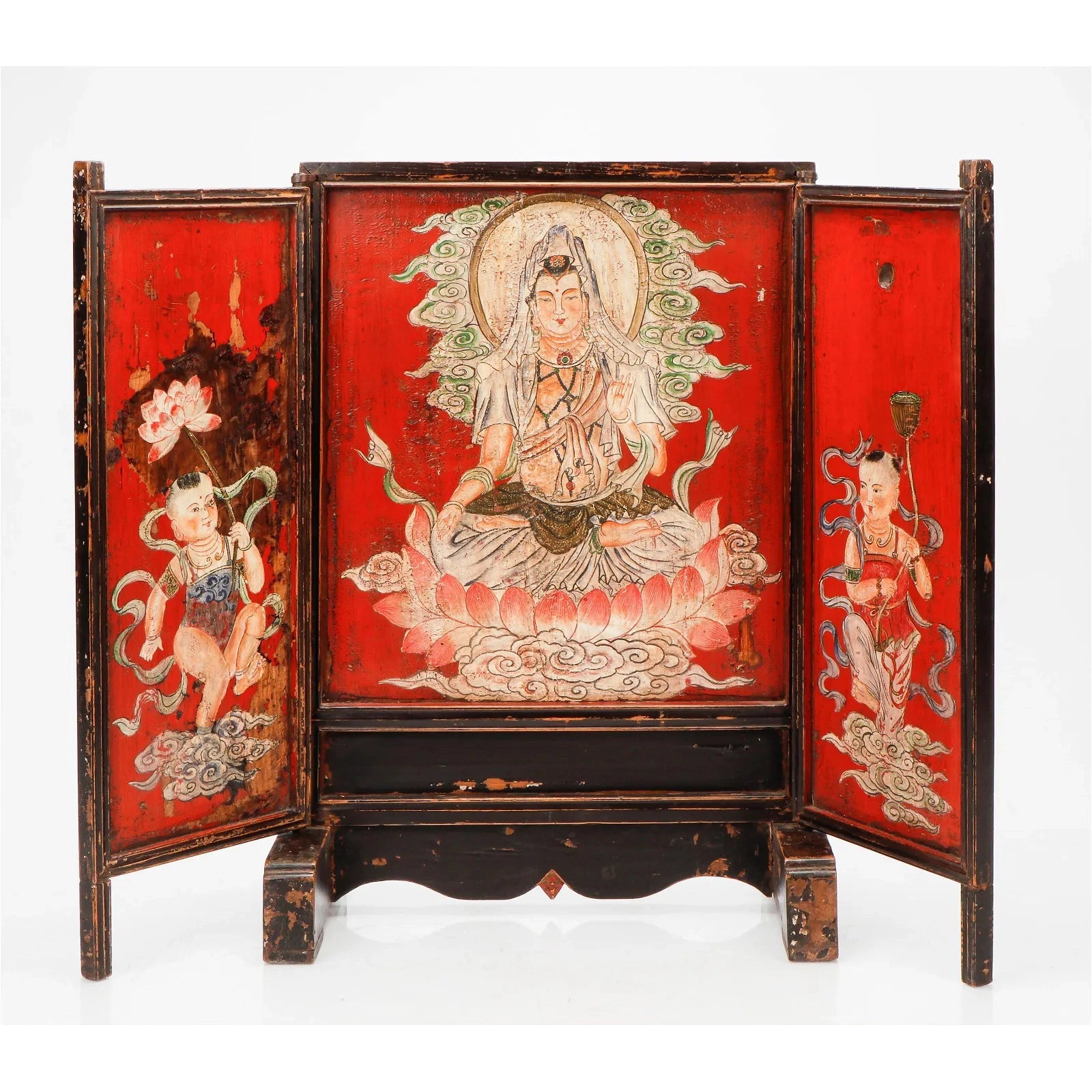 Sino-Tibetan Three-Part Altar Depicting White Tara