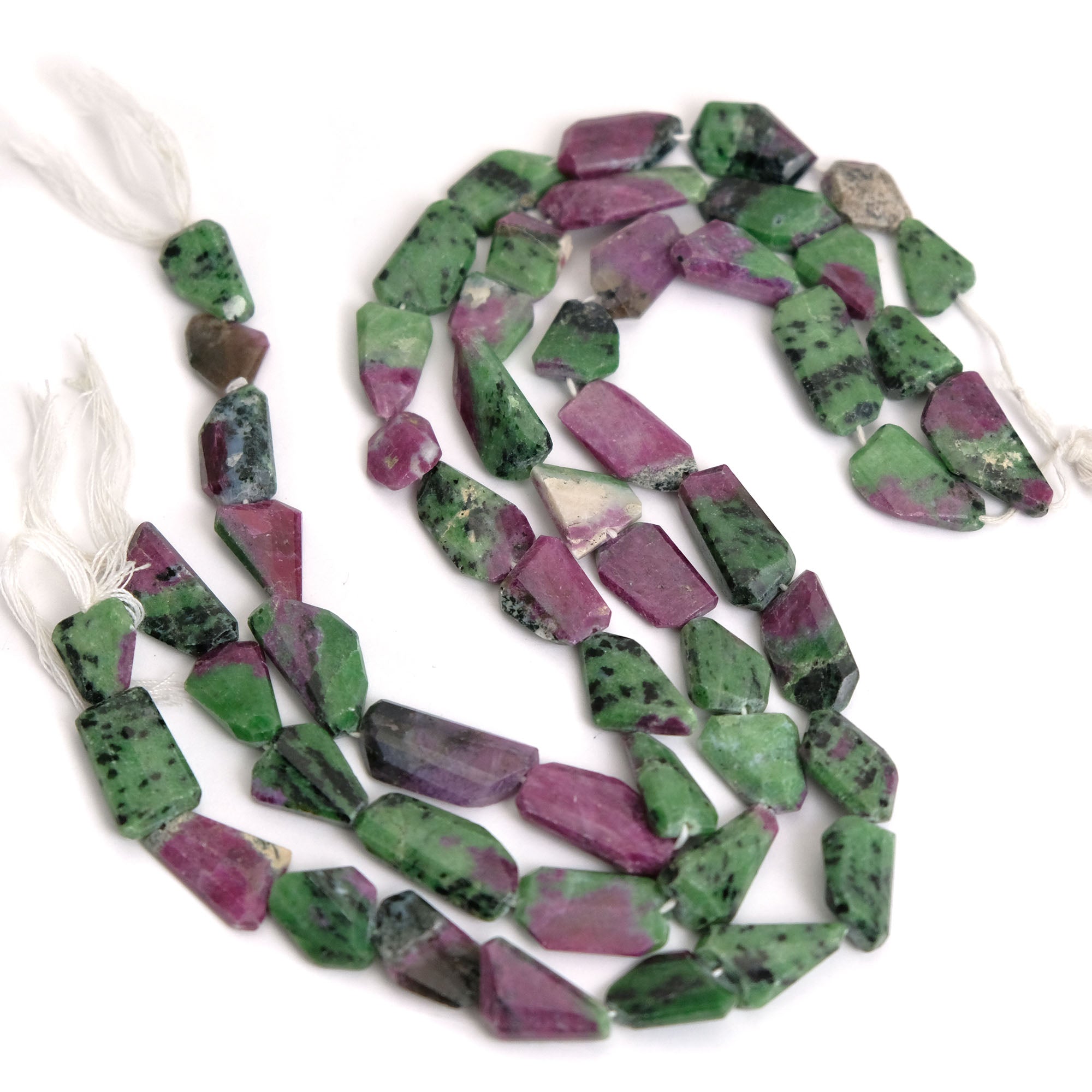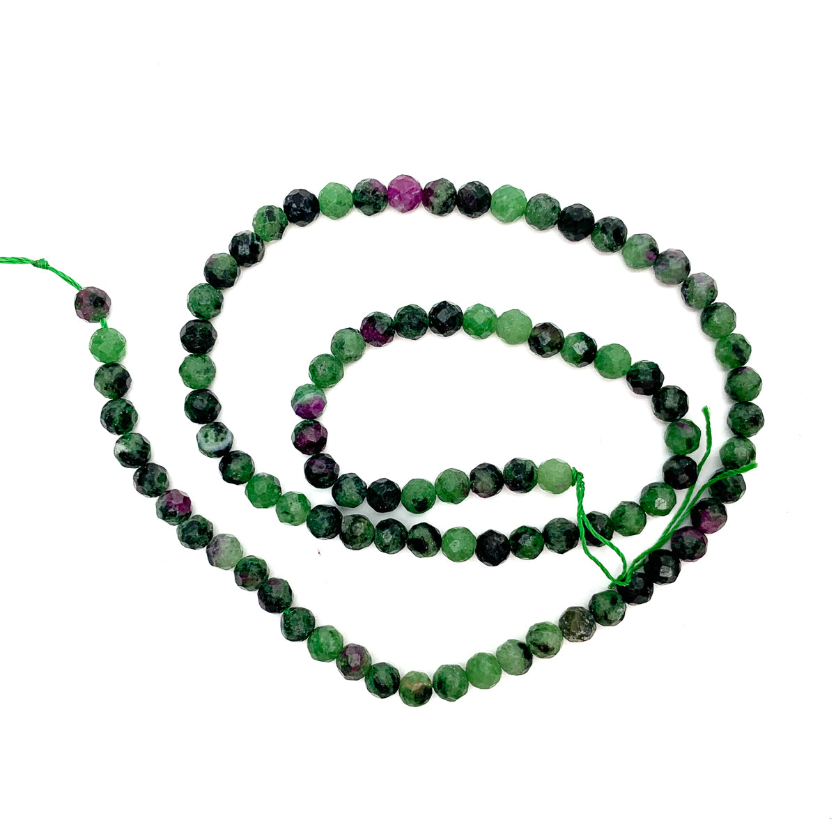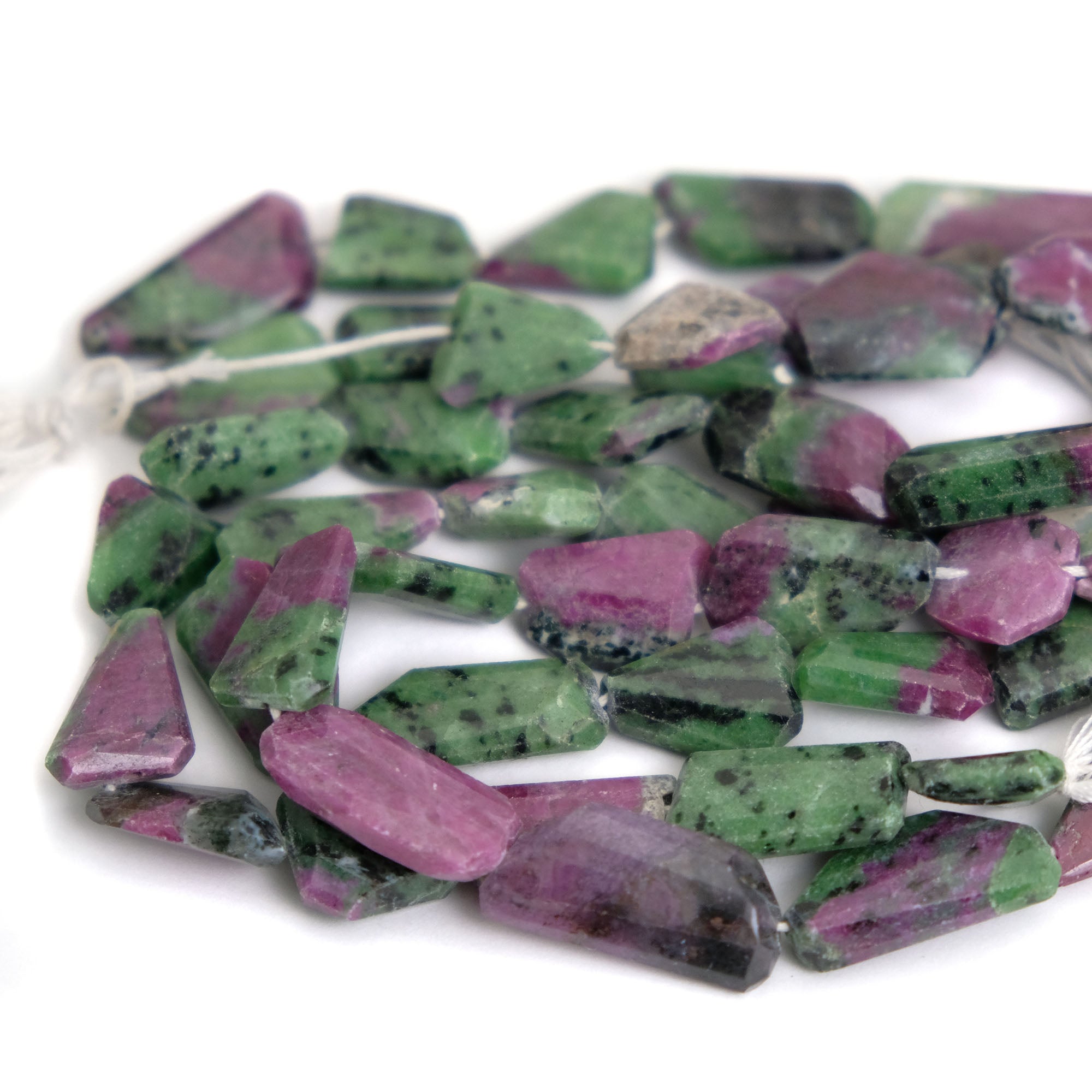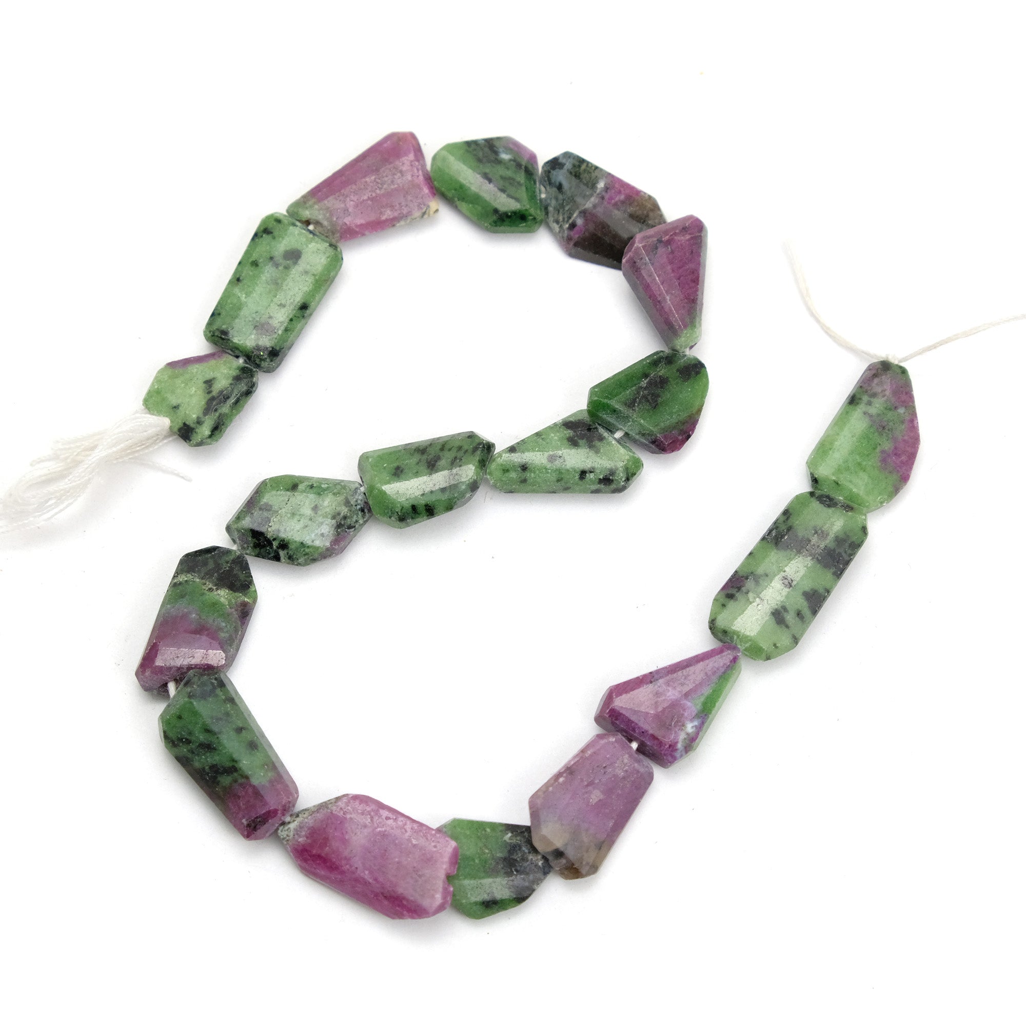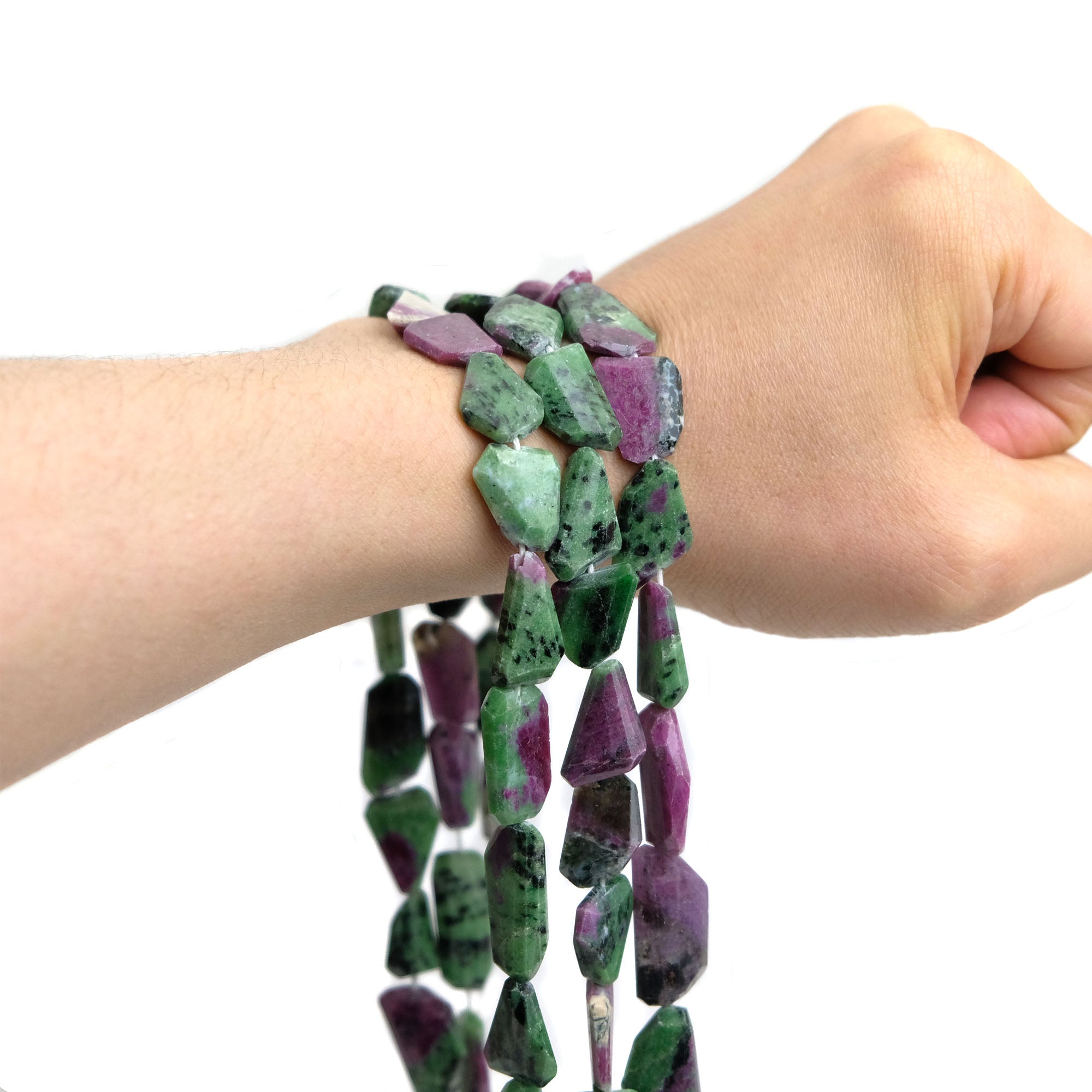 Ruby-Zoisite, also known as Anylolite, is a combination of Ruby crystals formed with green/black Zoisite (Tschemakite). Most specimens will display three colors -- green, black and red. Zoisite, the same mineral as Tanzanite, provides an earthy green and black color while Ruby lends pink and red highlights. Ruby-Zoisite was first discovered in 1954 in Tanzania. The name anyolite derives from the word for "green" in the native language of the Massai. Contemporary stone folklore rumors Ruby-Zoisite increases one’s sense of individuality, increases self confidence and helps us realize one's true potential.