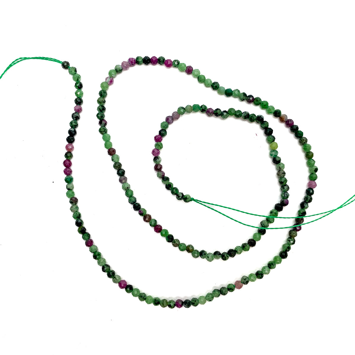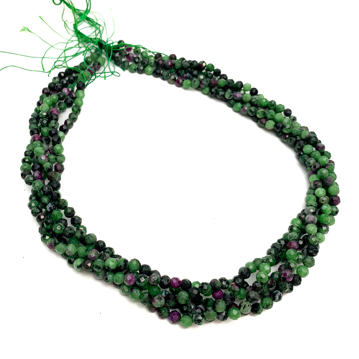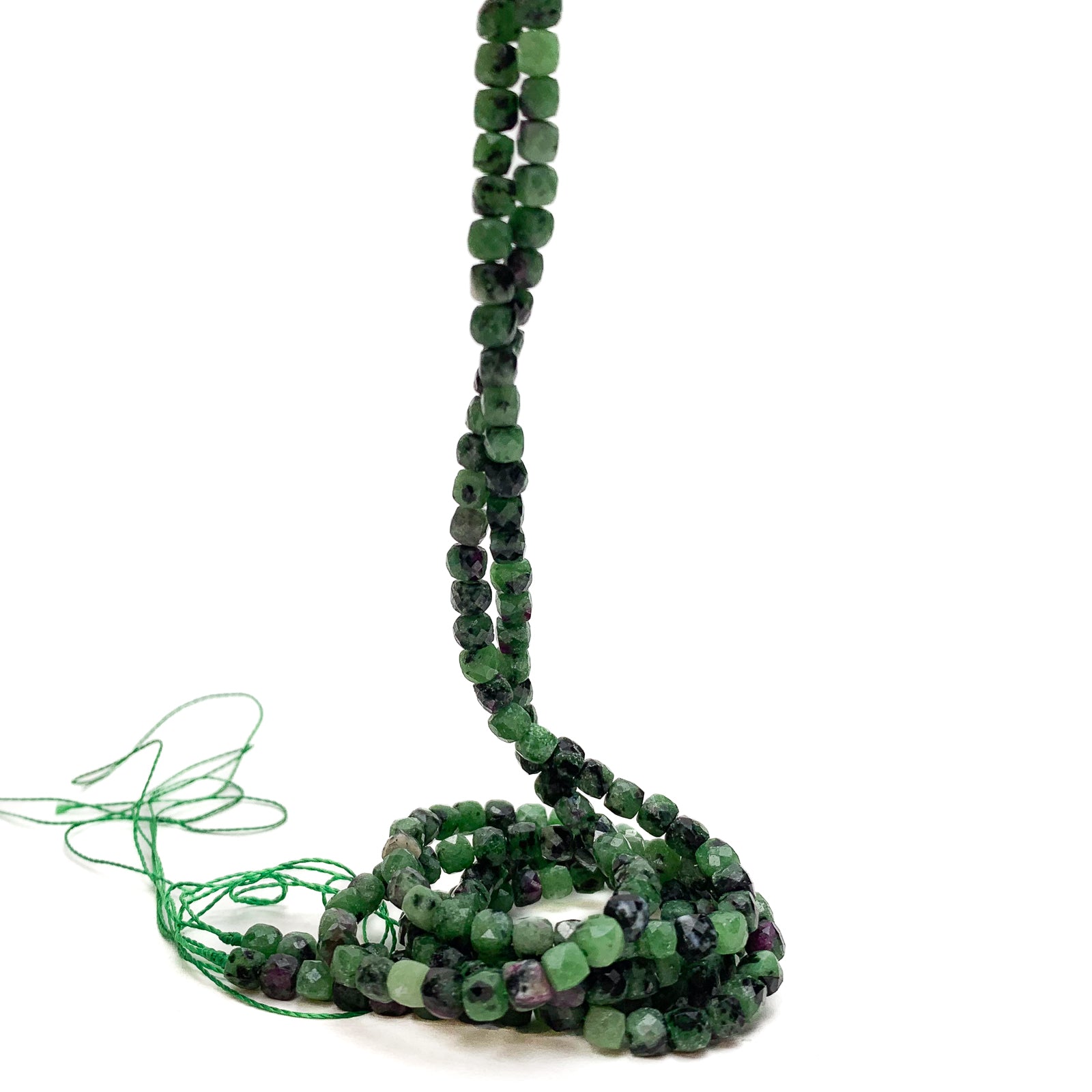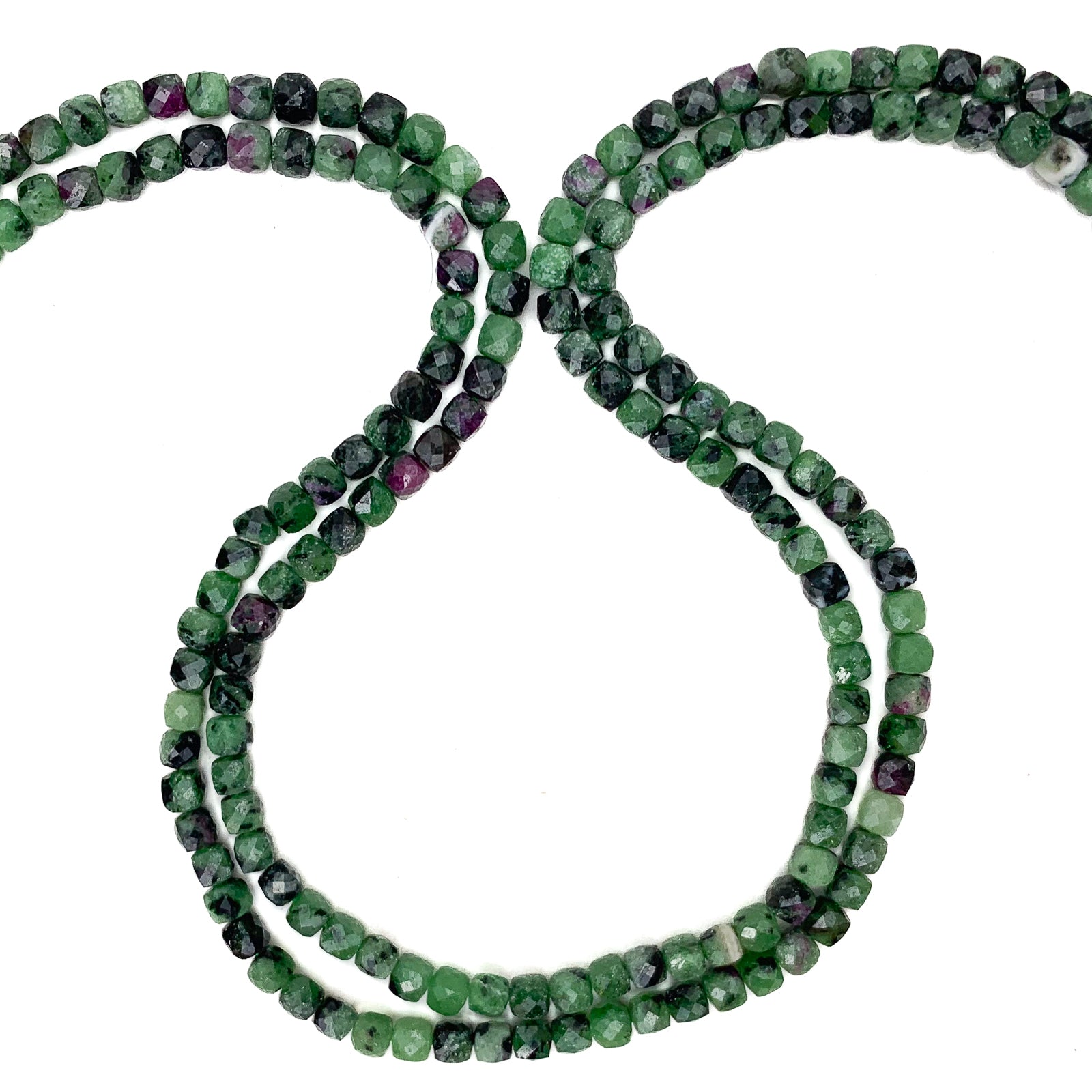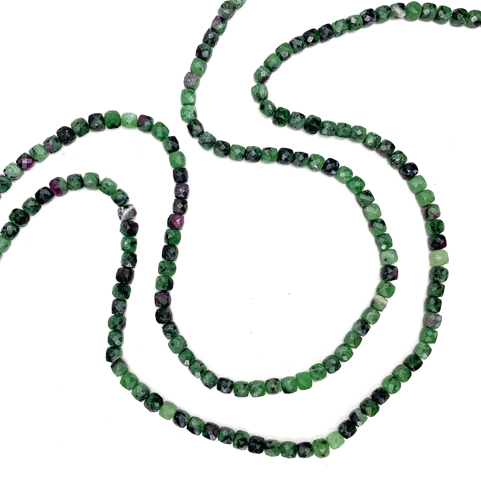 Ruby-Zoisite, also known as Anylolite, is a combination of Ruby crystals formed with green/black Zoisite (Tschemakite). Most specimens will display three colors -- green, black and red. Zoisite, the same mineral as Tanzanite, provides an earthy green and black color while Ruby lends pink and red highlights. Ruby-Zoisite was first discovered in 1954 in Tanzania. The name anyolite derives from the word for "green" in the native language of the Massai. Contemporary stone folklore rumors Ruby-Zoisite increases one’s sense of individuality, increases self confidence and helps us realize one's true potential.