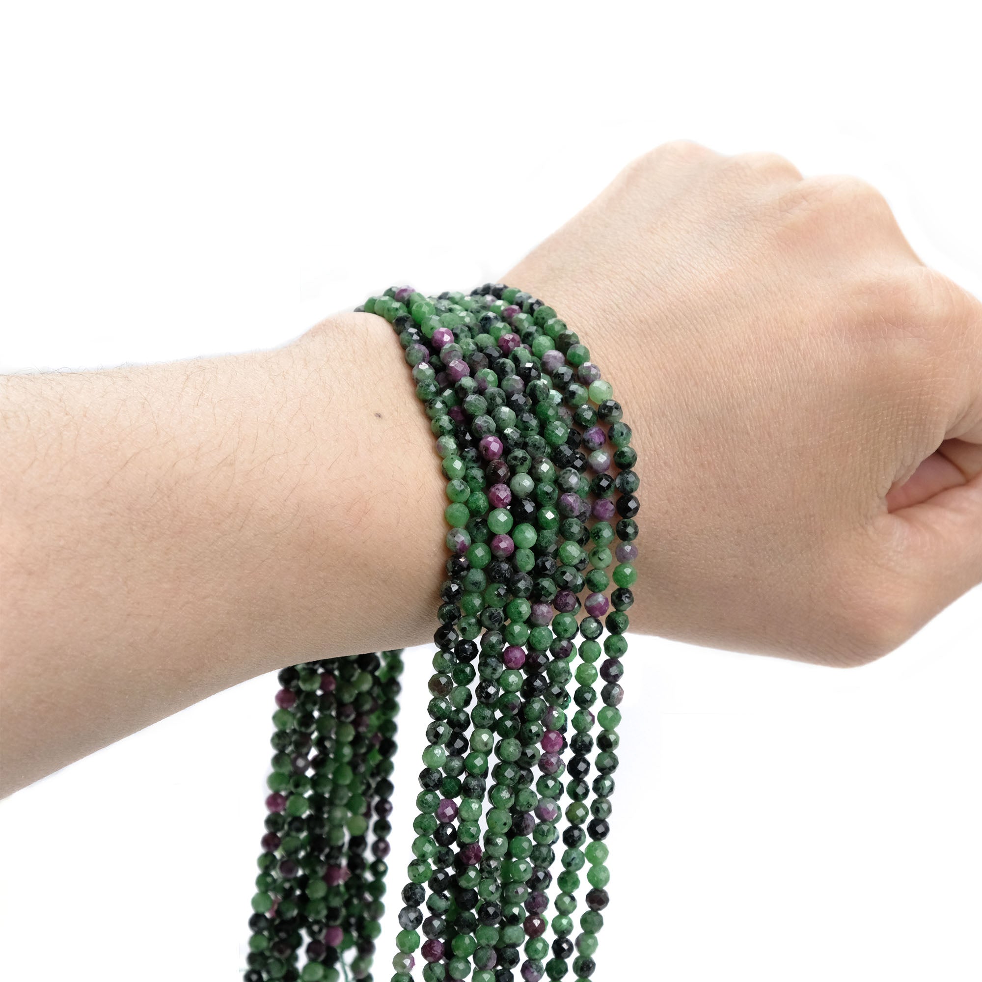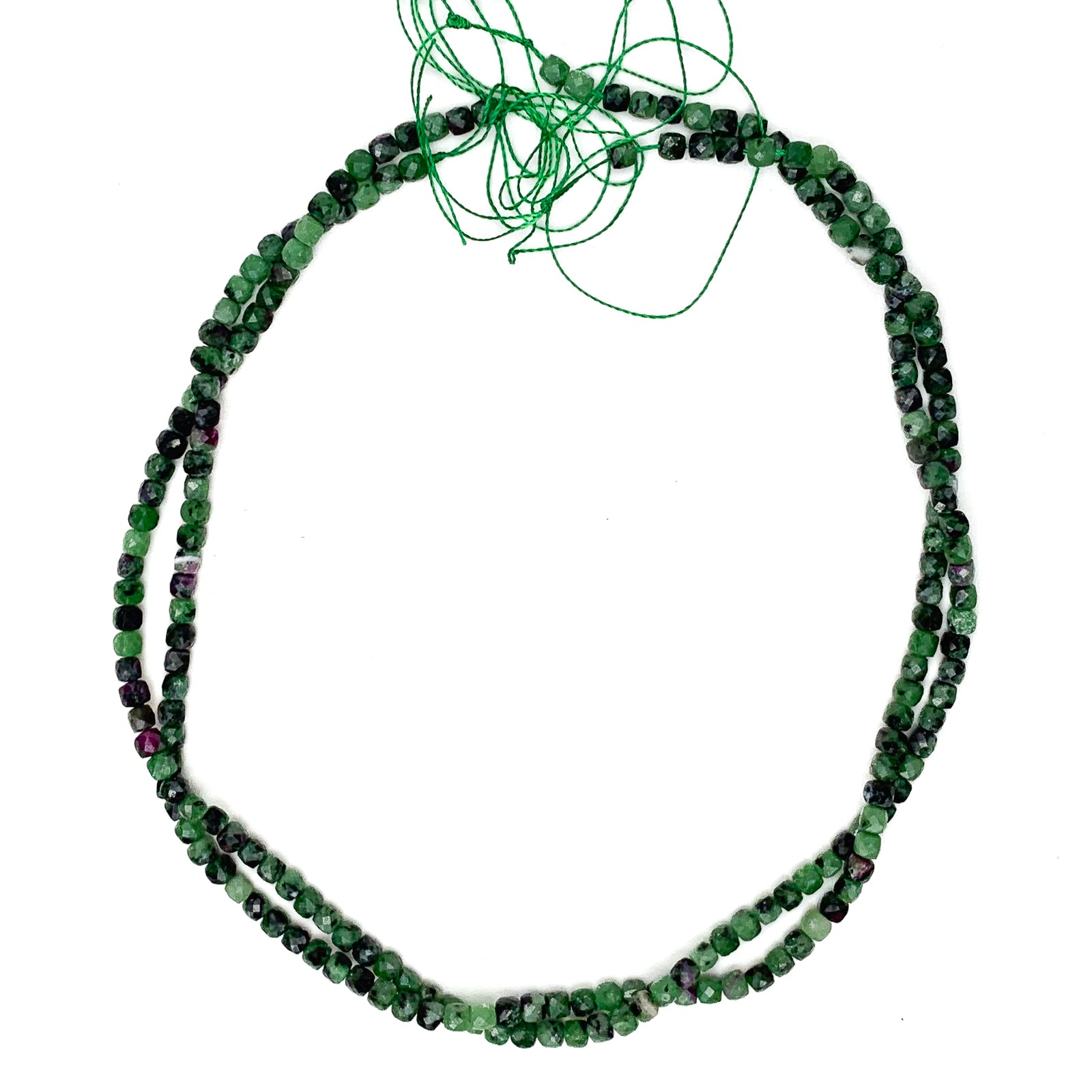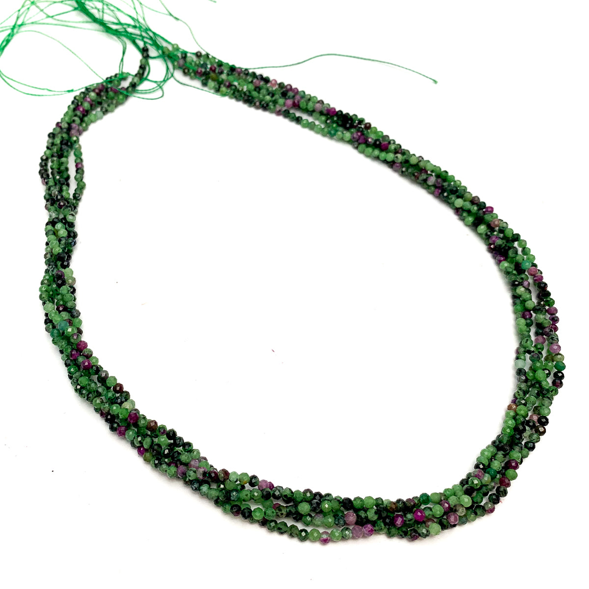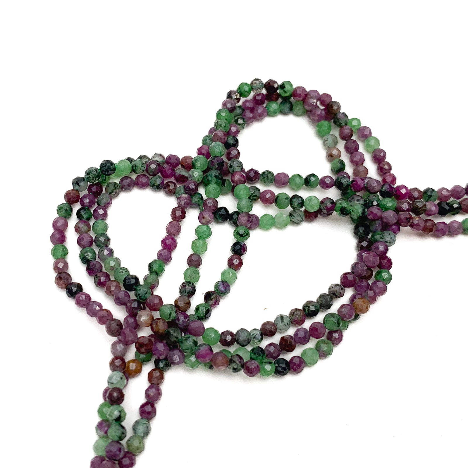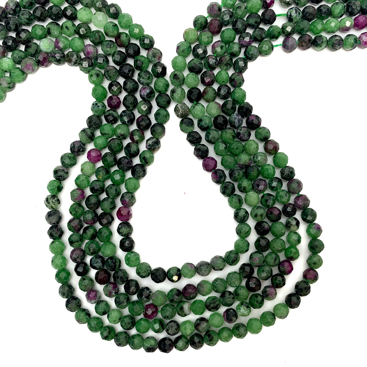 Ruby-Zoisite, also known as Anylolite, is a combination of Ruby crystals formed with green/black Zoisite (Tschemakite). Most specimens will display three colors -- green, black and red. Zoisite, the same mineral as Tanzanite, provides an earthy green and black color while Ruby lends pink and red highlights. Ruby-Zoisite was first discovered in 1954 in Tanzania. The name anyolite derives from the word for "green" in the native language of the Massai. Contemporary stone folklore rumors Ruby-Zoisite increases one’s sense of individuality, increases self confidence and helps us realize one's true potential.