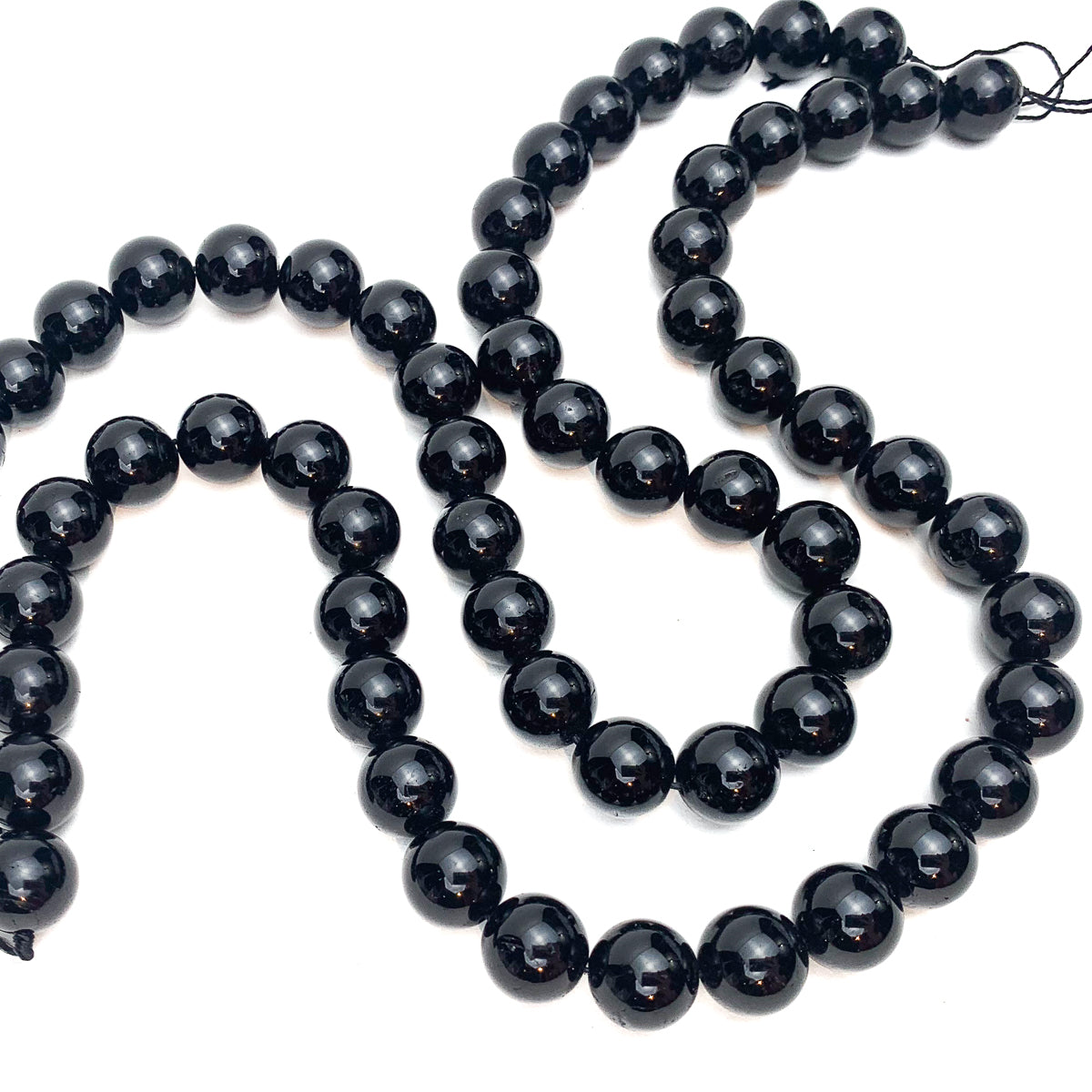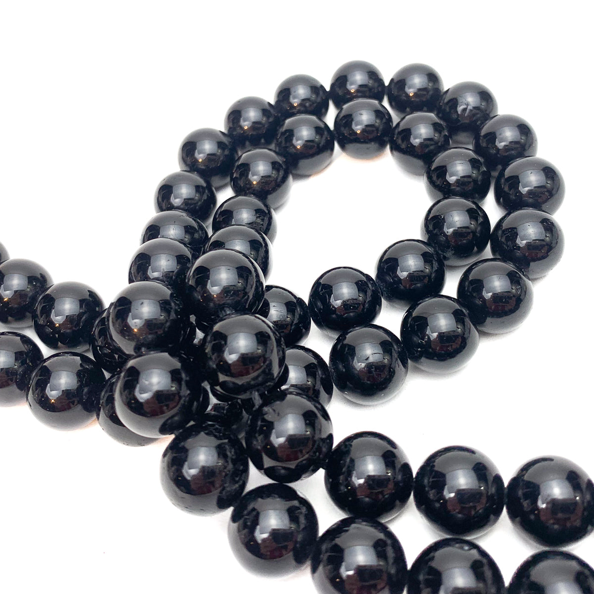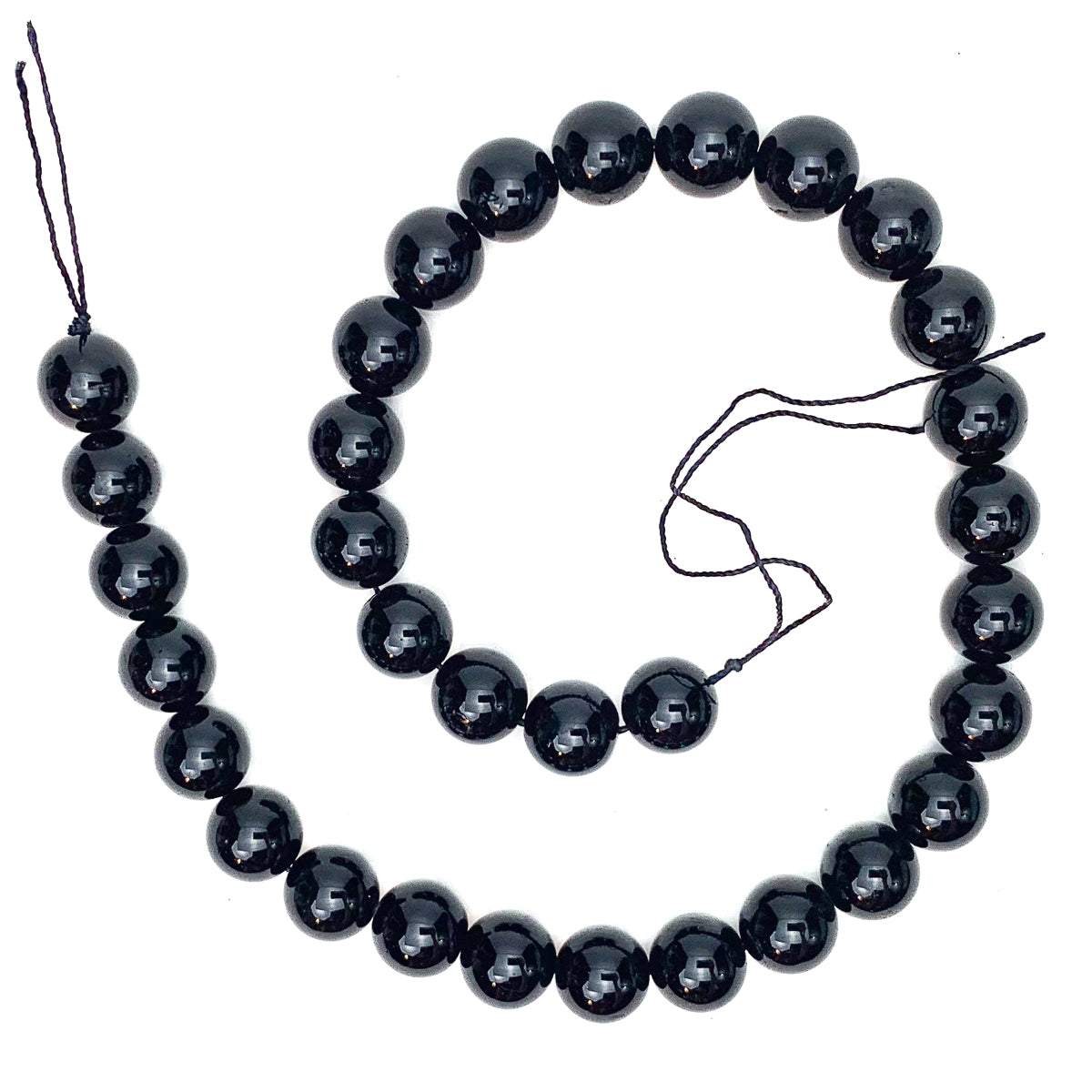 • Black Tourmaline 12mm Smooth Rounds Bead Strand