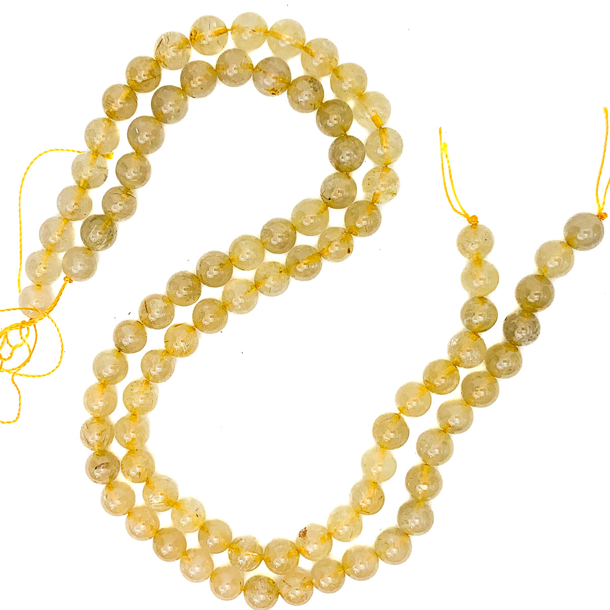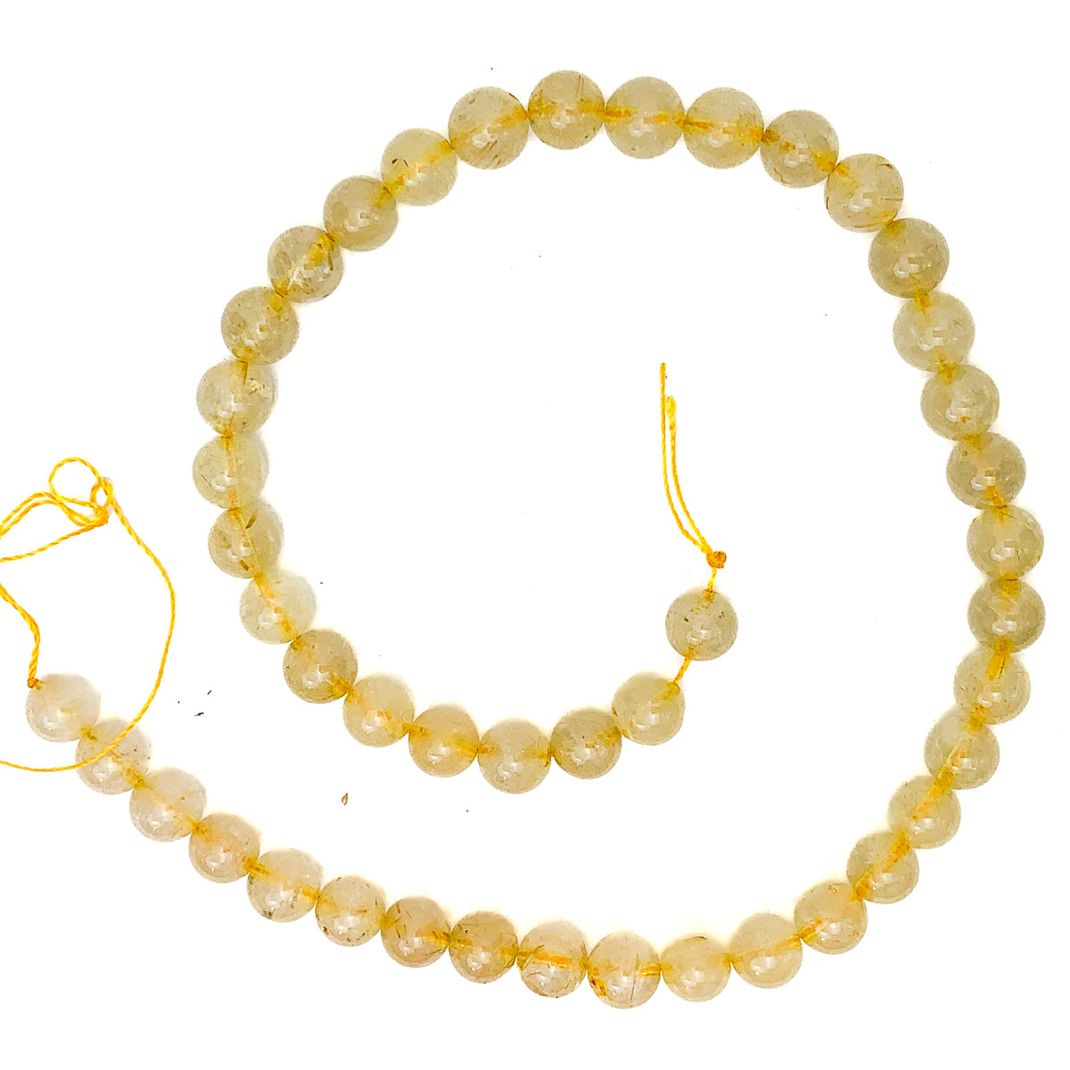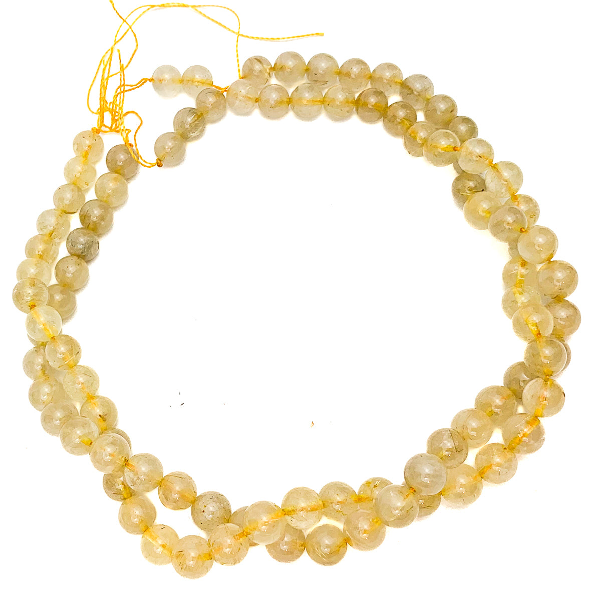 Golden Rutilated Quartz 8mm Smooth Rounds Bead Strand