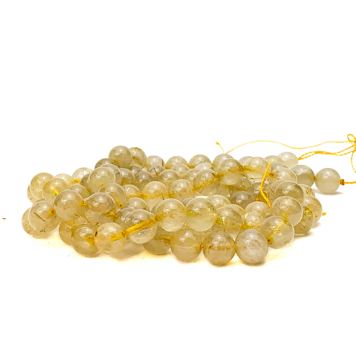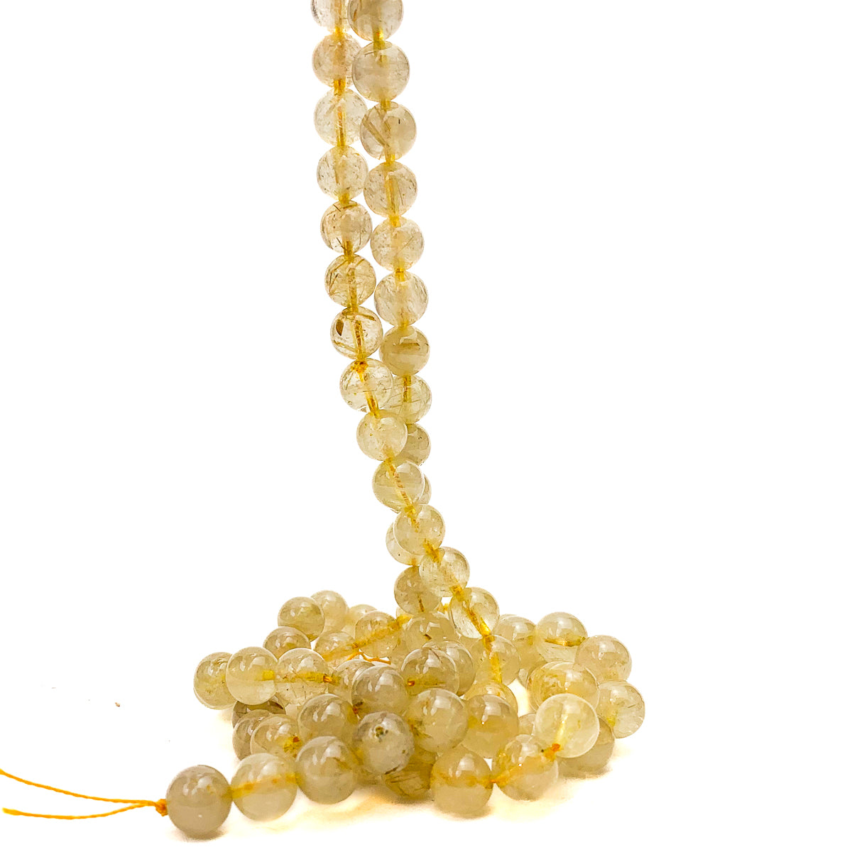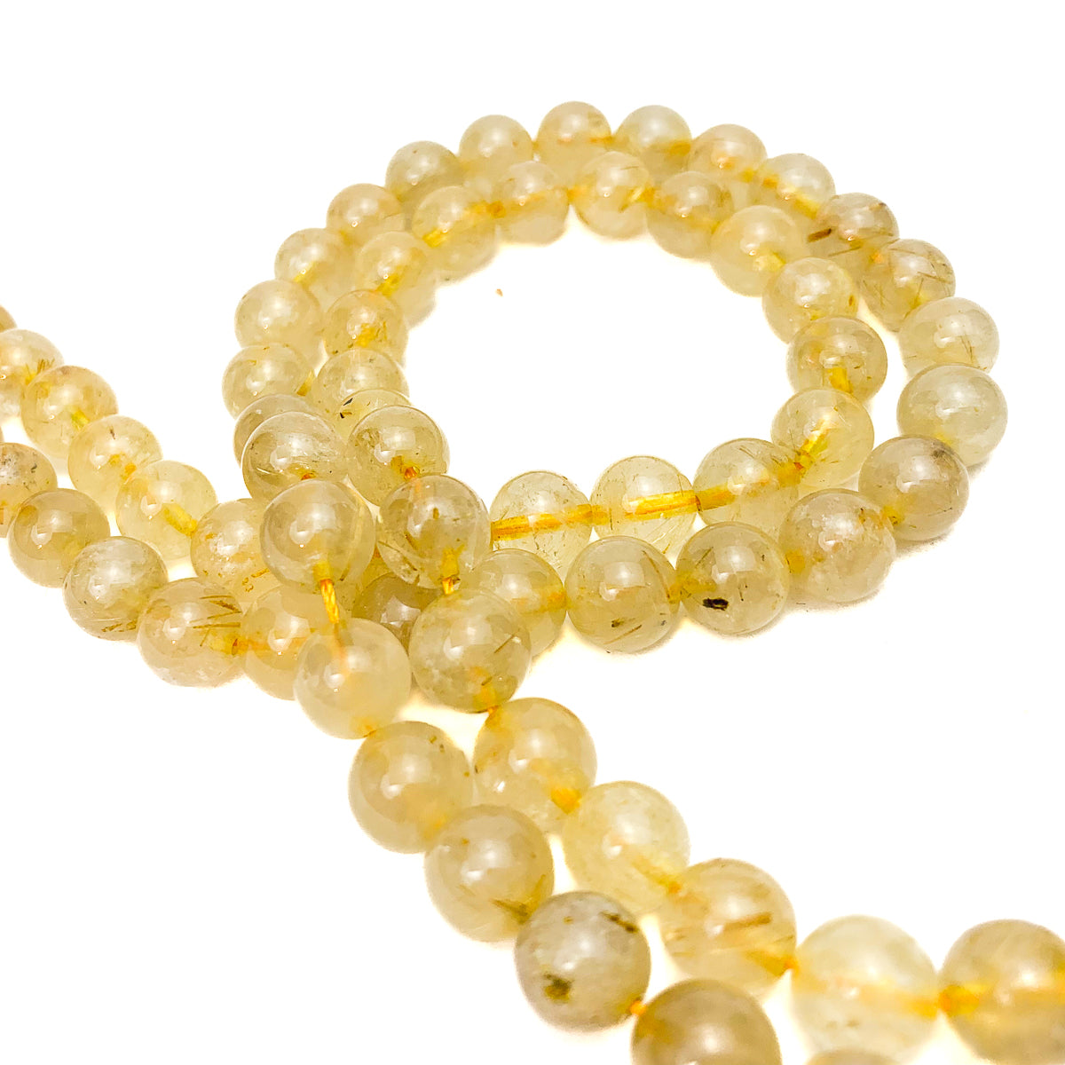 Golden Rutilated Quartz 8mm Smooth Rounds Bead Strand